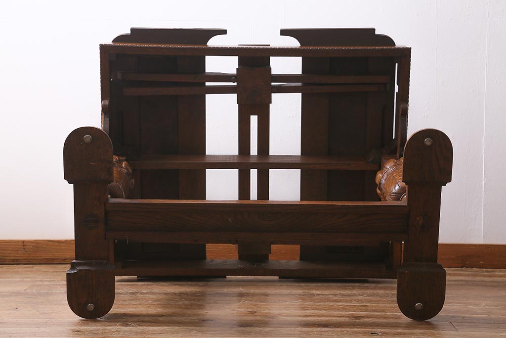 テーブル> 4人用ダイニングテーブル > アンティーク家具 イギリスアンティーク オーク材 ブルボーズレッグが目を引くドローリーフテーブル(エクステンションテーブル、ダイニングテーブル)(R-039960)