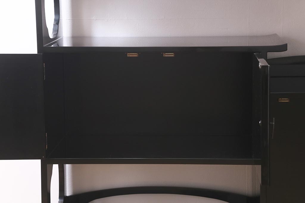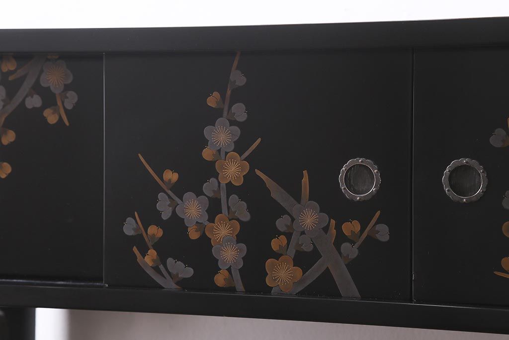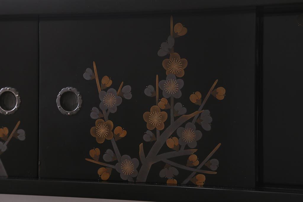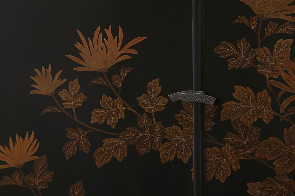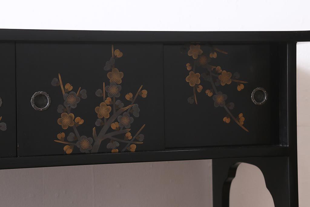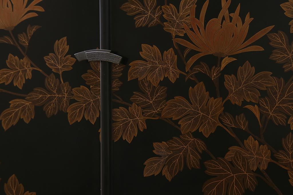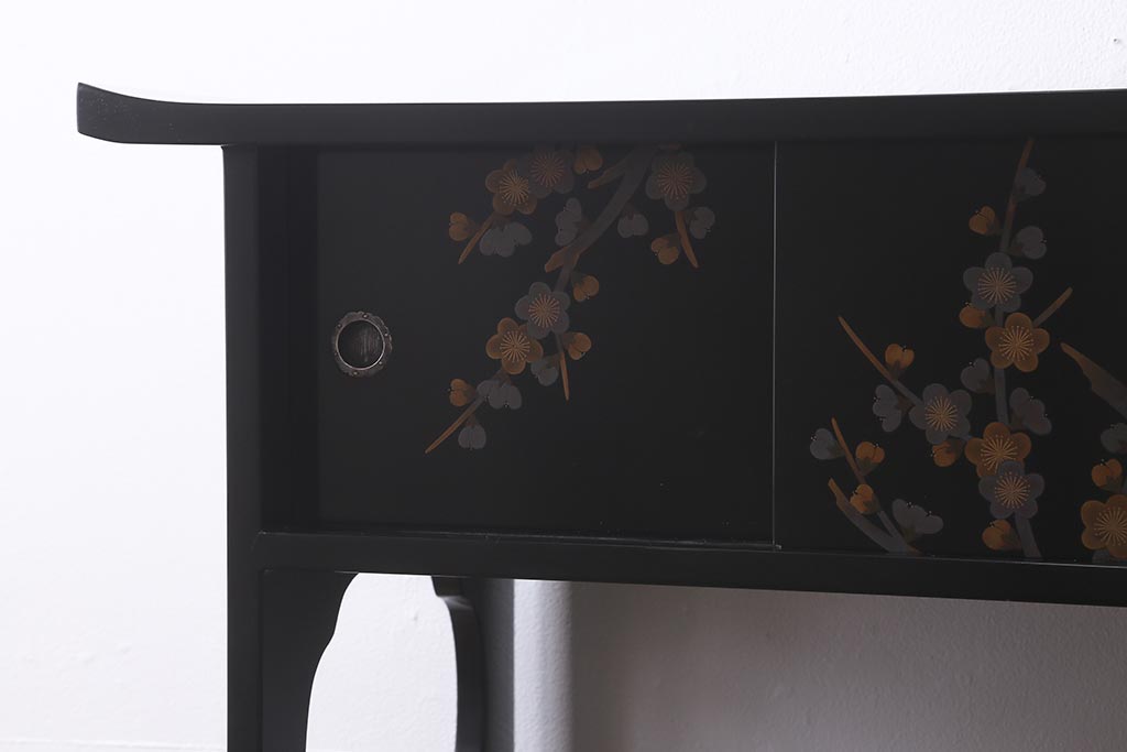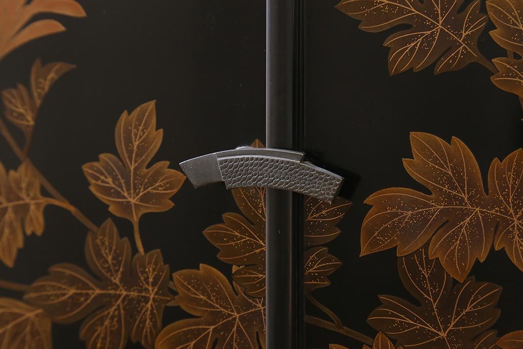 民芸家具 > 中古 伝統工芸品 在銘 六右衛門作 漆塗り 四季折々の草花の蒔絵が美しい飾り棚(茶箪笥、茶棚)(R-039813)