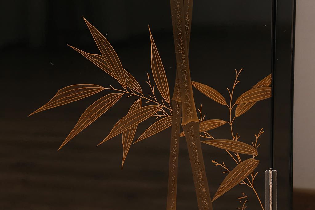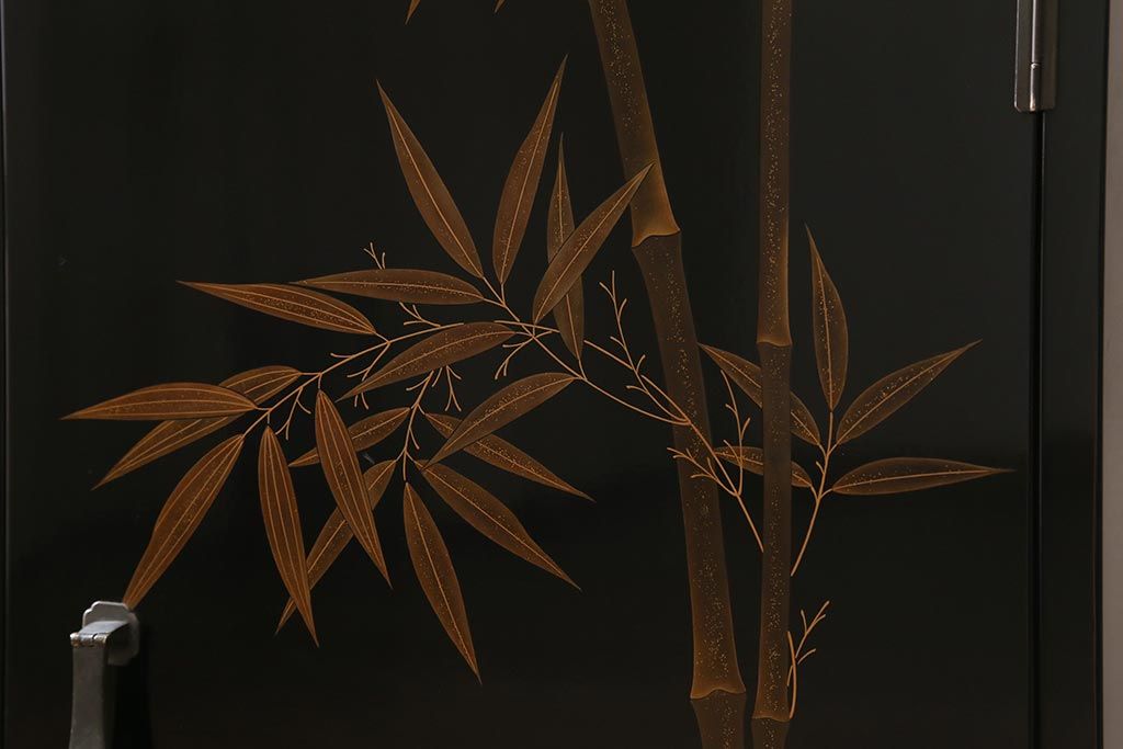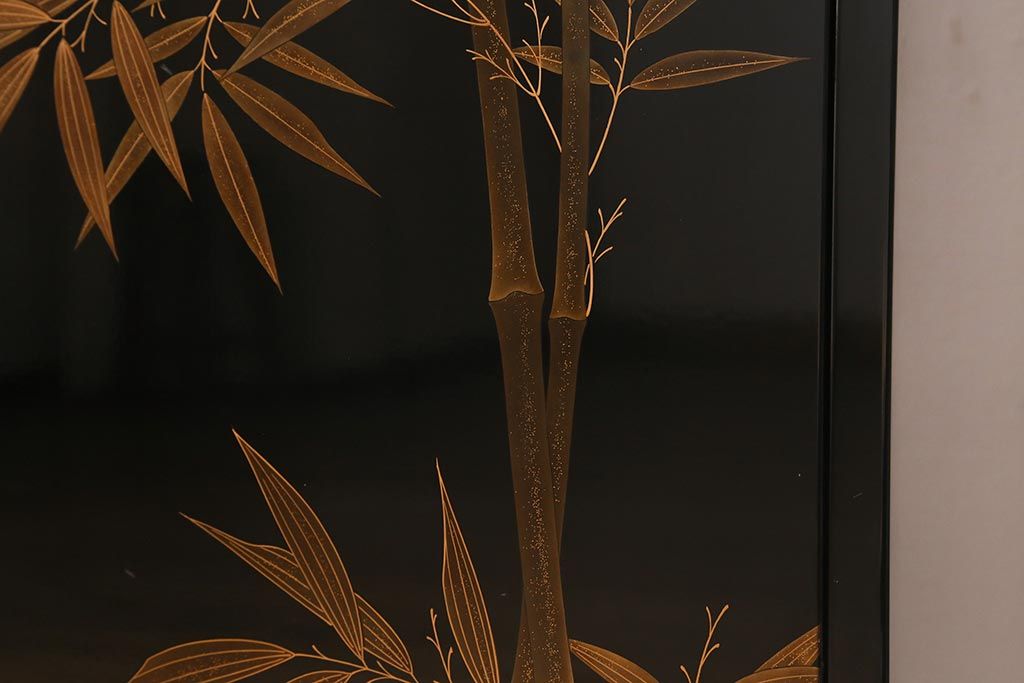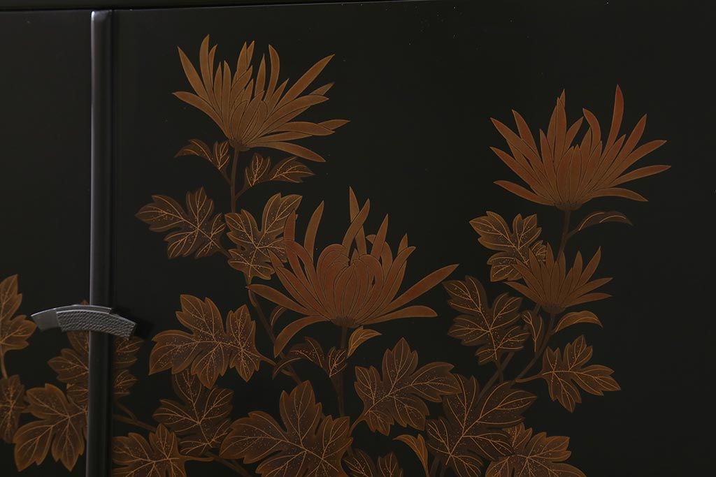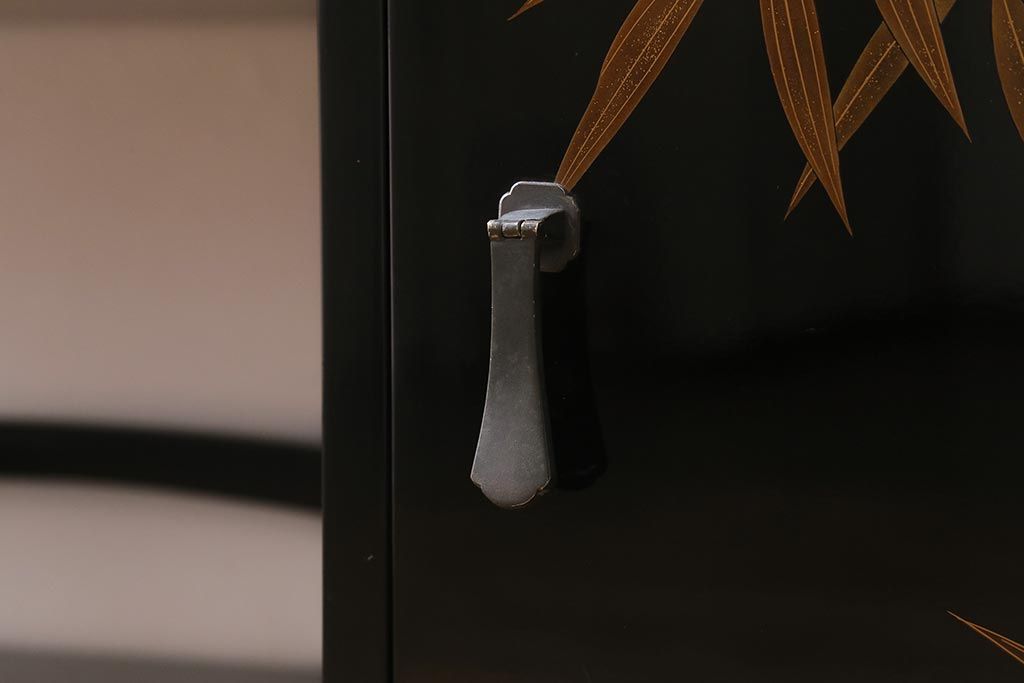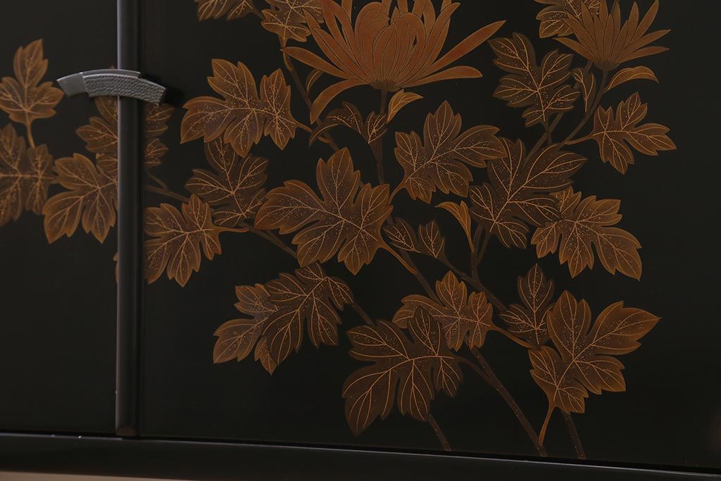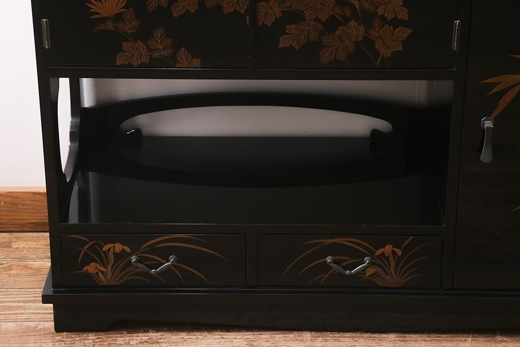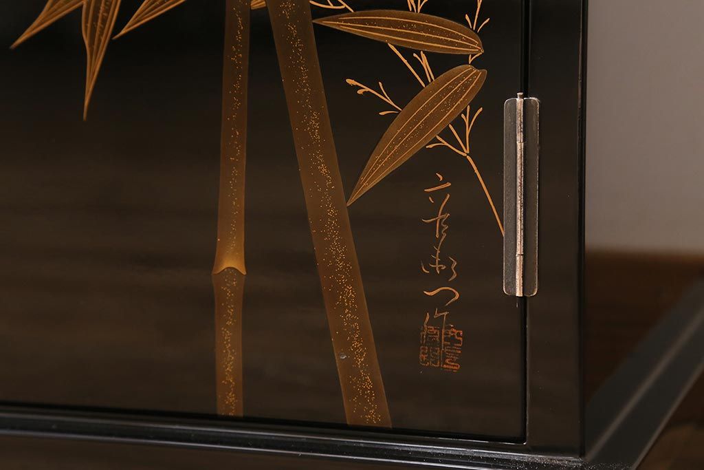 和箪笥 > 中古 伝統工芸品 在銘 六右衛門作 漆塗り 四季折々の草花の蒔絵が美しい飾り棚(茶箪笥、茶棚)(R-039813)