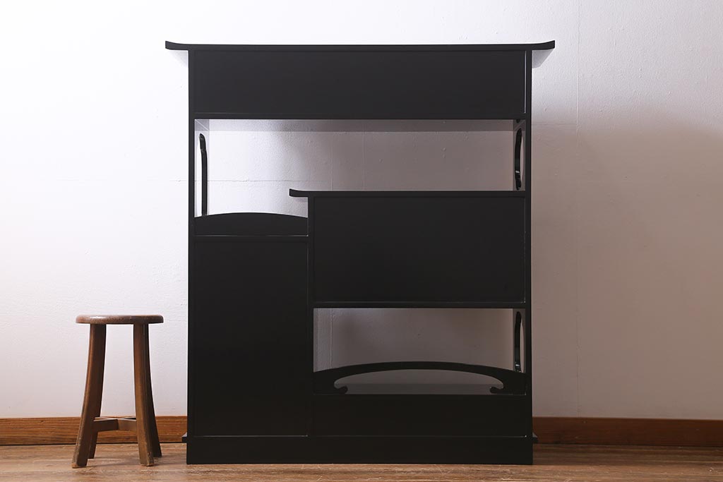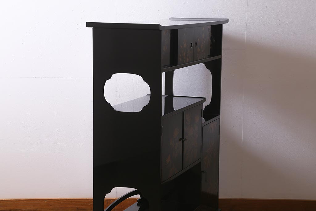 オープンラック・シェルフ> ディスプレイラック > 中古 伝統工芸品 在銘 六右衛門作 漆塗り 四季折々の草花の蒔絵が美しい飾り棚(茶箪笥、茶棚)(R-039813)