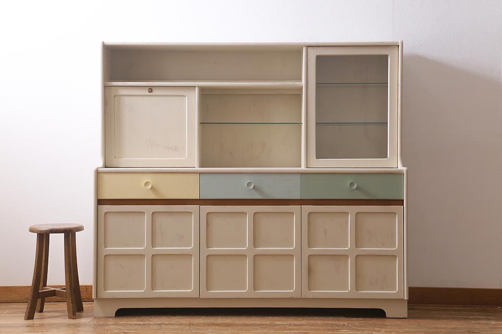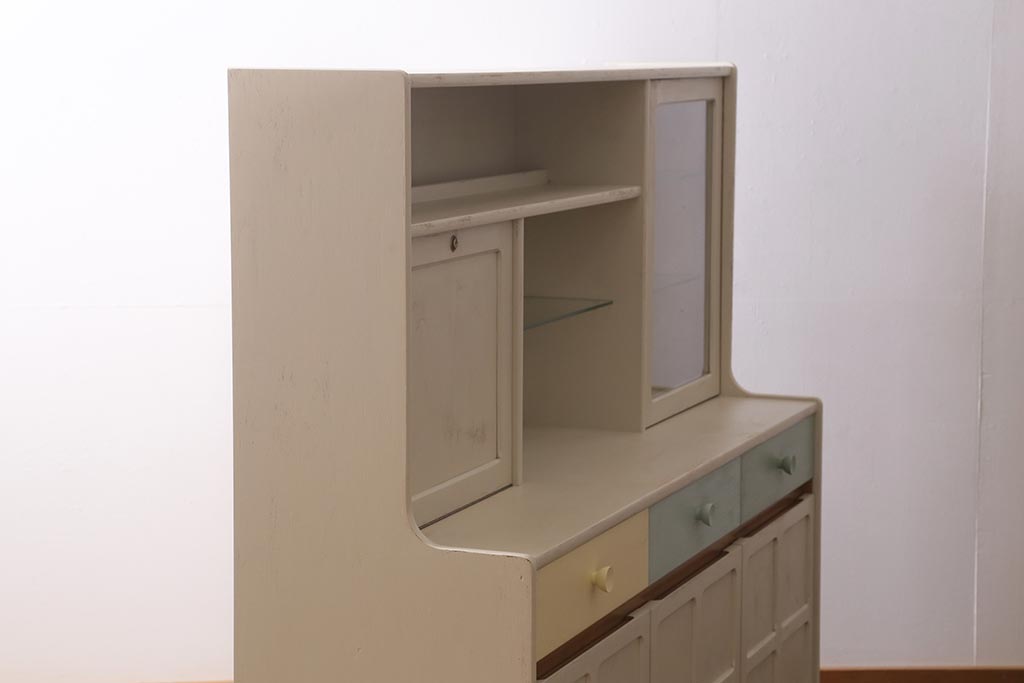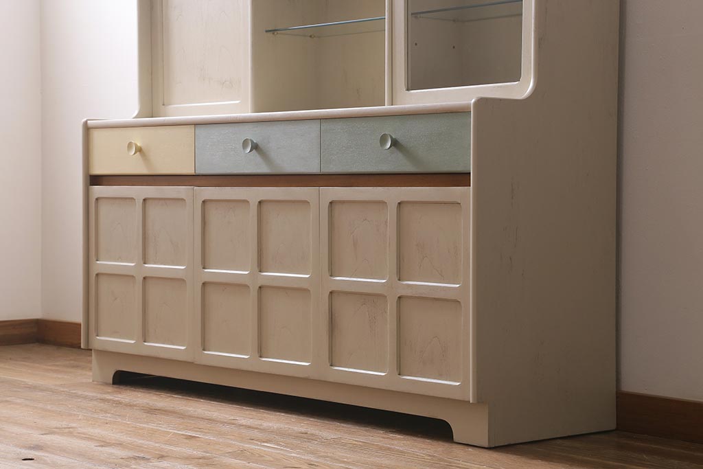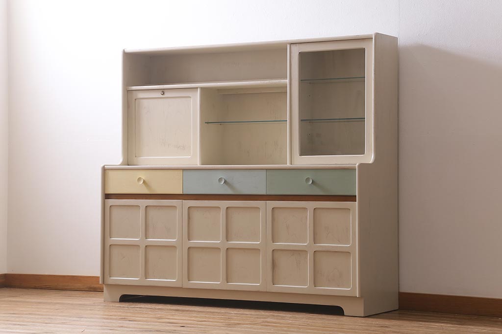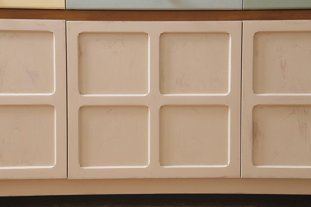 ヴィンテージ家具 イギリス ペイントリメイク nathan社(ネイサン) 淡い色合いがおしゃれなキャビネット(カップボード、食器棚、収納棚)(R-039747)です。