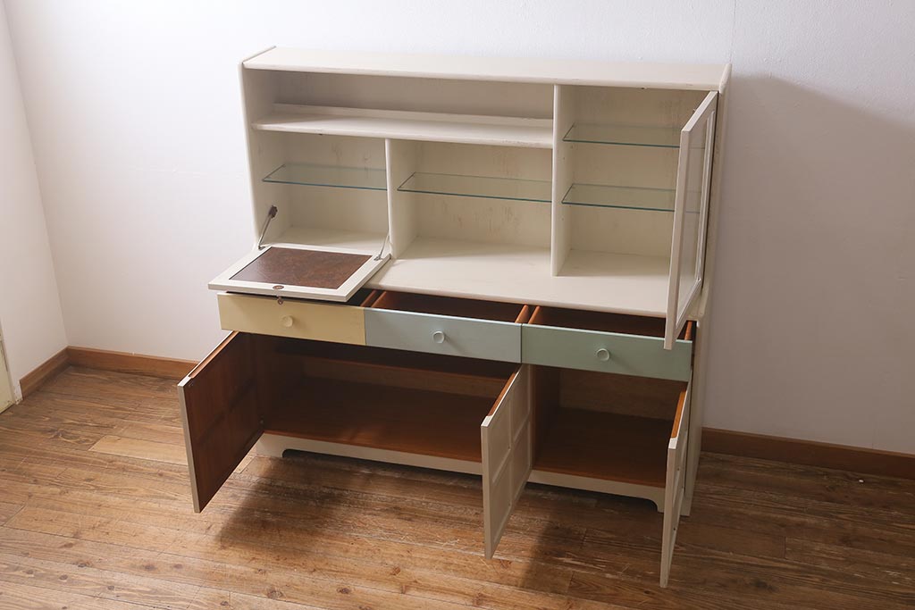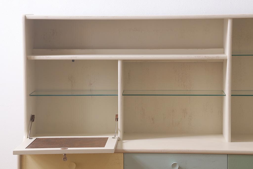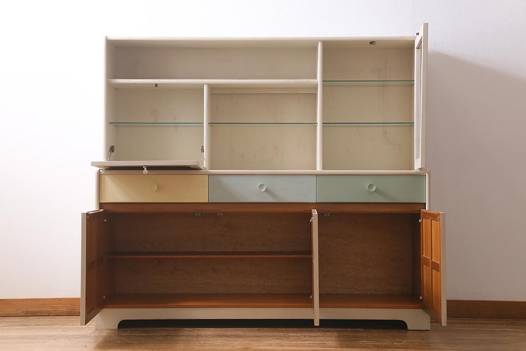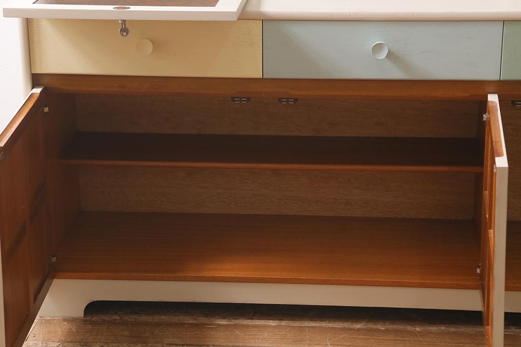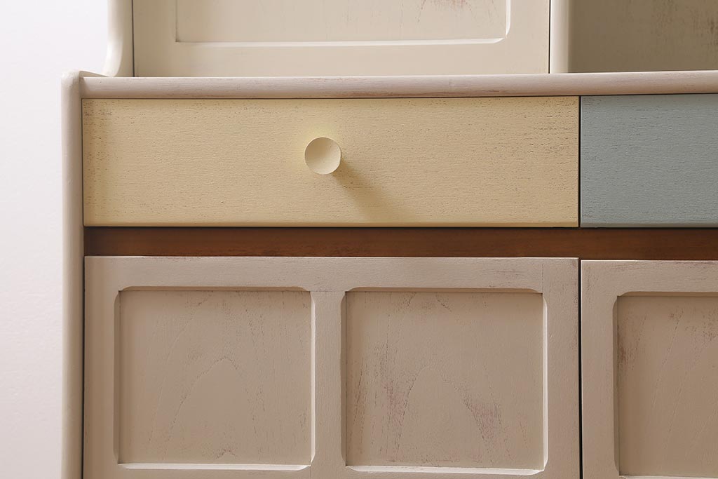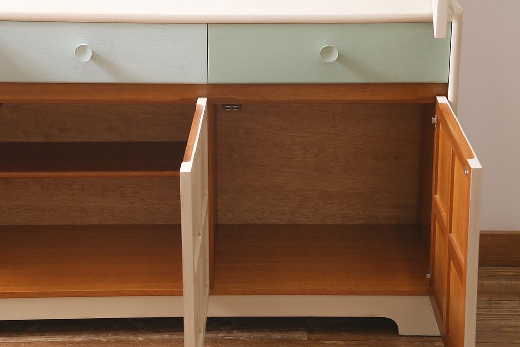 ヴィンテージ家具 イギリス ペイントリメイク nathan社(ネイサン) 淡い色合いがおしゃれなキャビネット(カップボード、食器棚、収納棚)(R-039747)です。