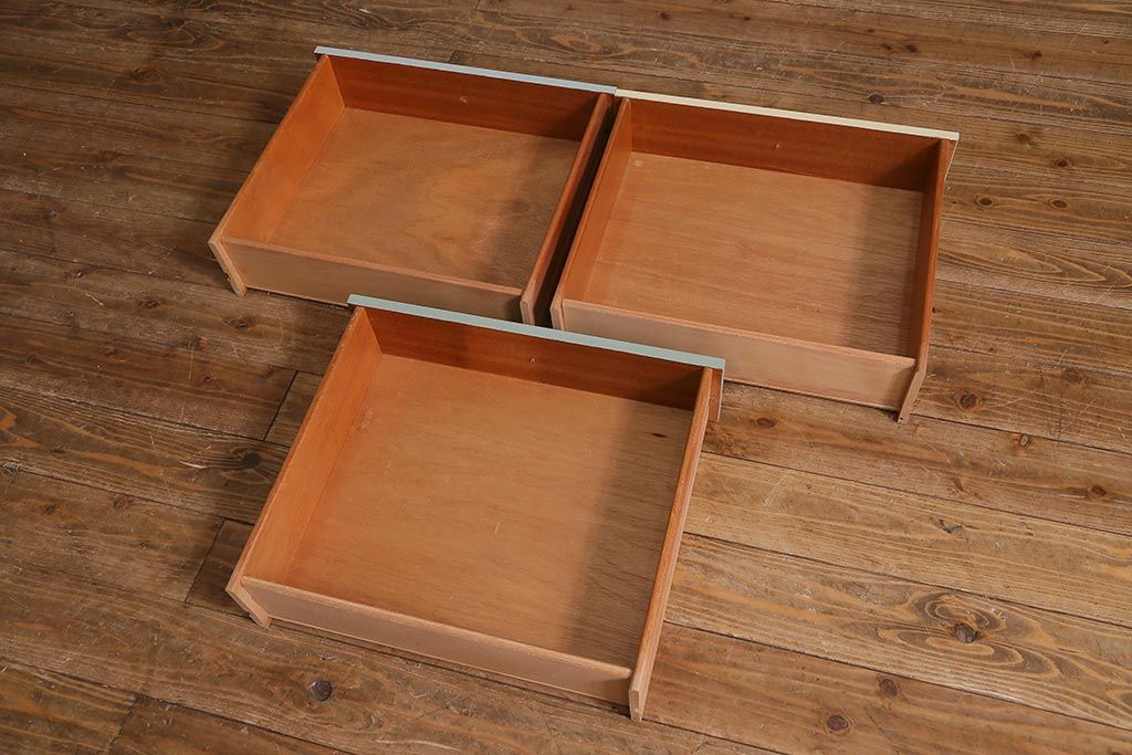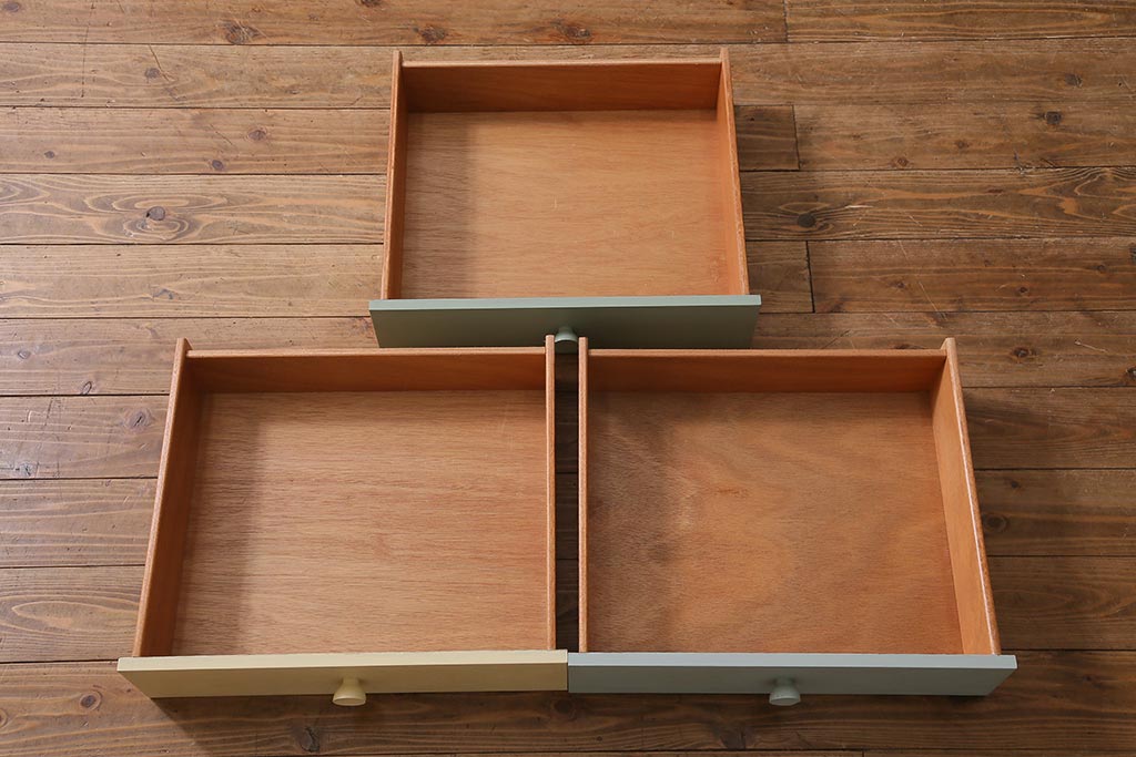 引き出しごとに色味を変えてリペイントしました。