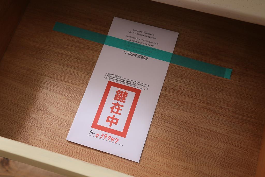 鍵は付属します。画像にありますように、袋に入れお付けします。スムーズに動くように調整していますが、あくまでも古いものや中古品ですので、長期の使用保証は出来かねます。ご購入後不具合が発生した場合は、当店でサポートさせていただきますので、お気軽にご相談くださいませ。