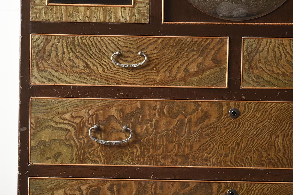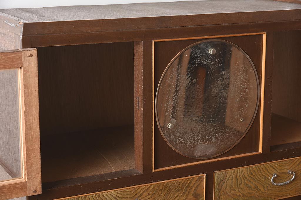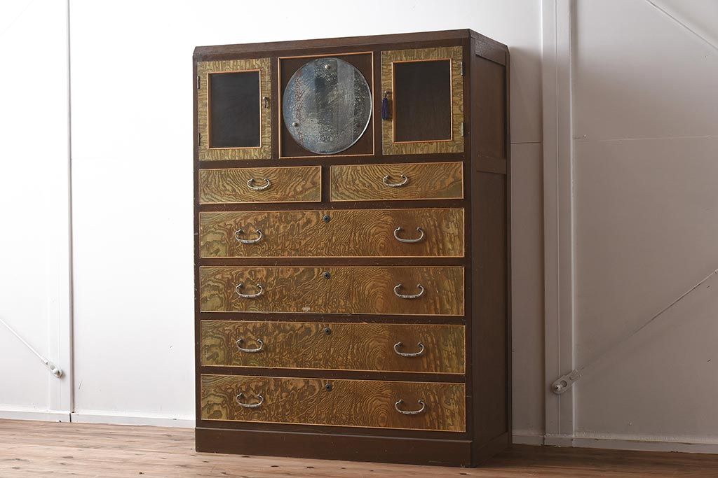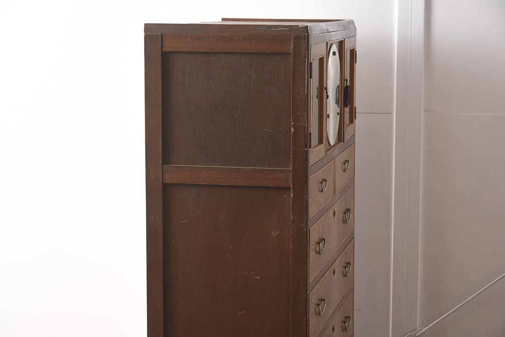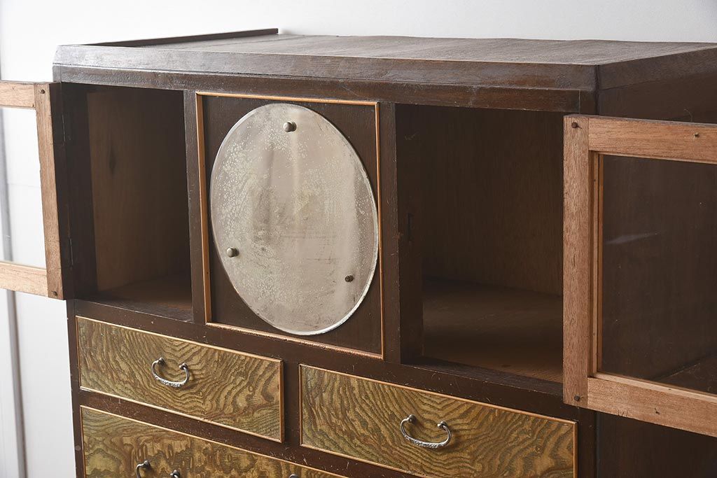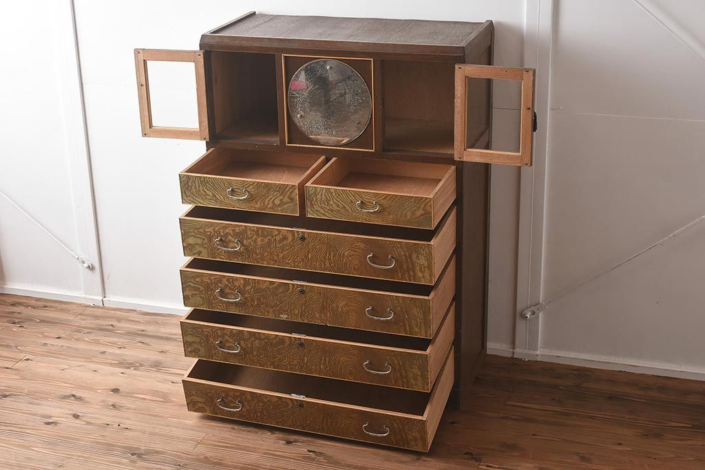 和箪笥 > 【簡易リペア限定品】和製アンティーク 力強い木目が印象的な鏡付きの衣装タンス(チェスト、和たんす、収納箪笥、引き出し)(R-040016)