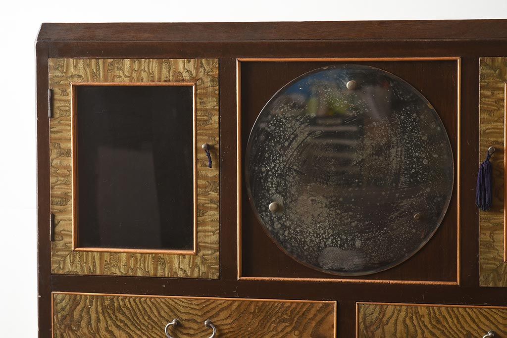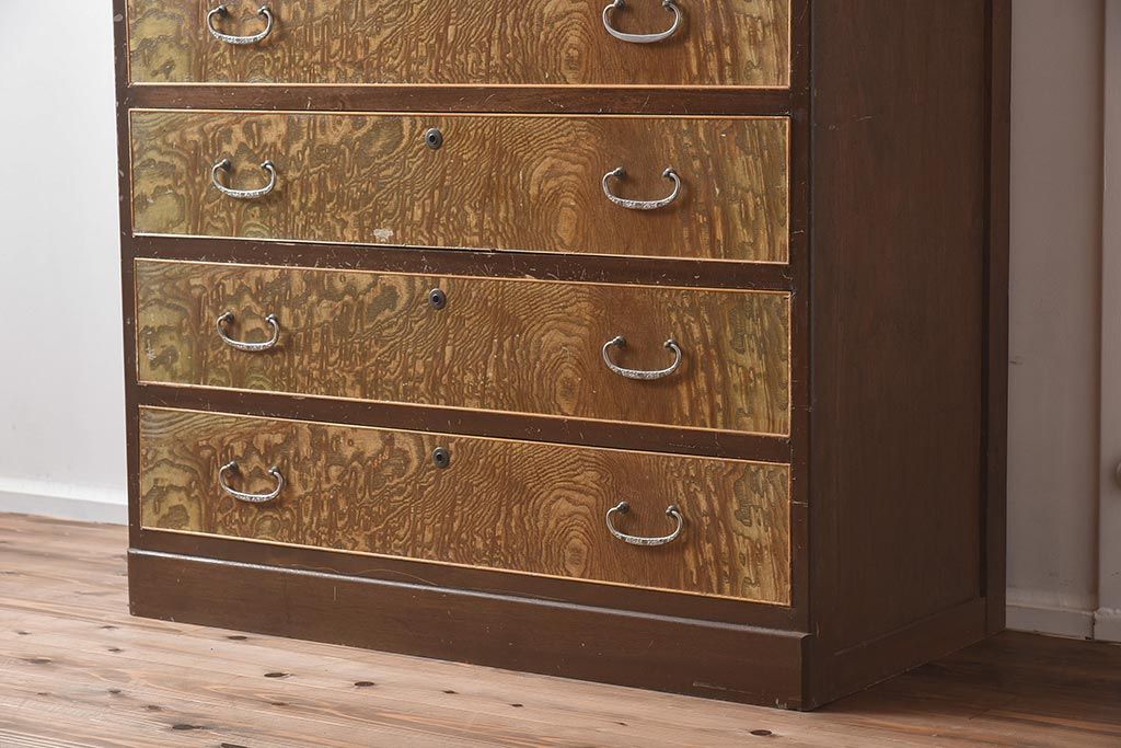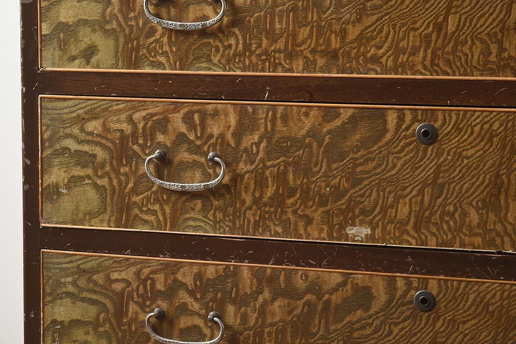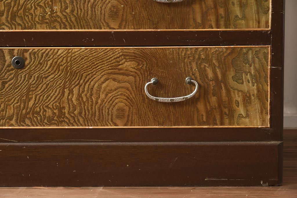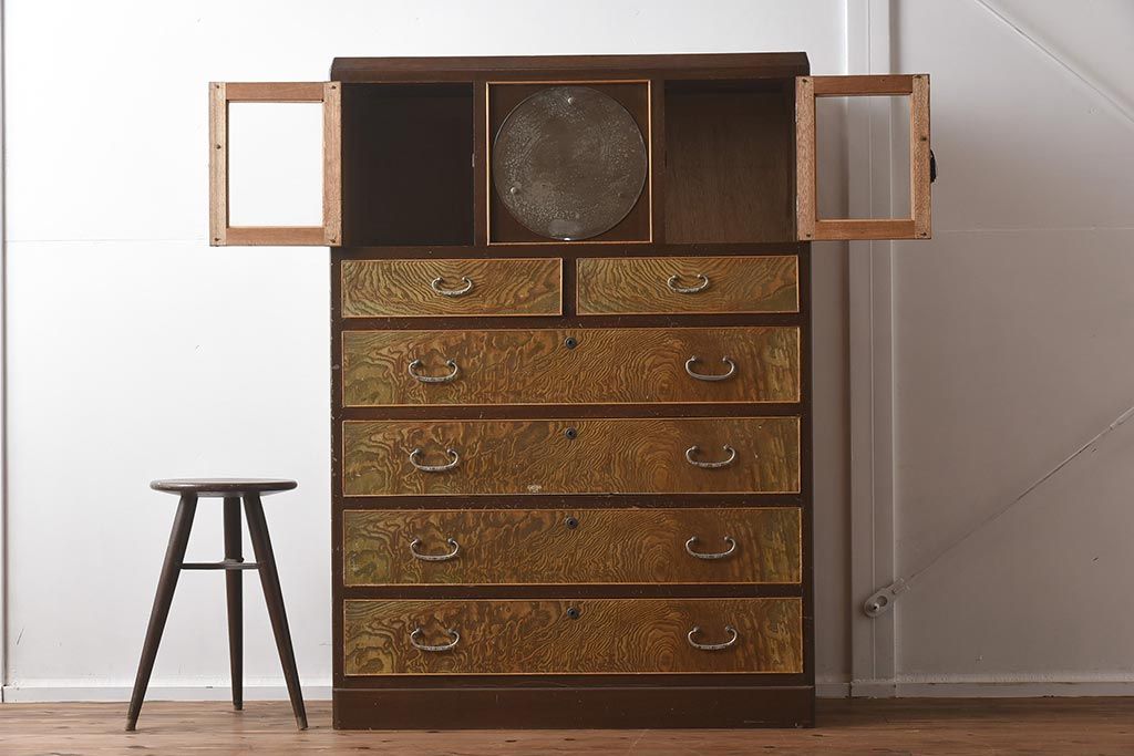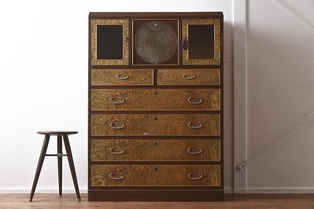 和箪笥 > 【簡易リペア限定品】和製アンティーク 力強い木目が印象的な鏡付きの衣装タンス(チェスト、和たんす、収納箪笥、引き出し)(R-040016)