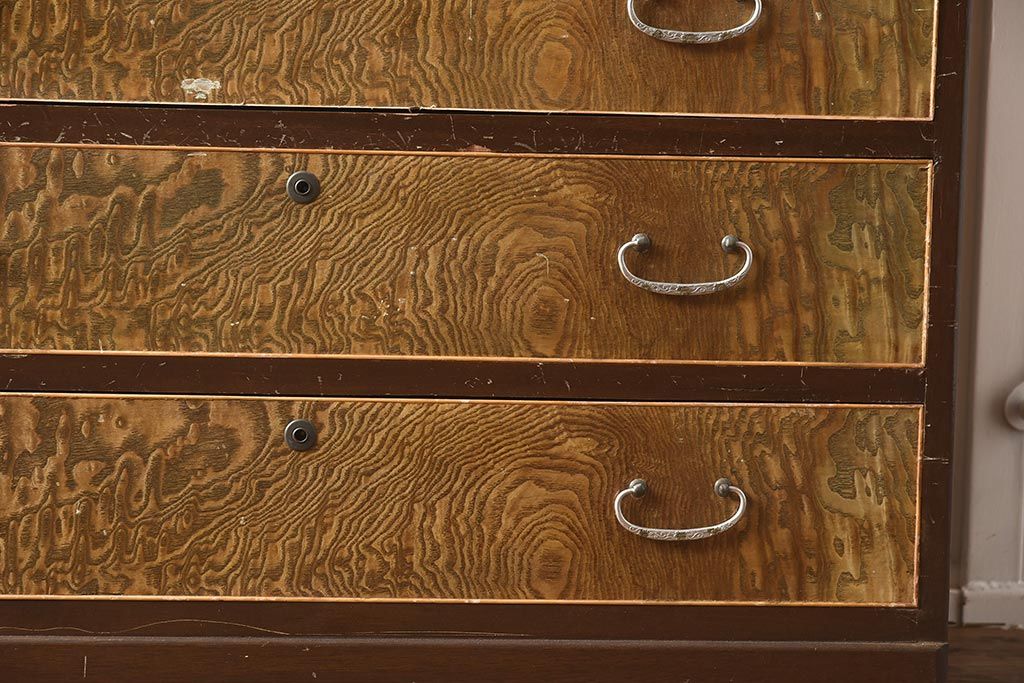 和箪笥> 衣装箪笥 > 【簡易リペア限定品】和製アンティーク 力強い木目が印象的な鏡付きの衣装タンス(チェスト、和たんす、収納箪笥、引き出し)(R-040016)