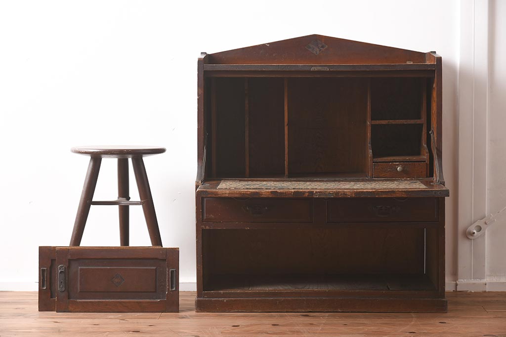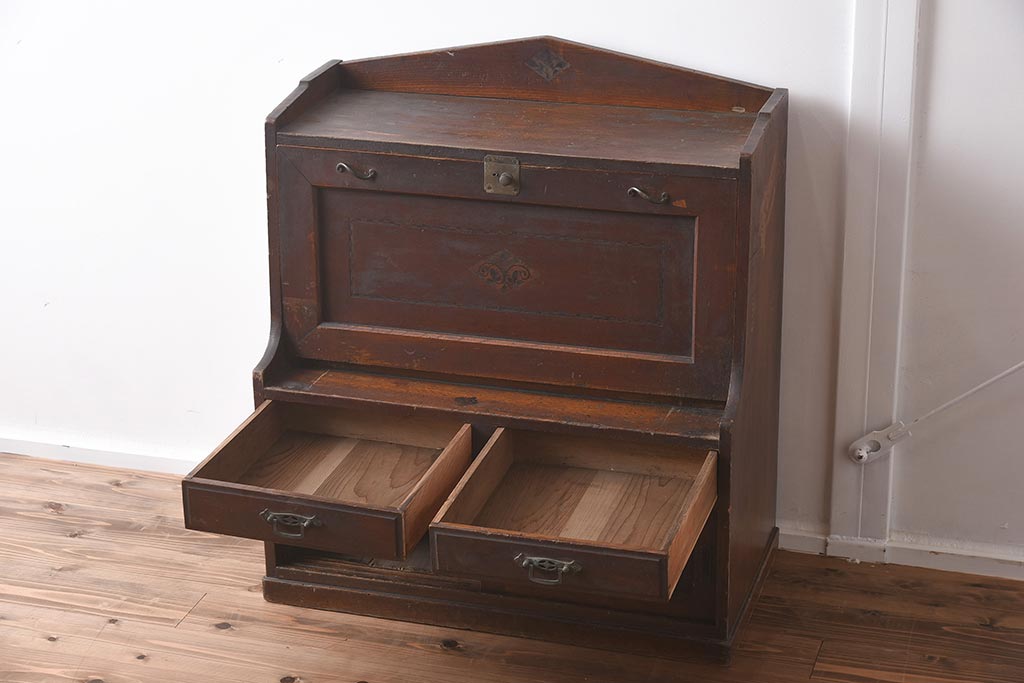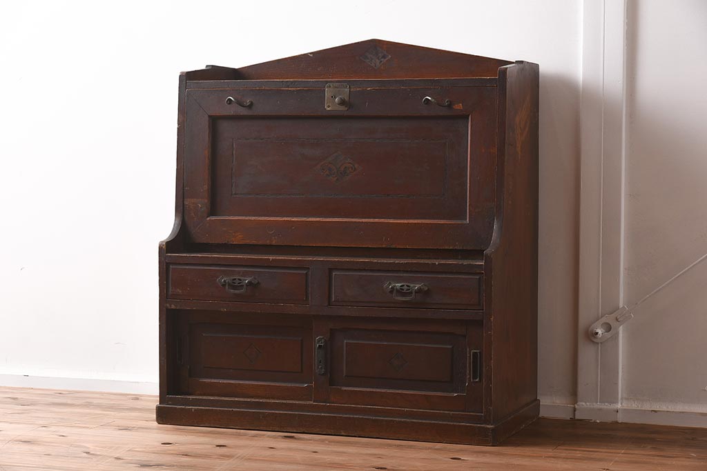 アンティーク家具 栓材 象嵌がおしゃれなライティングビューロー(簿記机、ワークデスク)(R-040017)です。