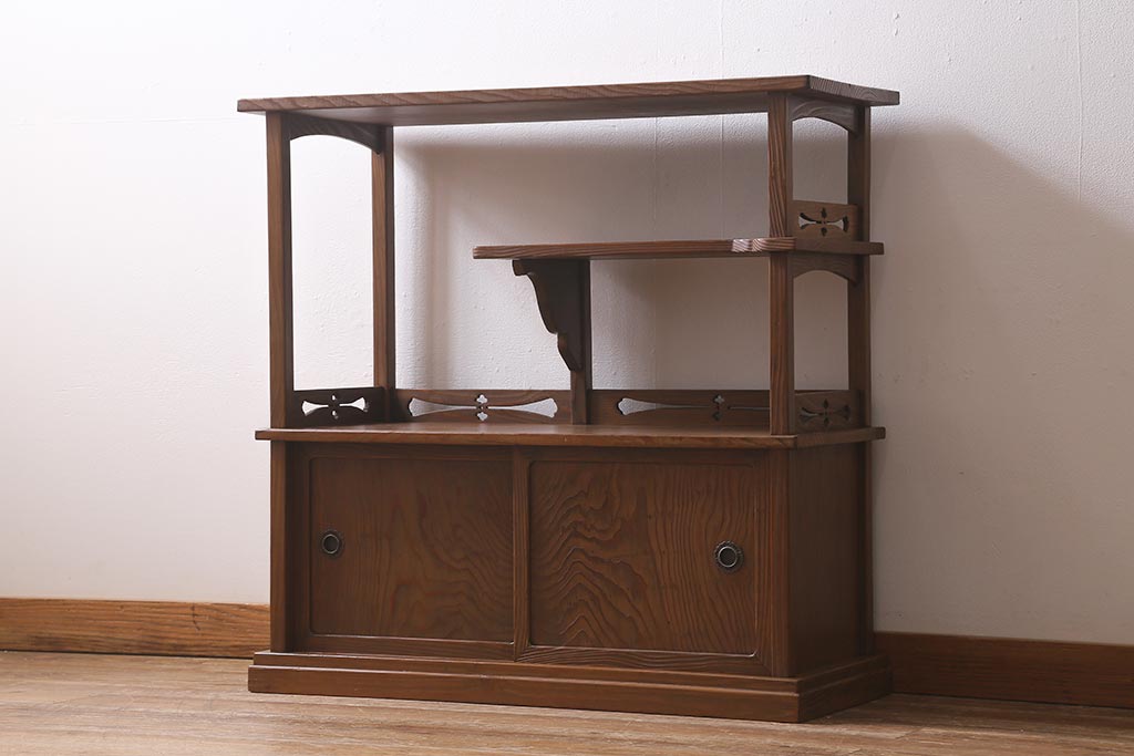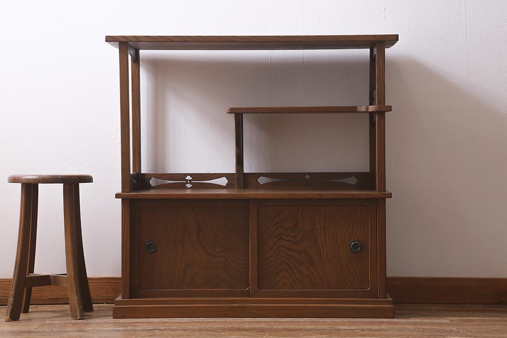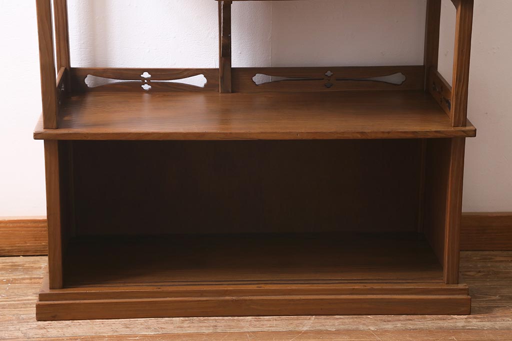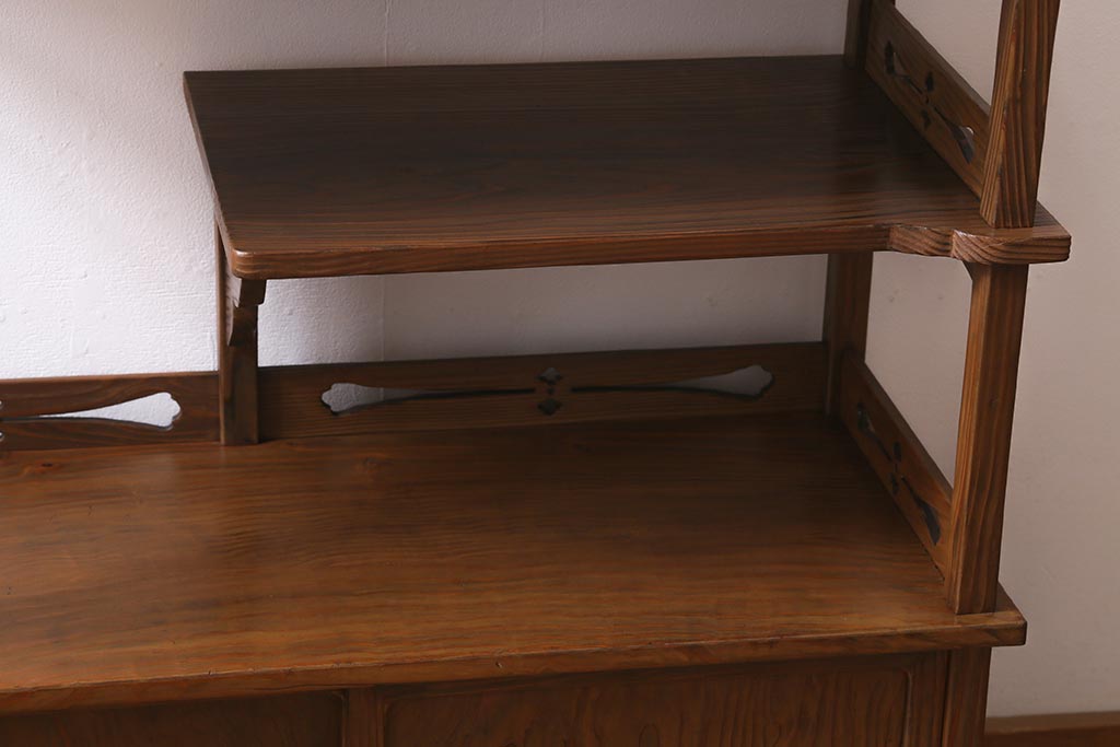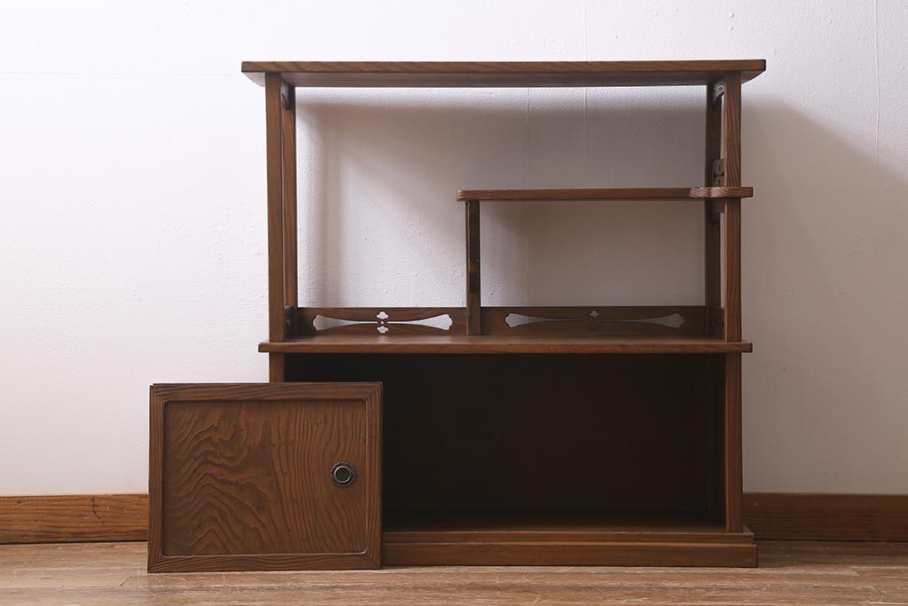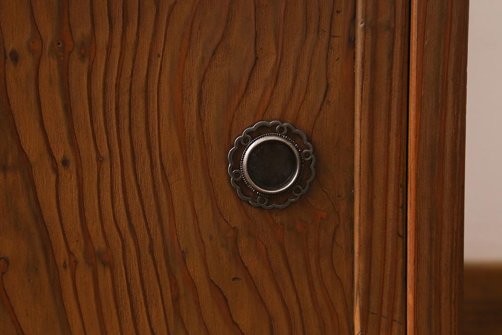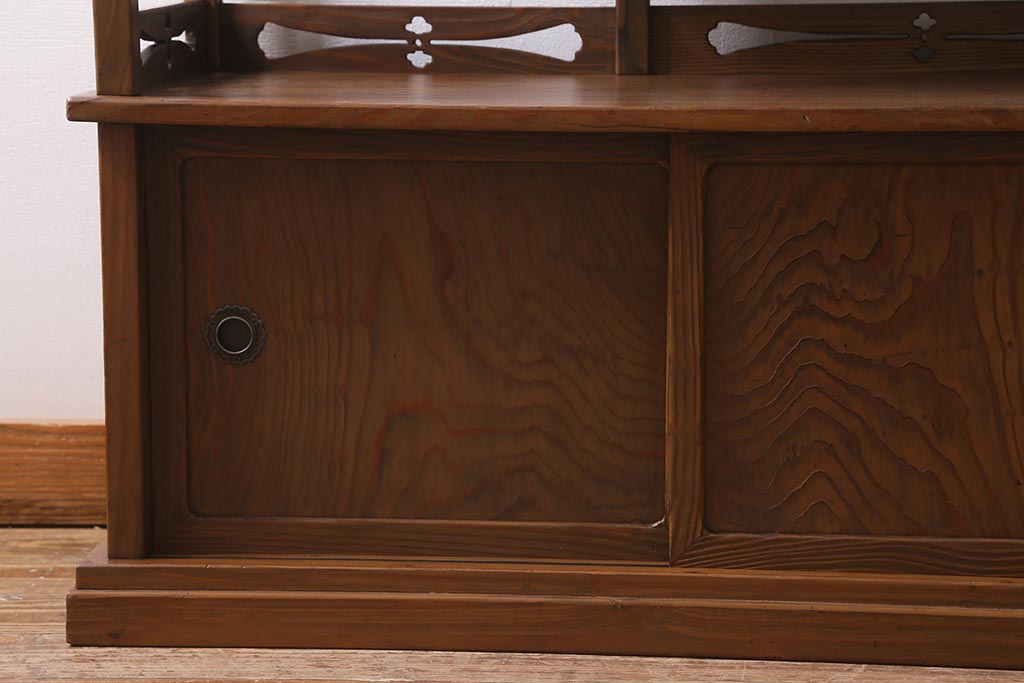 ヴィンテージ家具 工芸家具 高級杉材 味のある木の質感と力強い杢目が魅力の飾り棚(茶棚、収納棚、戸棚)(R-040026)です。