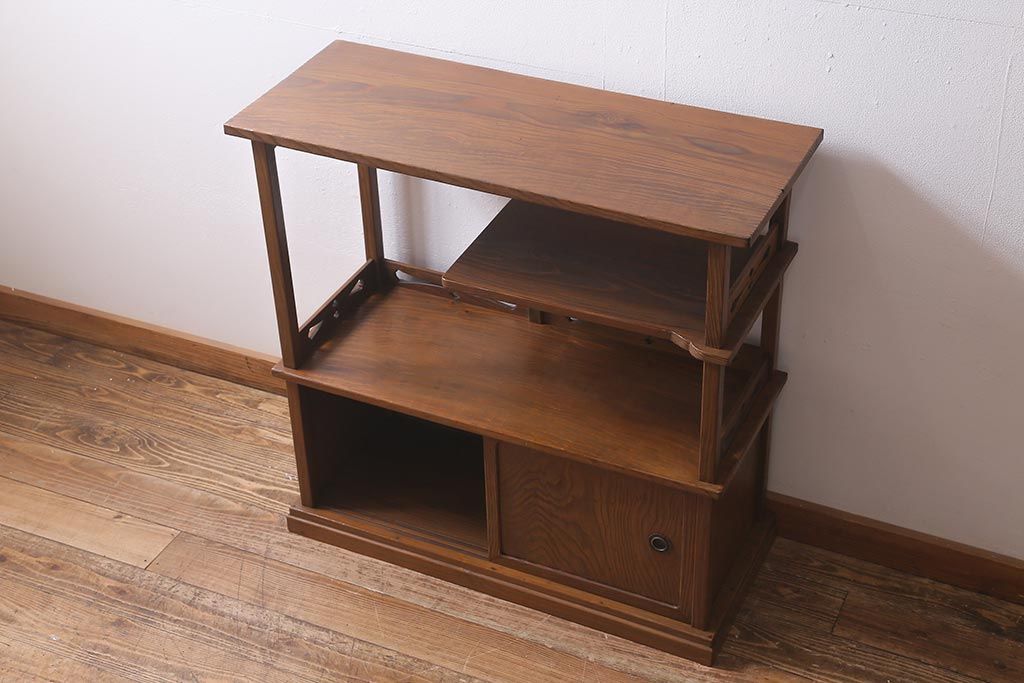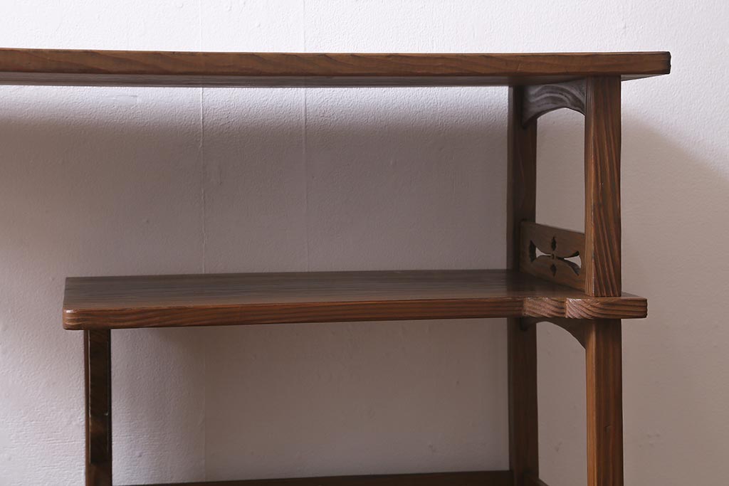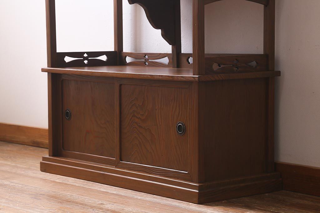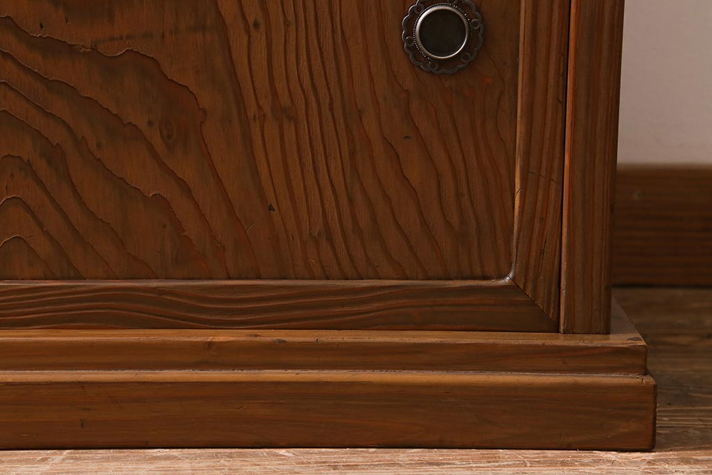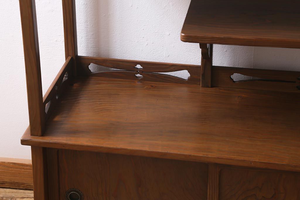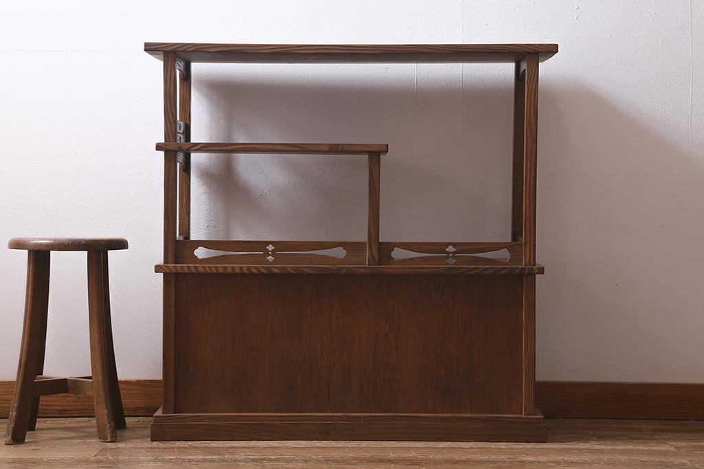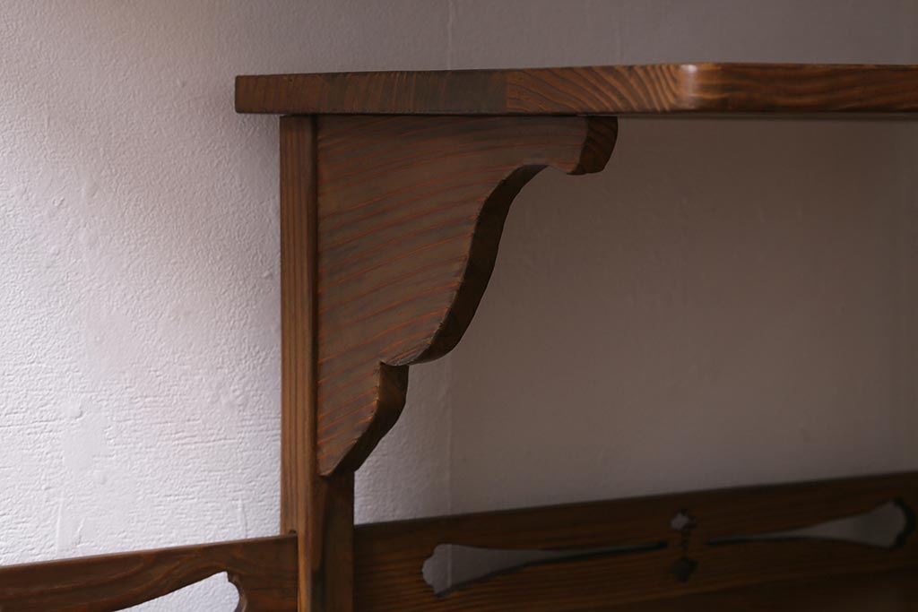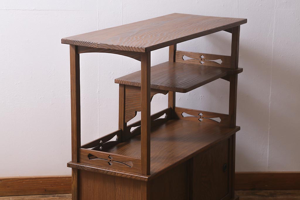 ヴィンテージ家具 工芸家具 高級杉材 味のある木の質感と力強い杢目が魅力の飾り棚(茶棚、収納棚、戸棚)(R-040026)です。