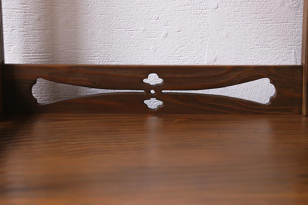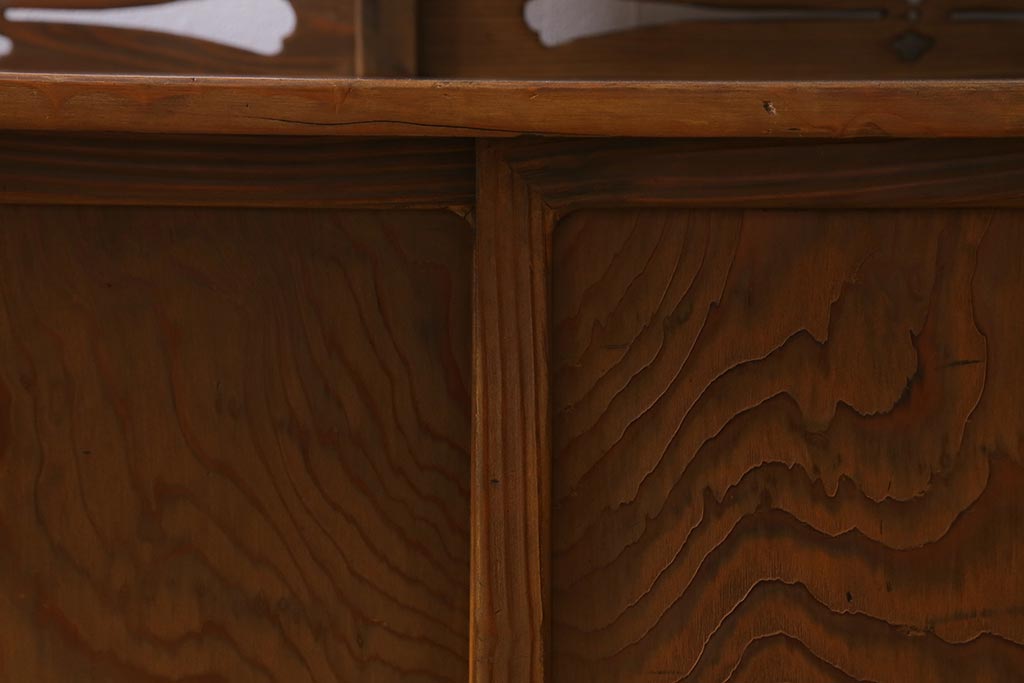 ヴィンテージ家具 工芸家具 高級杉材 味のある木の質感と力強い杢目が魅力の飾り棚(茶棚、収納棚、戸棚、ビンテージ)(R-040026)
