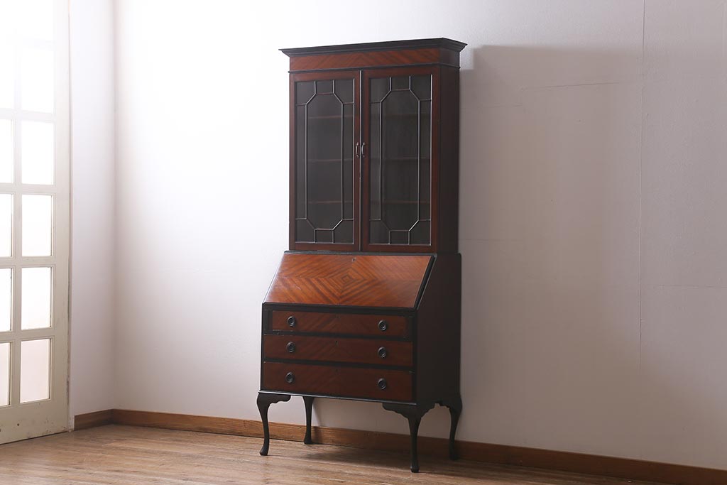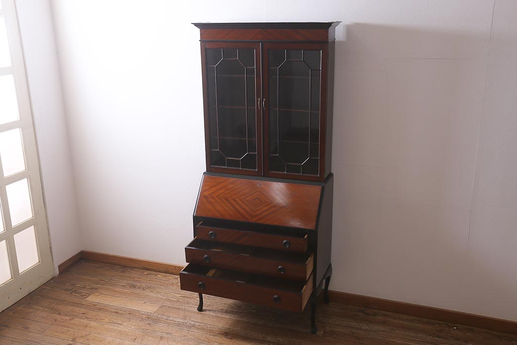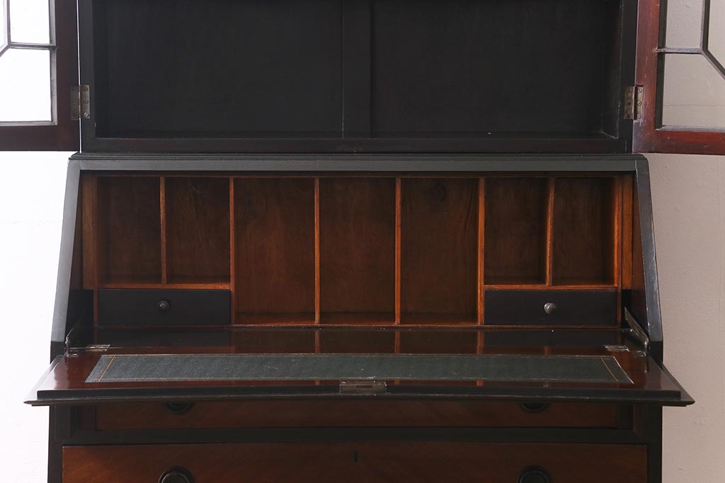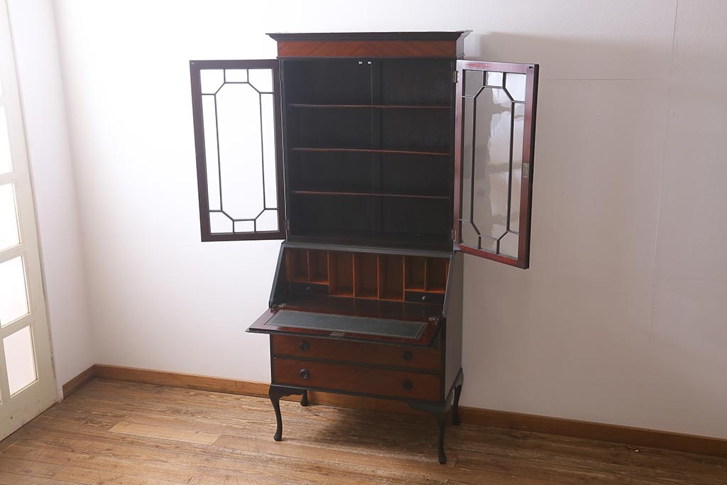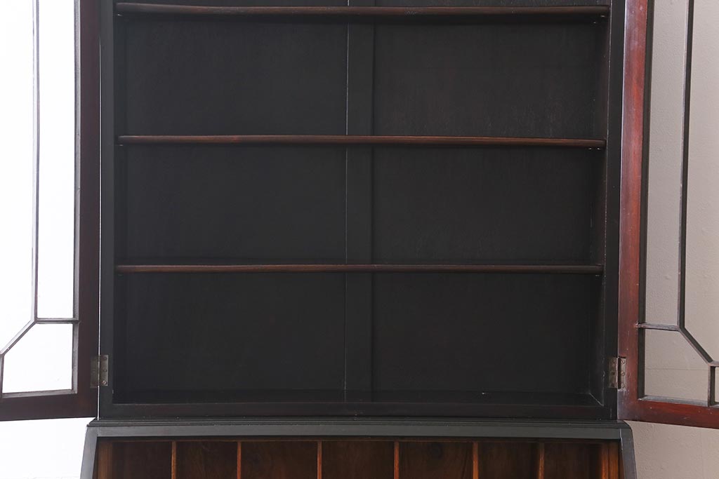 ラフジュ工房> デスク> ライティングビューロー・簿記机 > アンティーク家具 イギリスアンティーク ステンドグラスがエレガントなビューローブックケース(ライティングビューロー、本箱、デスク、在宅ワーク、在宅用、チェスト)(R-040009)