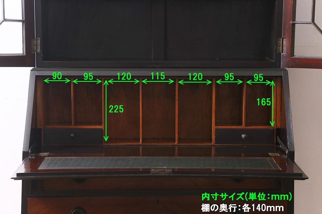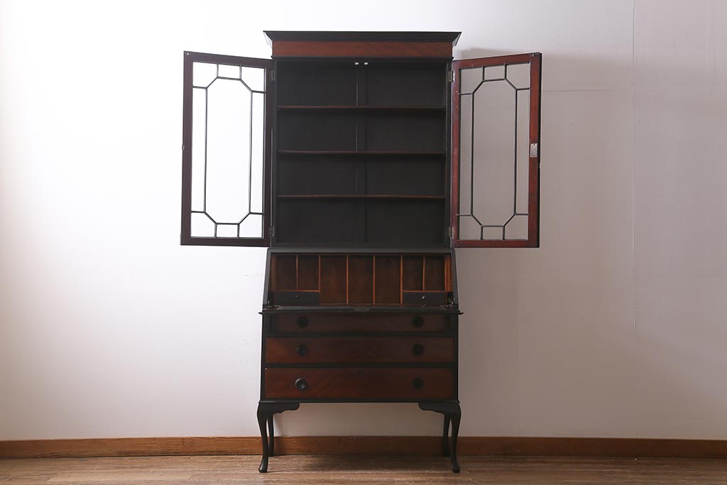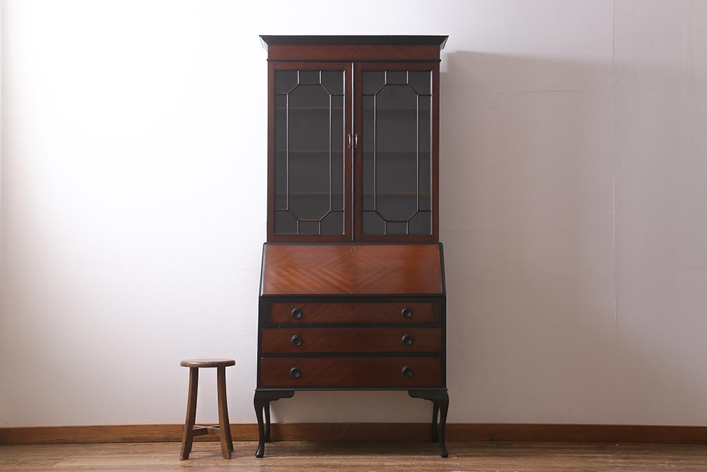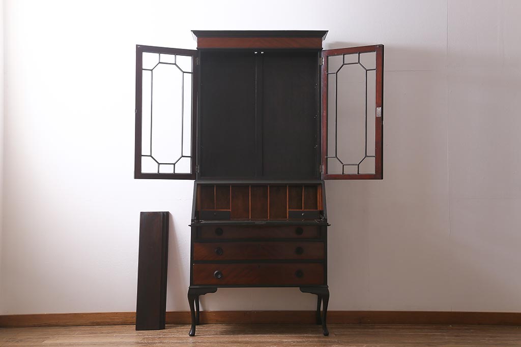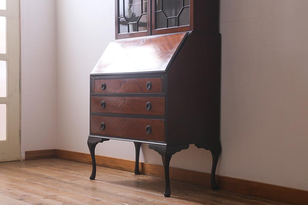 ラフジュ工房> デスク> ライティングビューロー・簿記机 > アンティーク家具 イギリスアンティーク ステンドグラスがエレガントなビューローブックケース(ライティングビューロー、本箱、デスク、在宅ワーク、在宅用、チェスト)(R-040009)