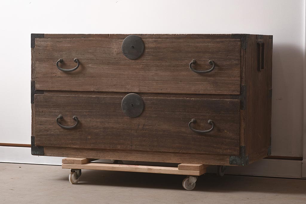 和箪笥 > アンティーク家具 桐材 シンプルなデザインの箪笥ローボード(ローチェスト、衣装箪笥、桐箪笥、桐たんす)(R-039787)