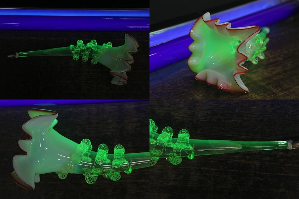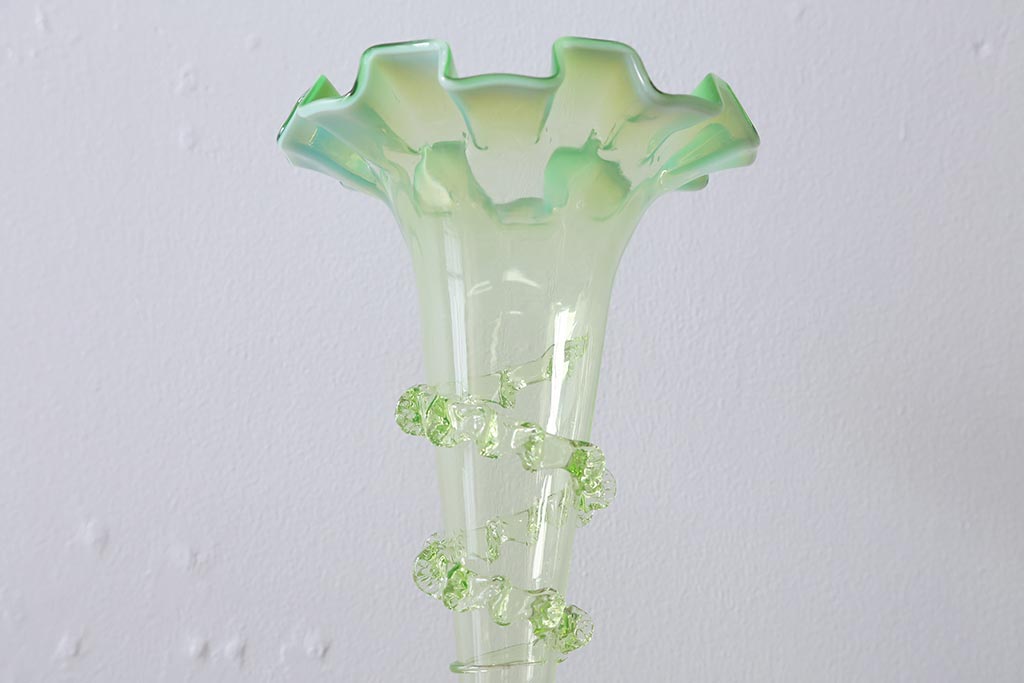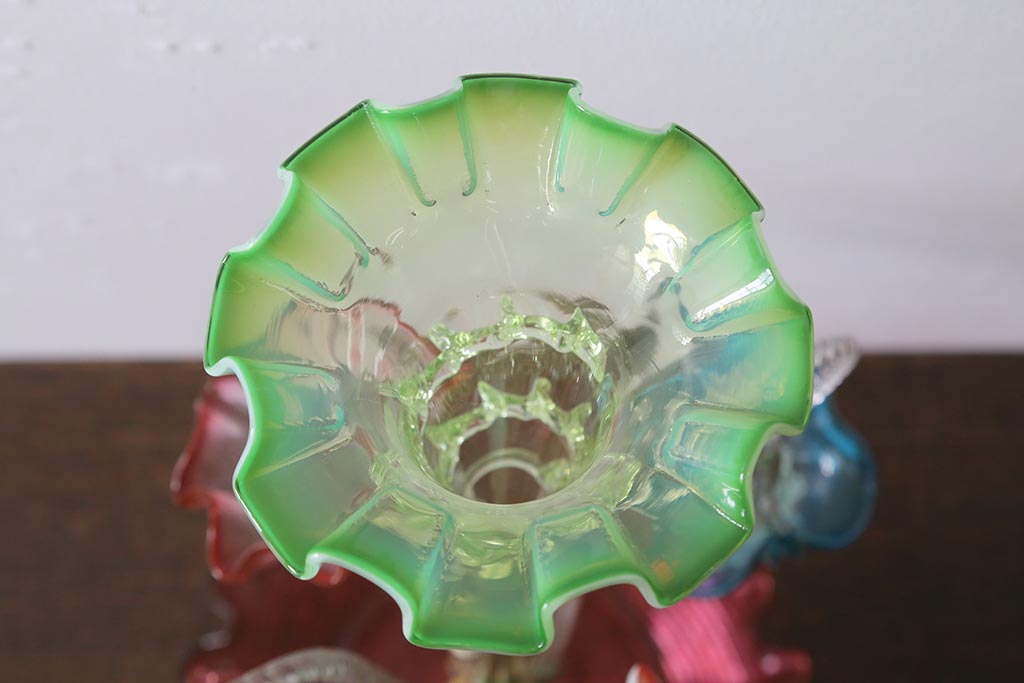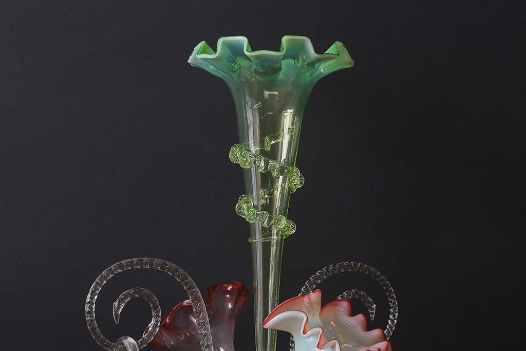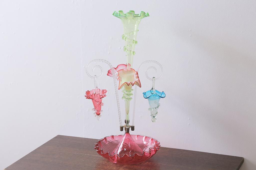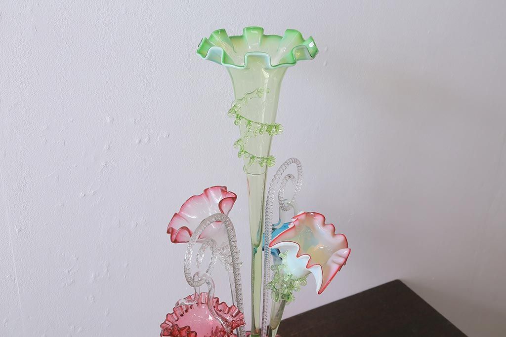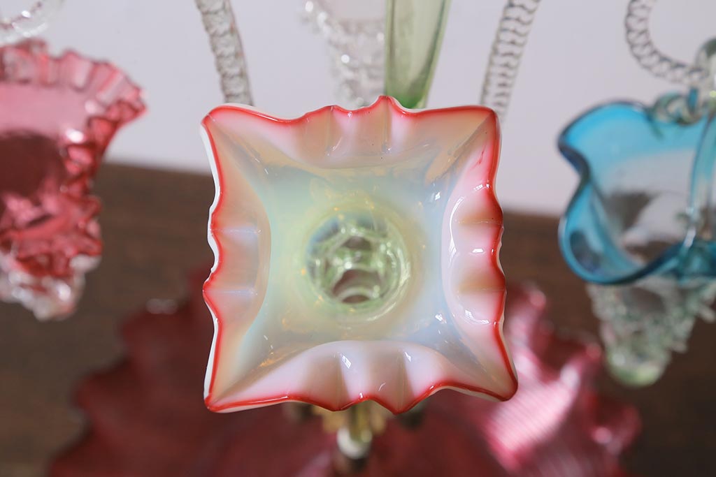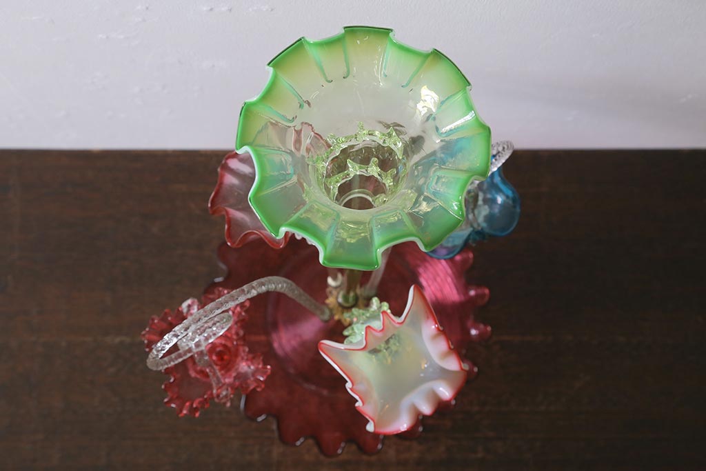 フランスアンティーク ビクトリア朝 glass Epergne ワセリンガラス 華やかなガラス製のセンターピース(テーブルウェア、オブジェ)(R-039549)