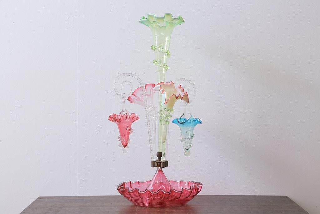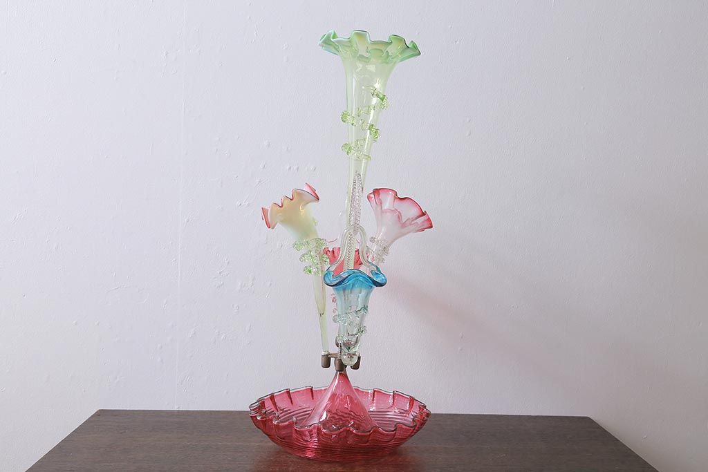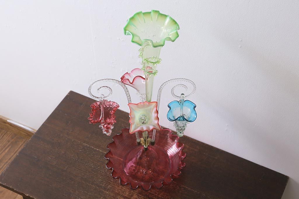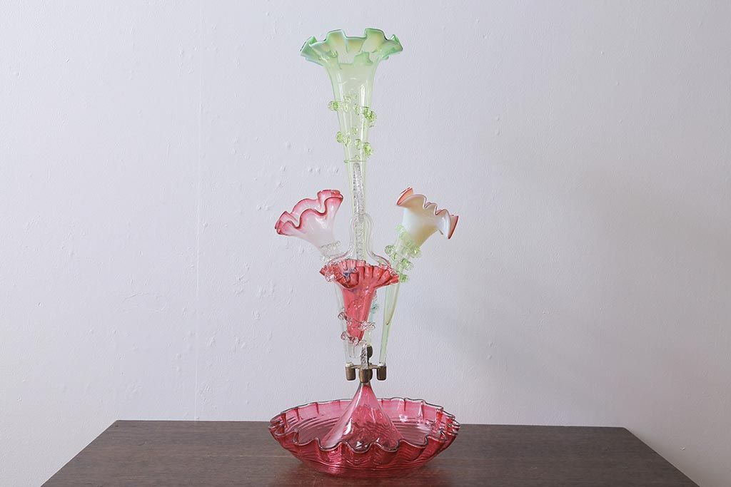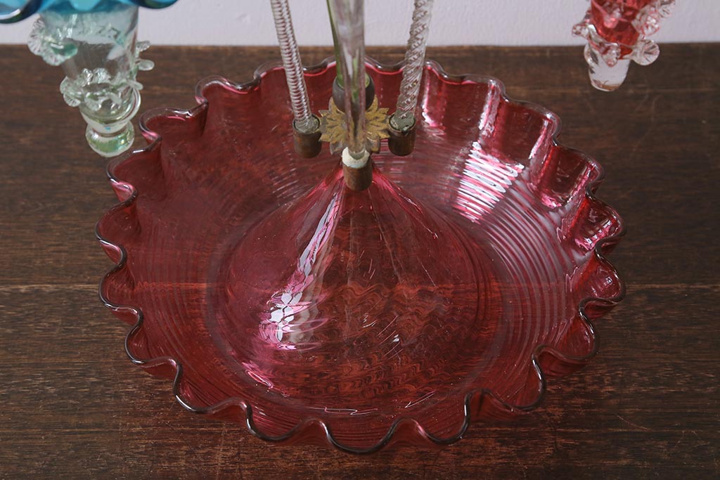 ラフジュ工房> 雑貨> オブジェ > フランスアンティーク ビクトリア朝 glass Epergne ワセリンガラス 華やかなガラス製のセンターピース(テーブルウェア、オブジェ)(R-039549)
