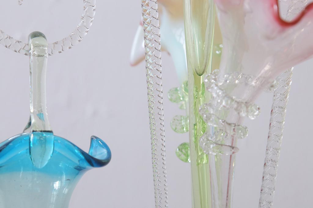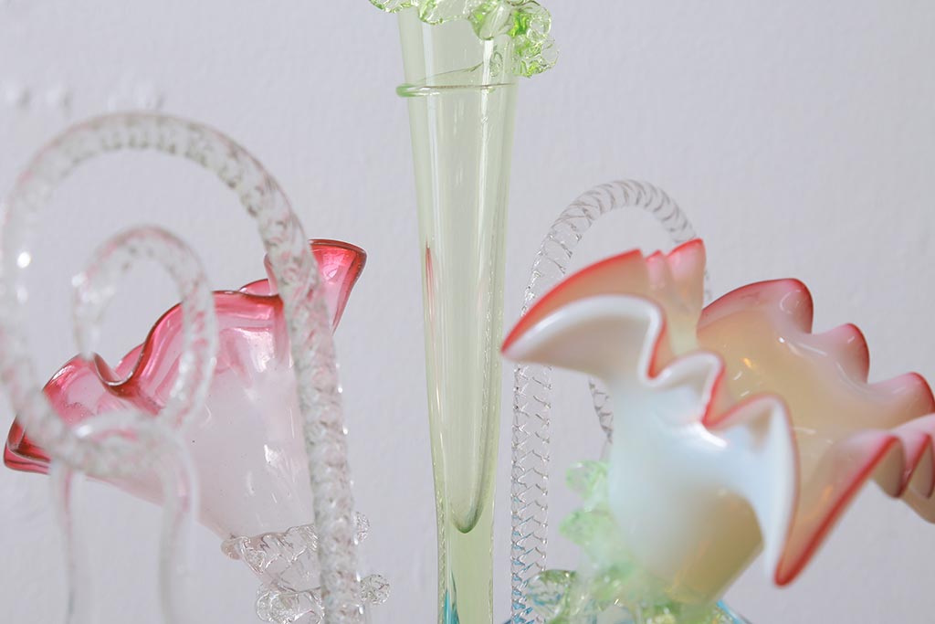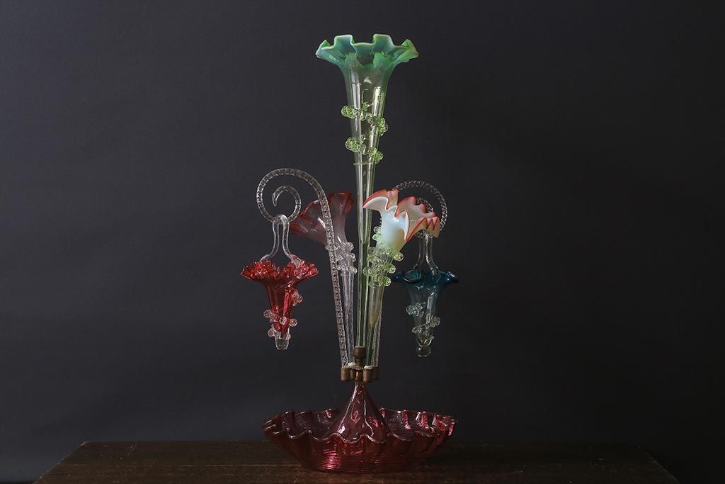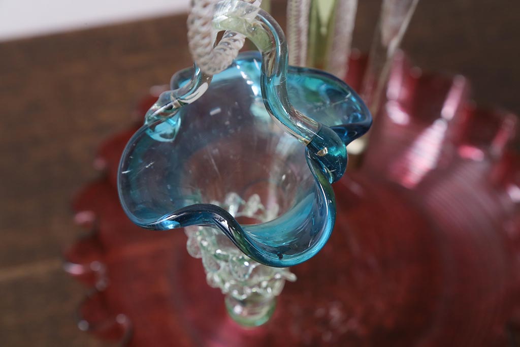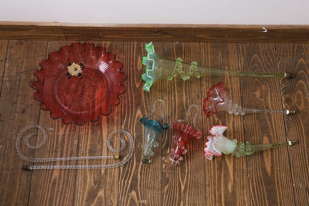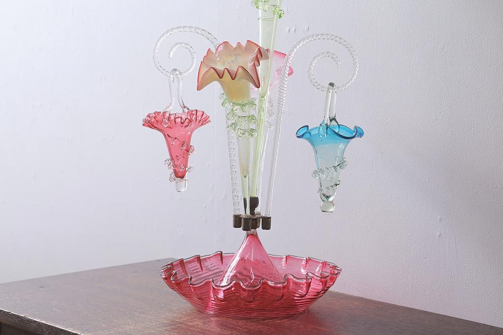 ラフジュ工房> 雑貨> オブジェ > フランスアンティーク ビクトリア朝 glass Epergne ワセリンガラス 華やかなガラス製のセンターピース(テーブルウェア、オブジェ)(R-039549)