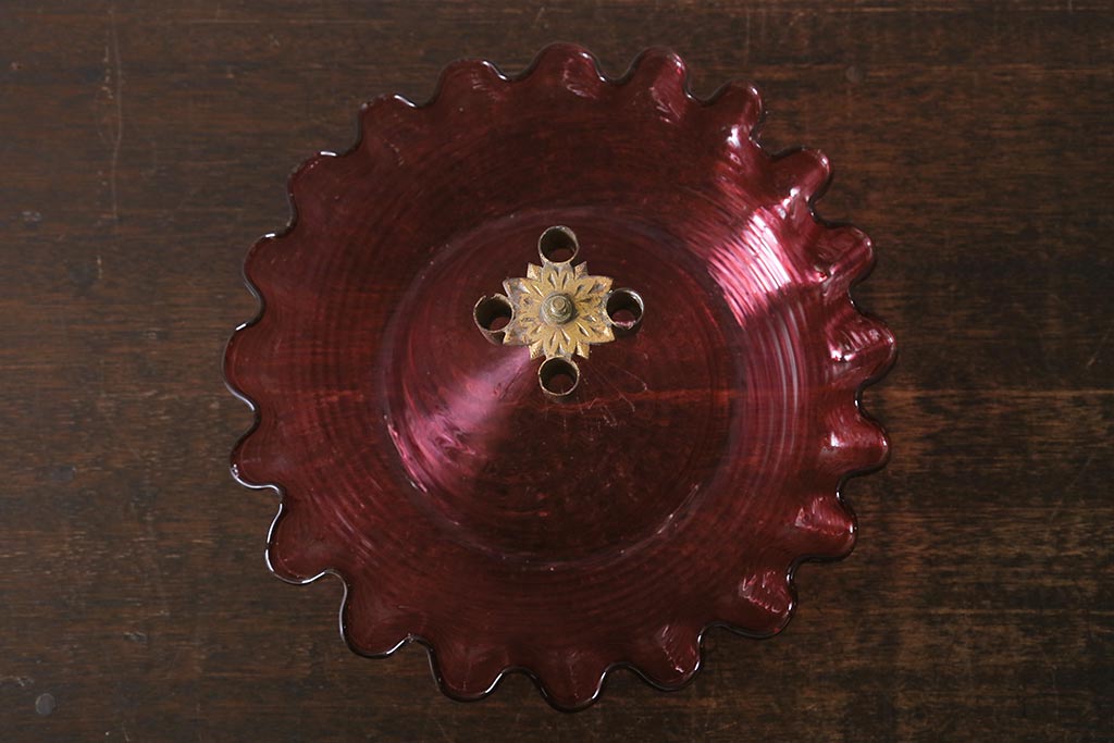 ラフジュ工房> 雑貨 > フランスアンティーク ビクトリア朝 glass Epergne ワセリンガラス 華やかなガラス製のセンターピース(テーブルウェア、オブジェ)(R-039549)