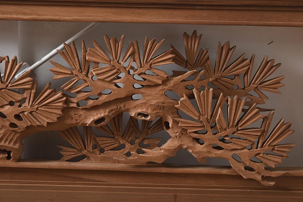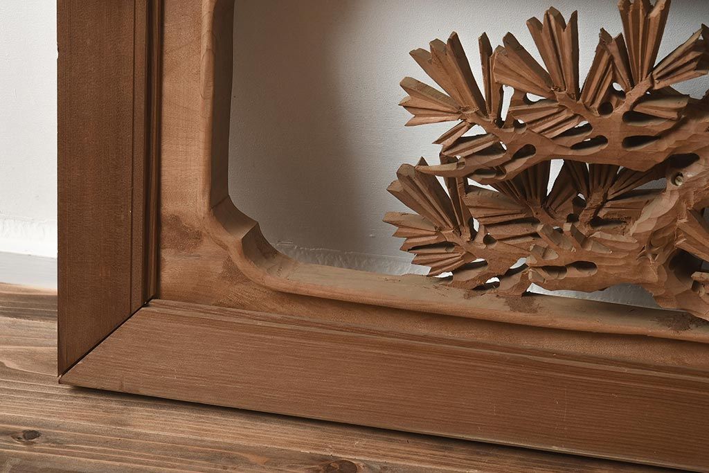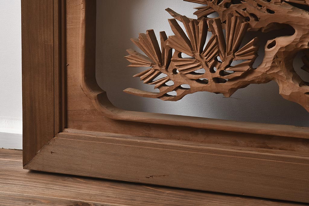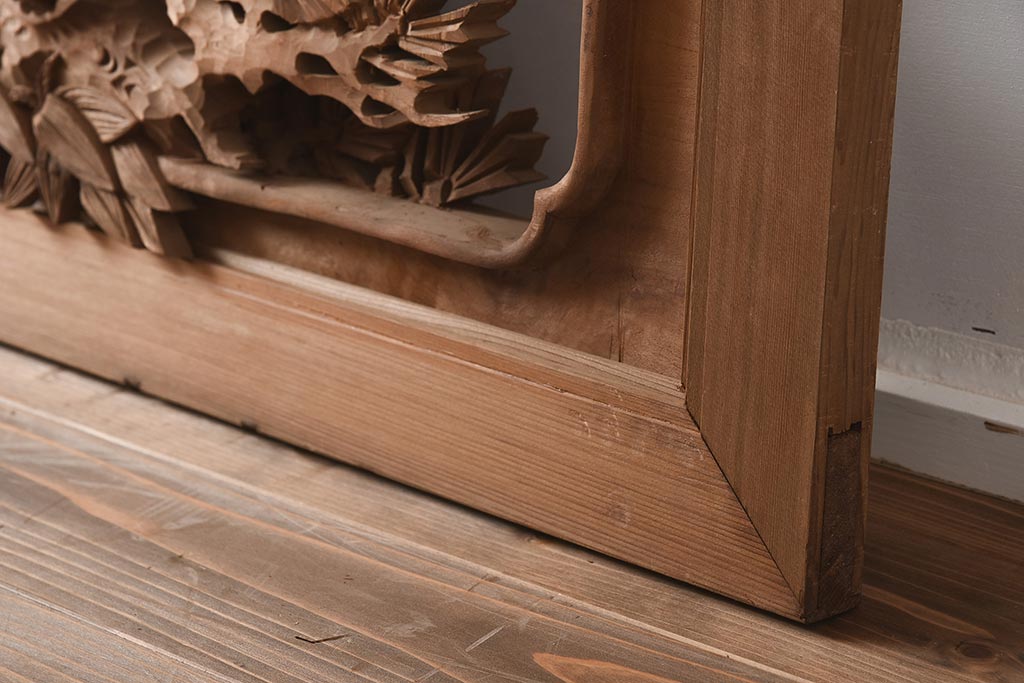 昭和中期につくられた欄間です。 特大サイズの存在感抜群のお品で、 立体的な松の彫りが 和の空間をぐっと引き立てます。 リフォームやリノベーションの際に取り付けるのはもちろん、 壁掛け飾りとして取り入れれば 美術品のようで迫力満点! 店舗の雰囲気づくりにいかがでしょうか。 ■框サイズ 上70mm/左60mm/右60mm/下65mm