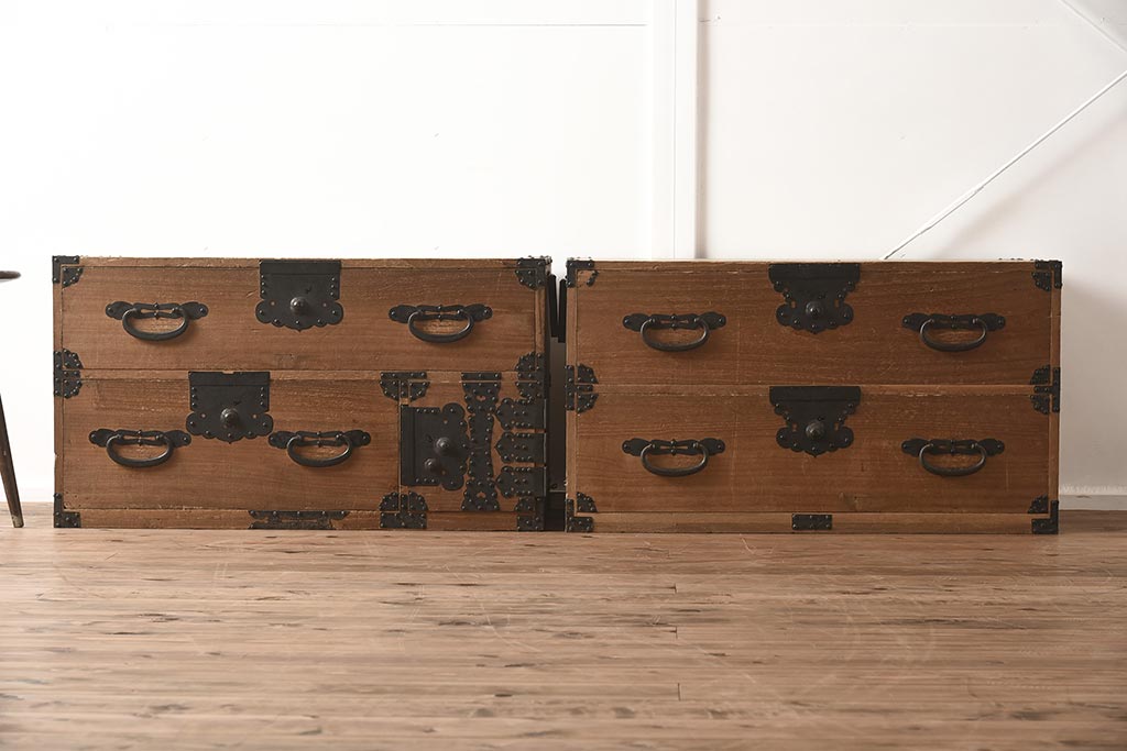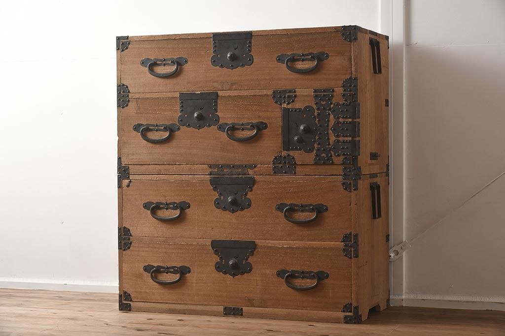 和箪笥> 衣装箪笥 > アンティーク家具 和製アンティーク 明治期 桐材 木味が魅力の和レトロな重ね箪笥(時代箪笥、テレビ台、ローボード、桐箪笥、桐たんす)(R-040018)