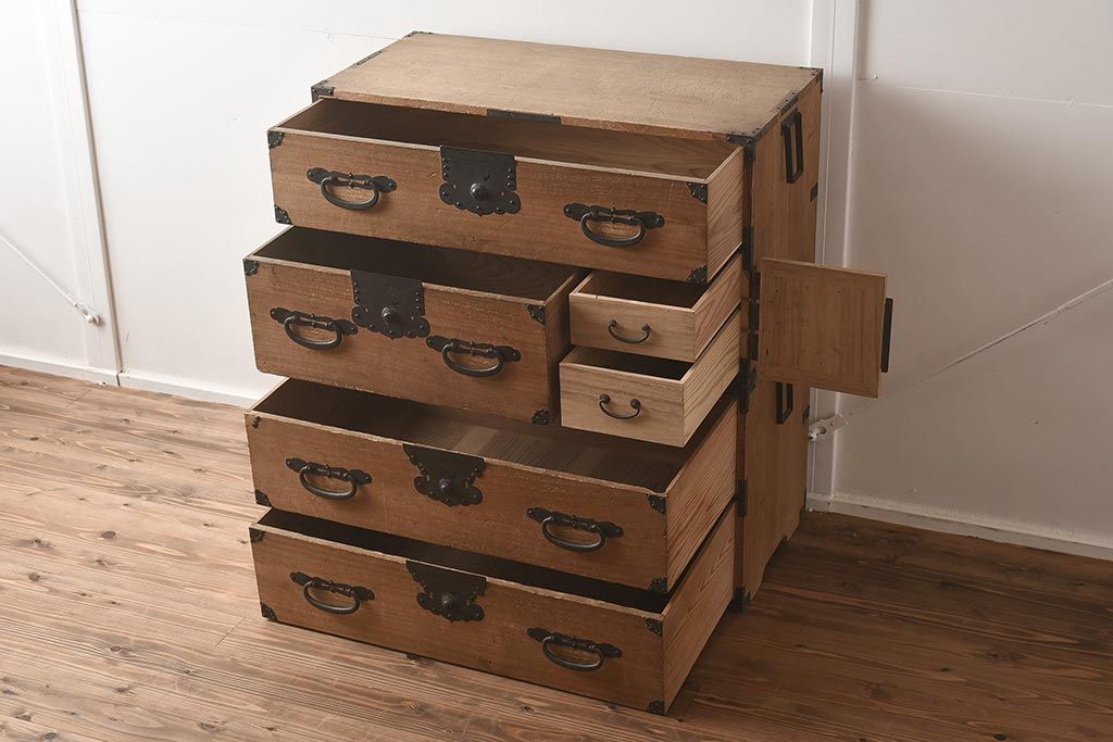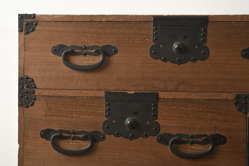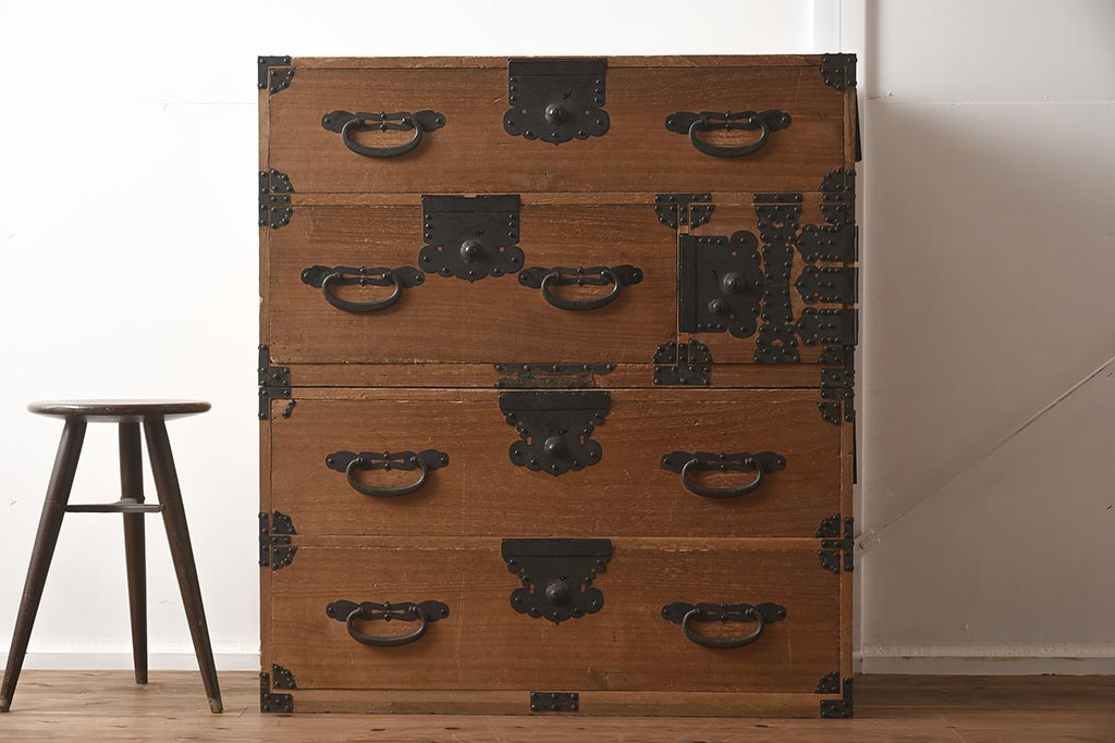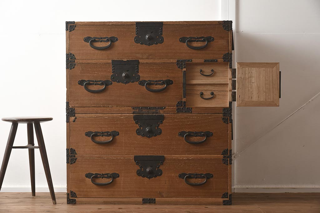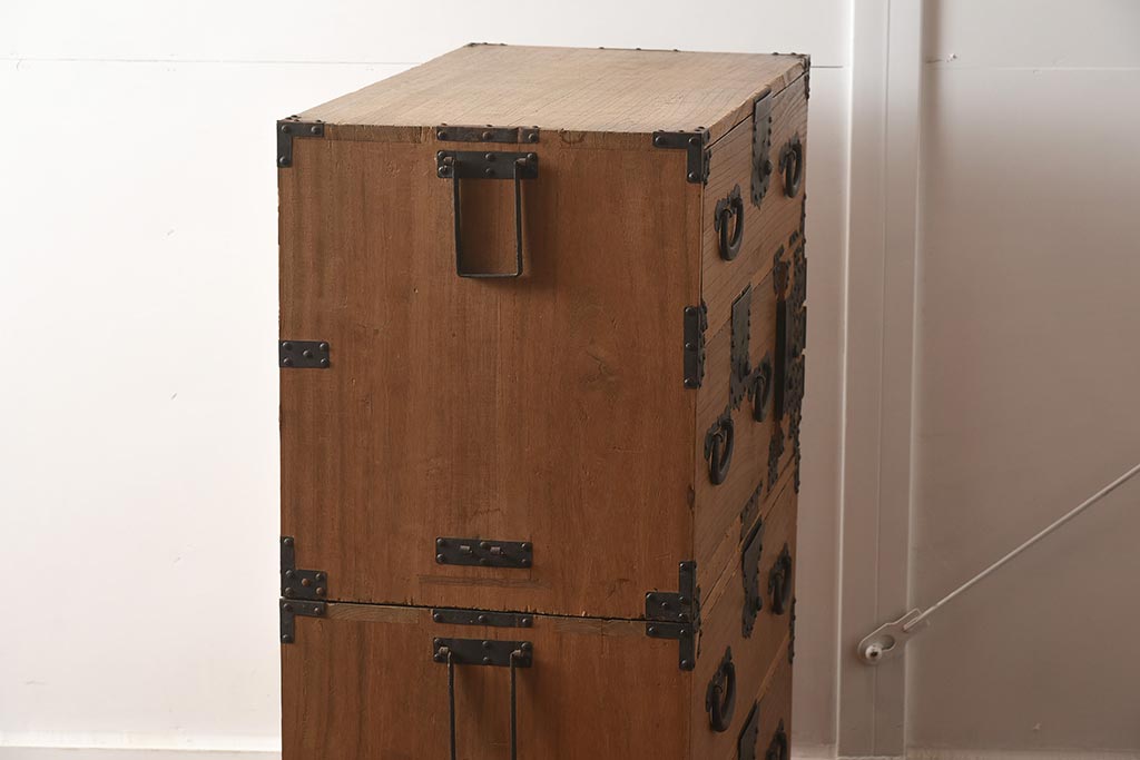 和箪笥 > アンティーク家具 和製アンティーク 明治期 桐材 木味が魅力の和レトロな重ね箪笥(時代箪笥、テレビ台、ローボード、桐箪笥、桐たんす)(R-040018)