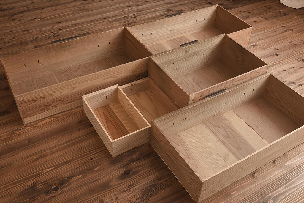 ・引き出し・引き戸・扉等の可動部分は調整してありますが、無垢材の特性として、湿度や気温などの変化によりきつくなったり緩くなったりする場合がございますので、ご理解の上お願いします。