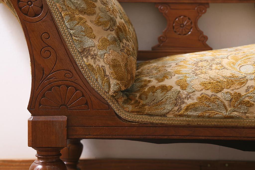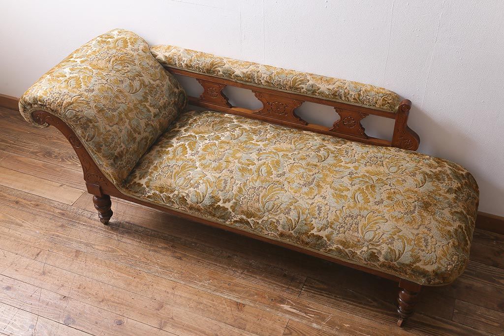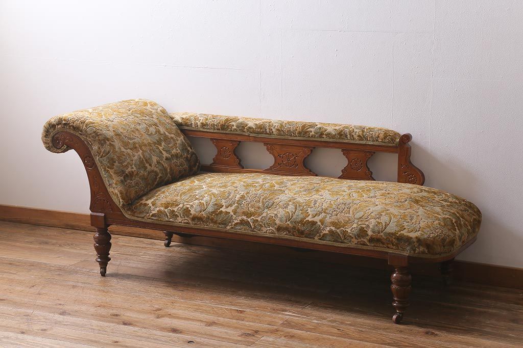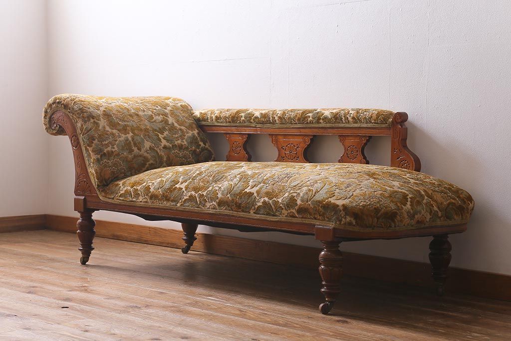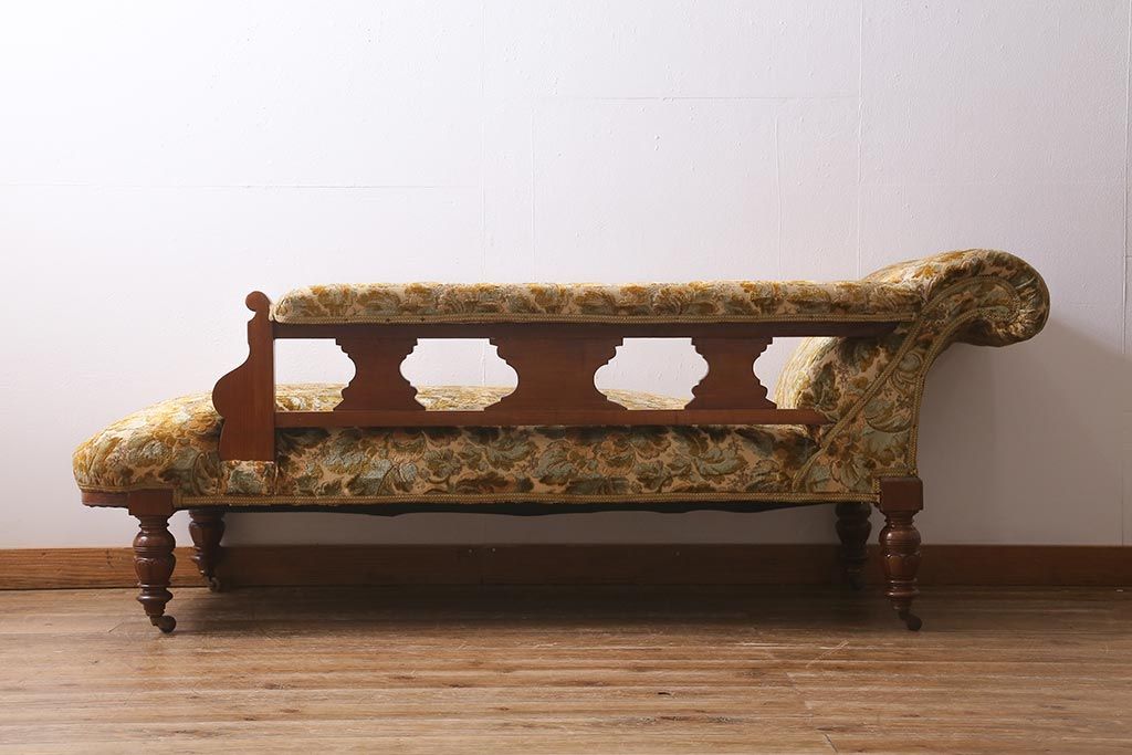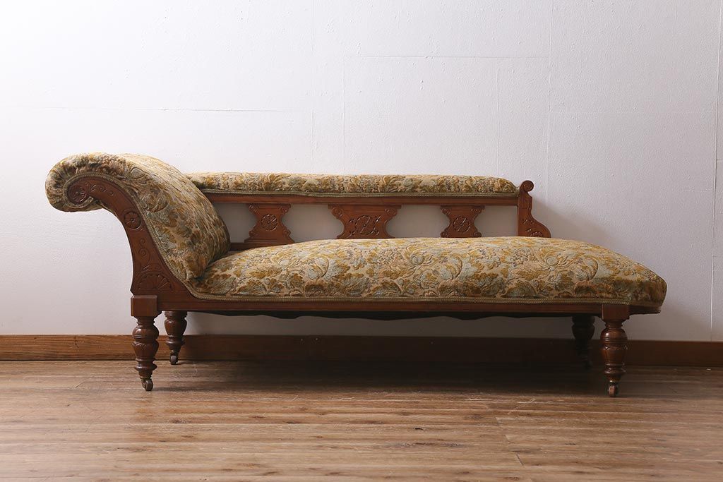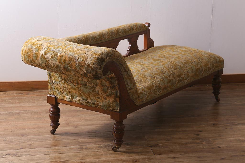ソファ> 2人掛けソファ > アンティーク家具 イギリスアンティーク マホガニー キャスター付きの上品なシェーズロング(長椅子、ソファ、カウチソファ)(R-040025)