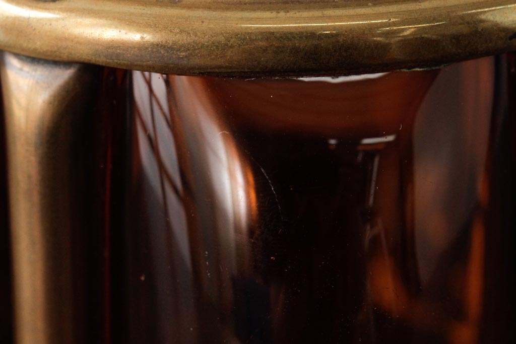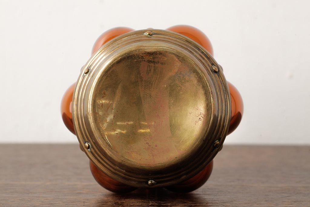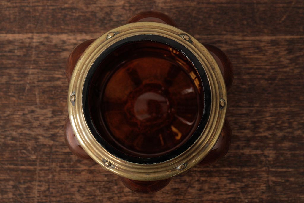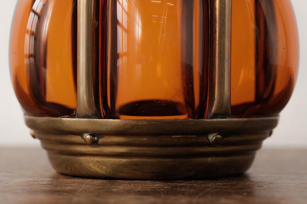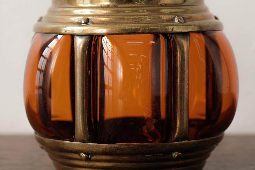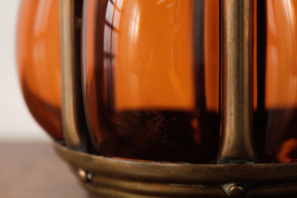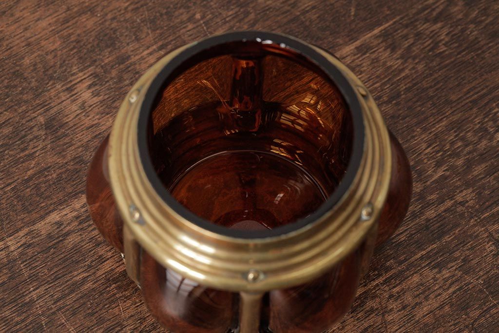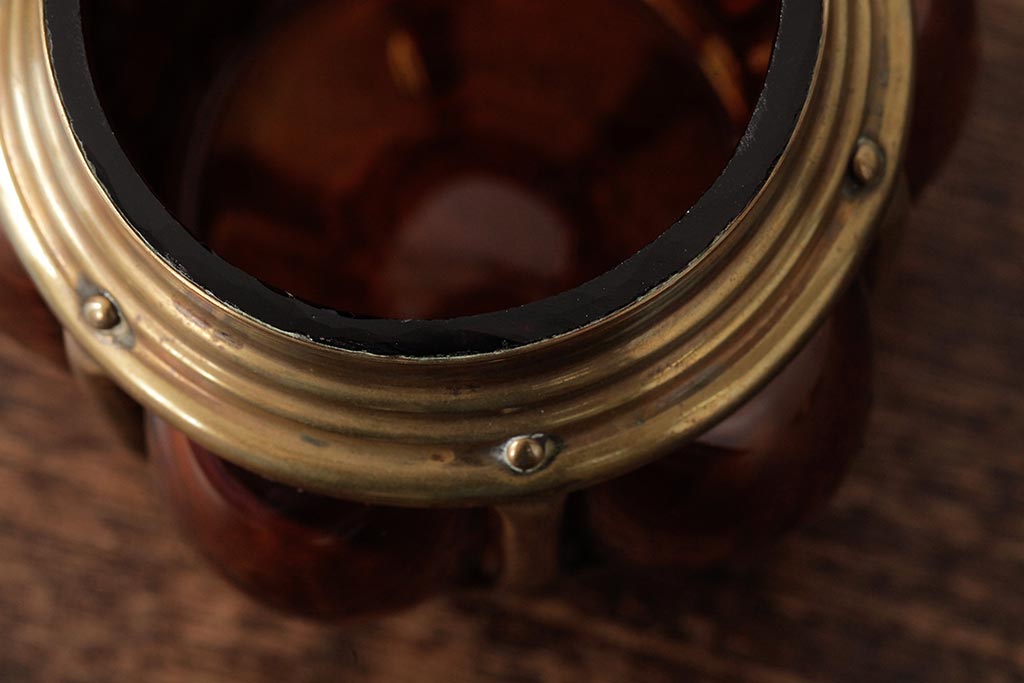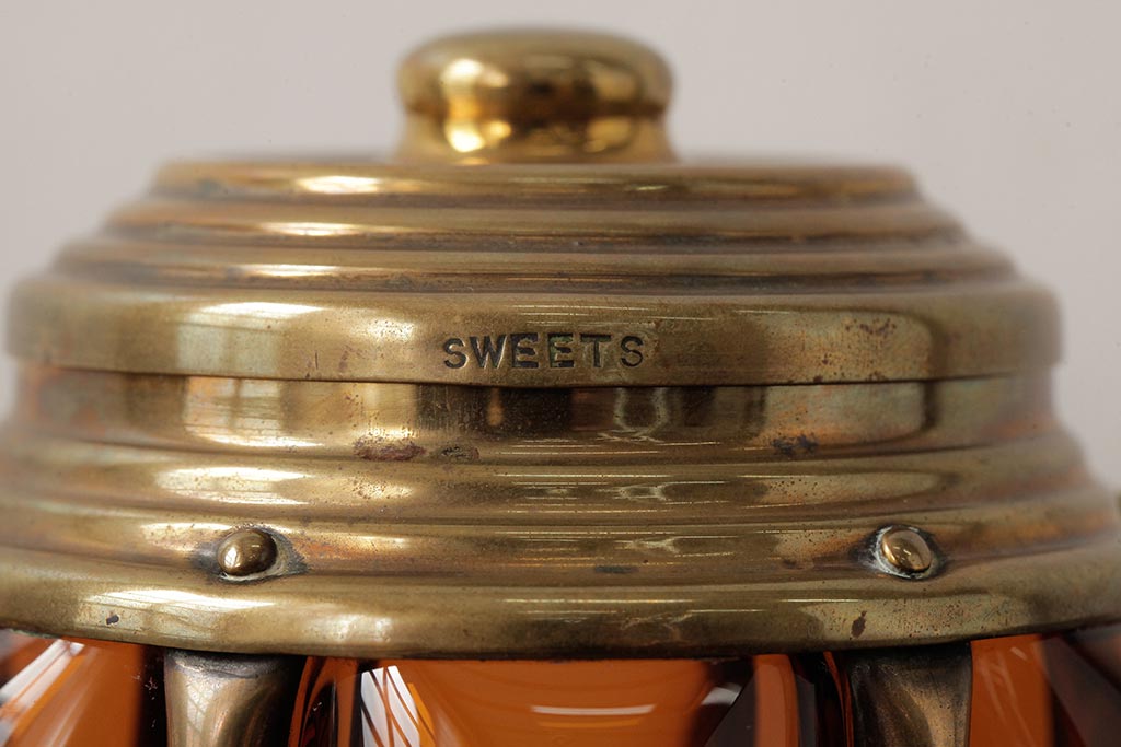 アンティーク雑貨 アメリカビンテージ オレンジのガラスが目を引くキャンディポット(蓋付き器、小物入れ)(R-039323)