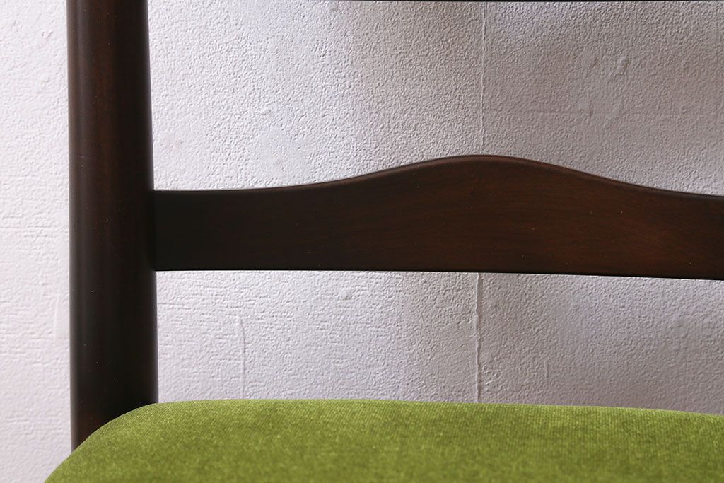 椅子・ベンチ> ダイニングチェア > 中古 松本民芸家具 グリーンのファブリックが上品な印象のA型布張ラダーバックチェア(ダイニングチェア、椅子)(R-040003)