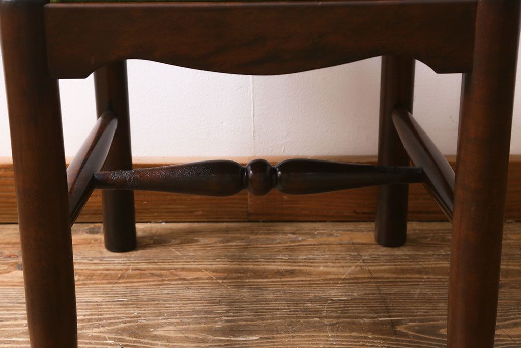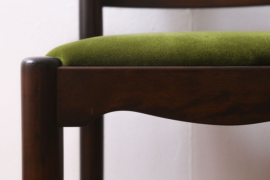 民芸家具 > 中古 松本民芸家具 グリーンのファブリックが上品な印象のA型布張ラダーバックチェア(ダイニングチェア、椅子)(R-040003)