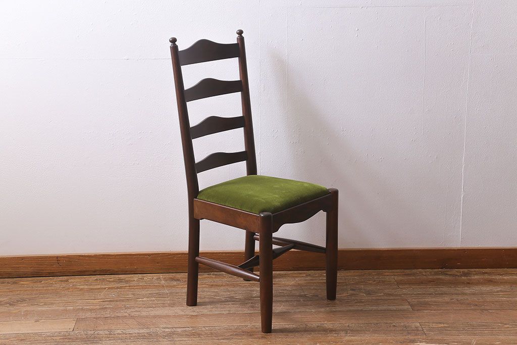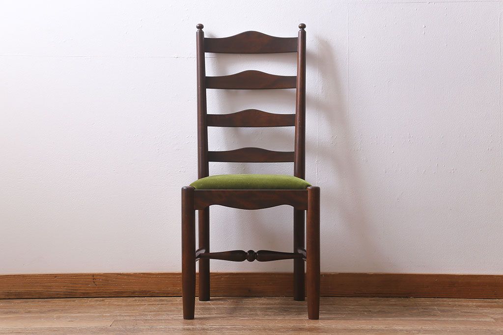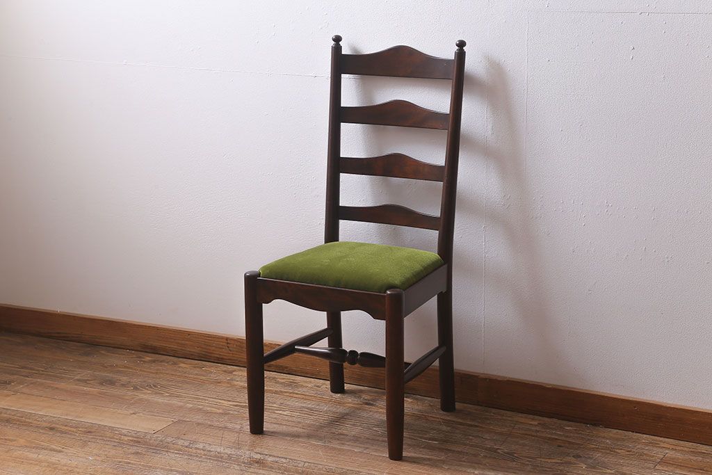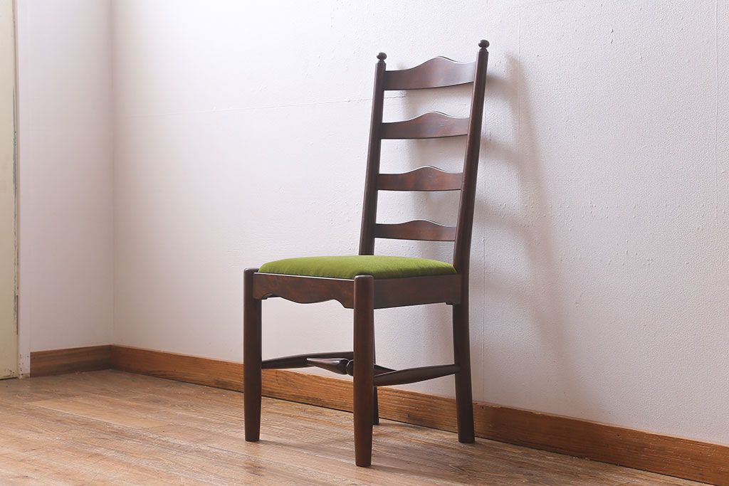 中古 松本民芸家具 グリーンのファブリックが上品な印象のA型布張ラダーバックチェア(ダイニングチェア、椅子)(R-040005)です。