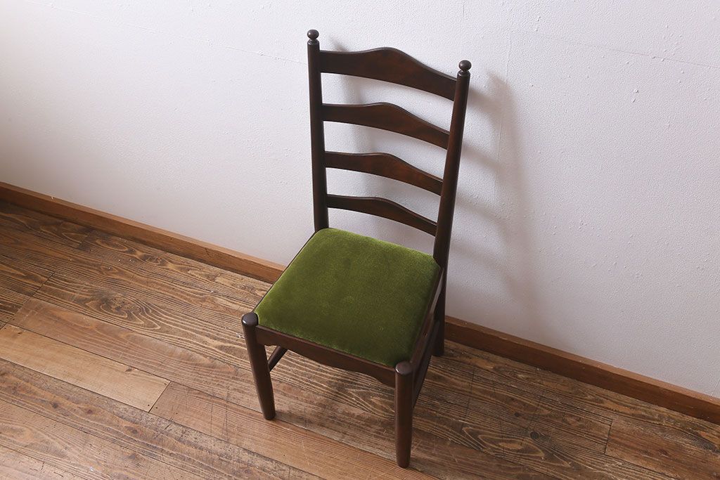 中古 松本民芸家具 グリーンのファブリックが上品な印象のA型布張ラダーバックチェア(ダイニングチェア、椅子)(R-040005)