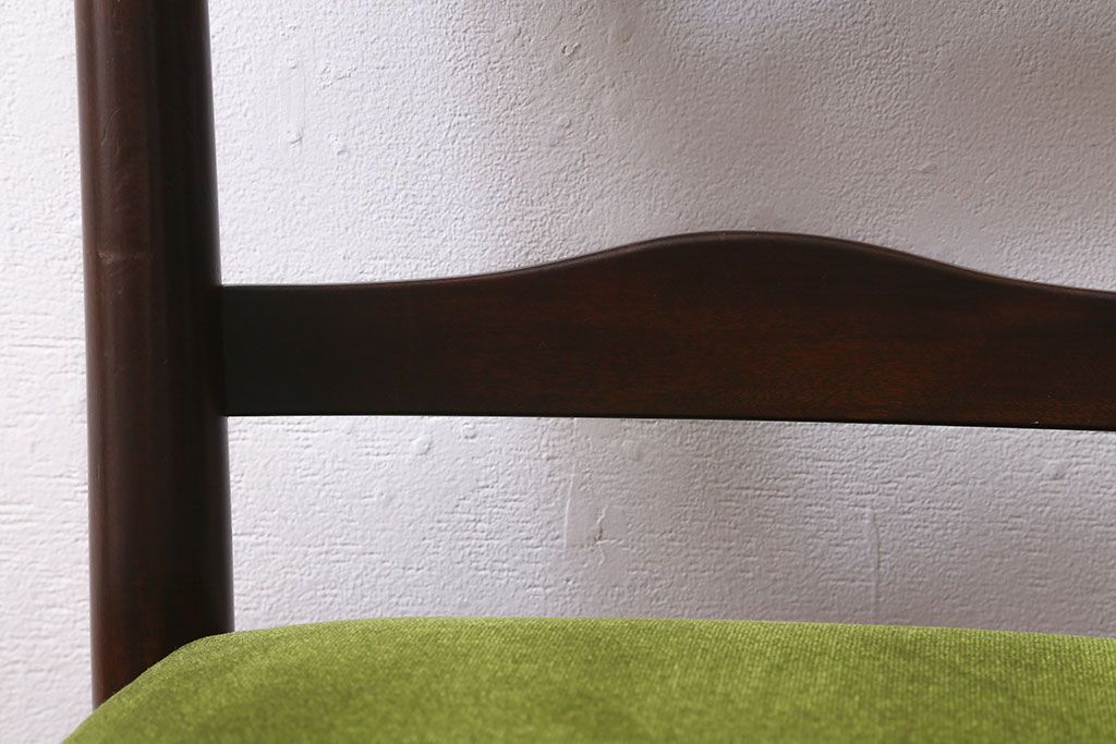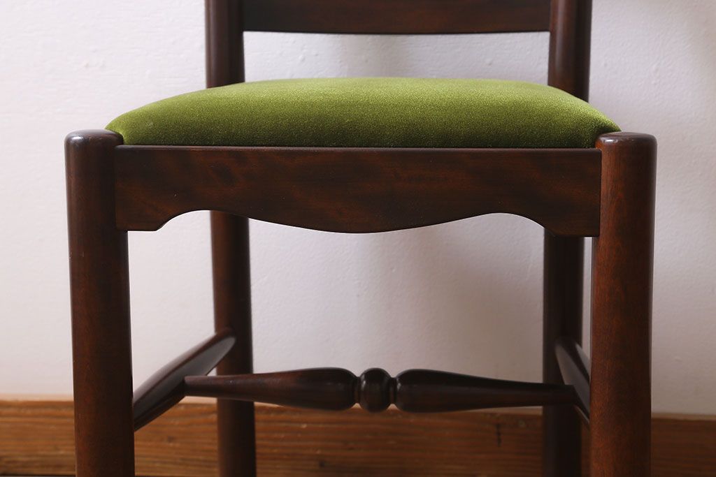 椅子・ベンチ> ダイニングチェア > 中古 松本民芸家具 グリーンのファブリックが上品な印象のA型布張ラダーバックチェア(ダイニングチェア、椅子)(R-040005)