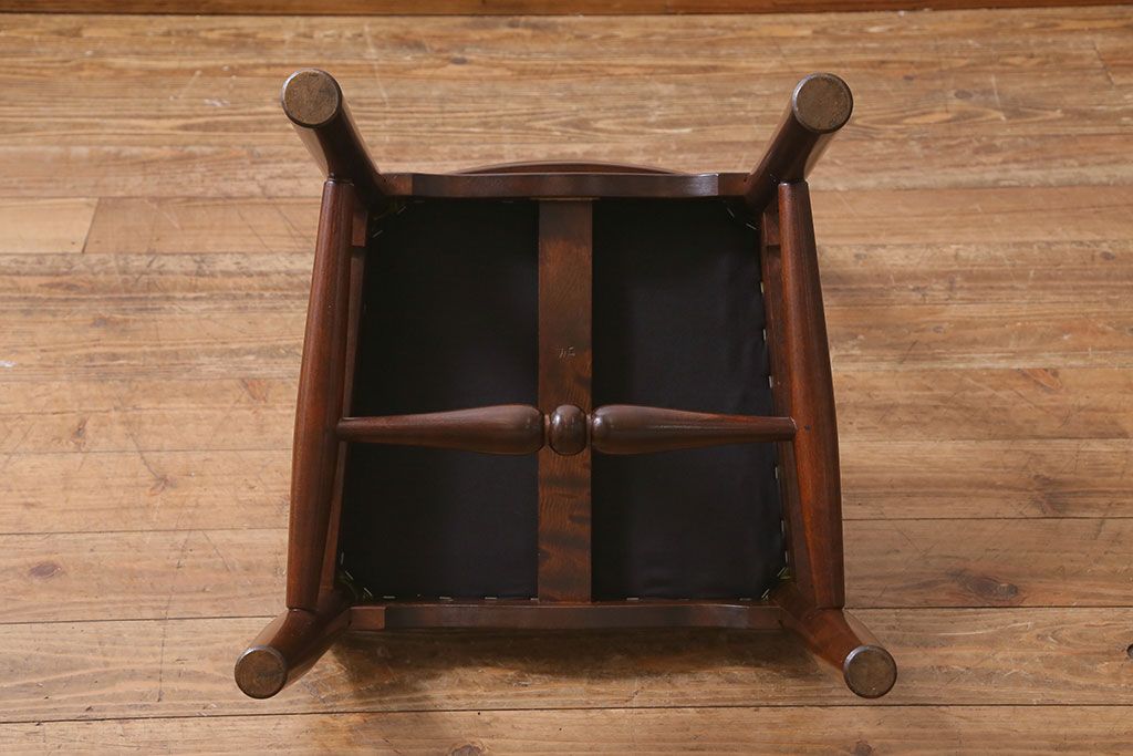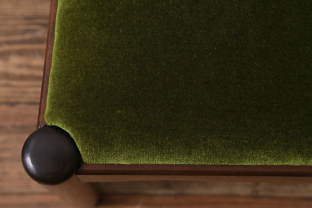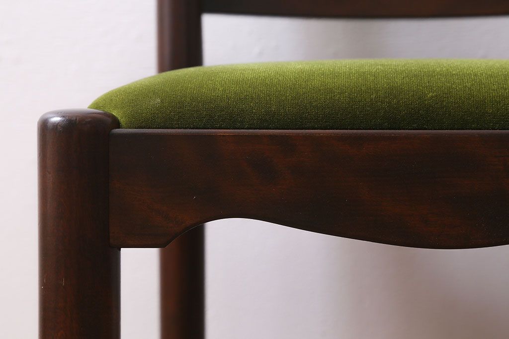 民芸家具 > 中古 松本民芸家具 グリーンのファブリックが上品な印象のA型布張ラダーバックチェア(ダイニングチェア、椅子)(R-040005)