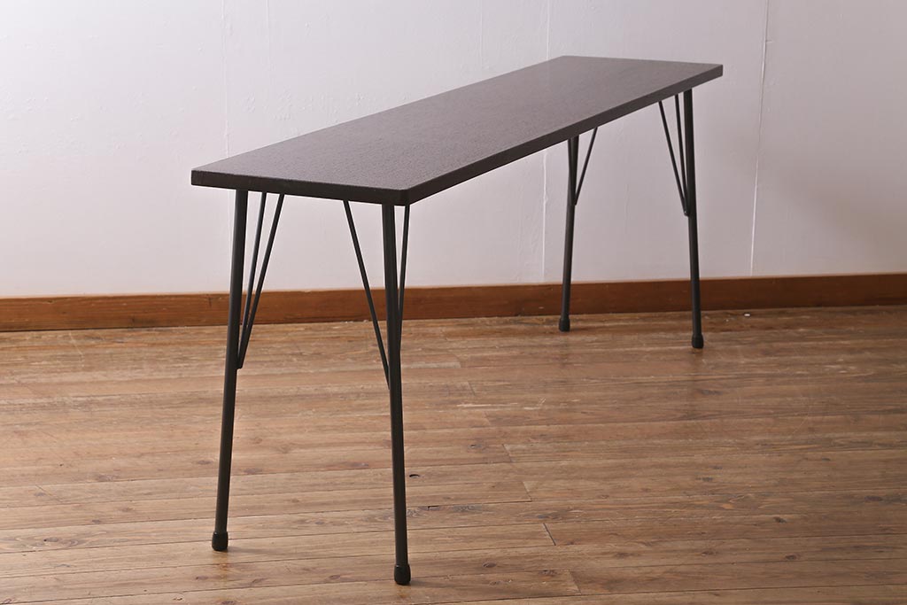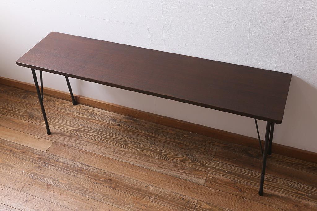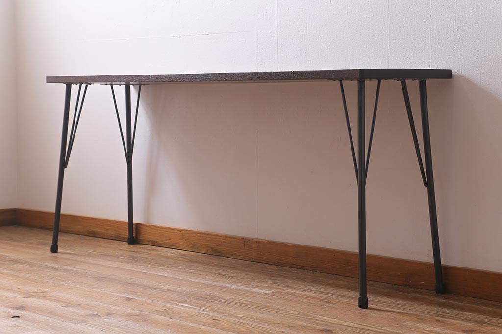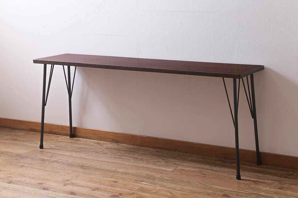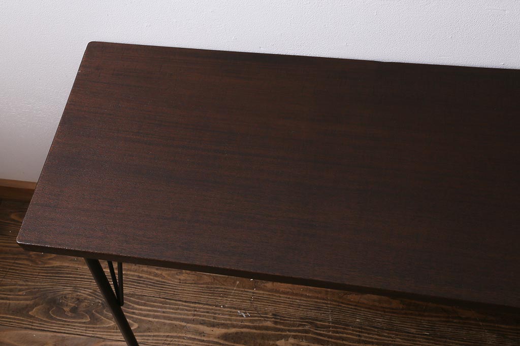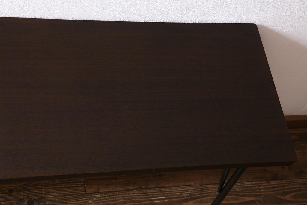 アンティーク家具 古材一枚板リメイク ラワン材を活かしたシンプルな鉄脚テーブル(コンソールテーブル、作業台)(R-039977)
