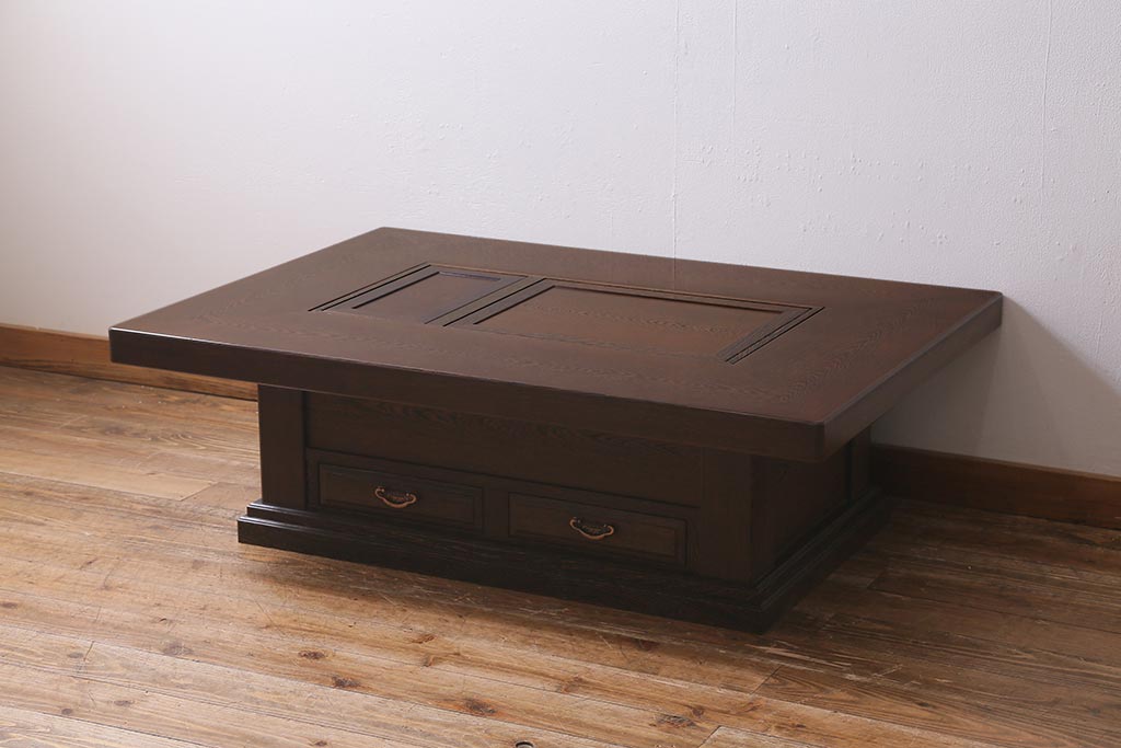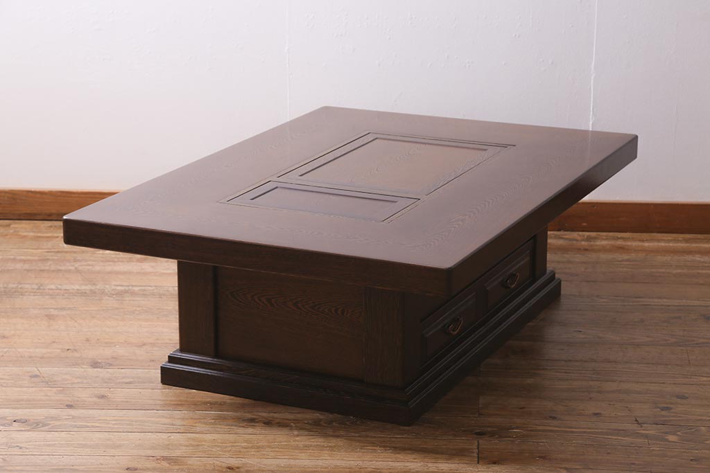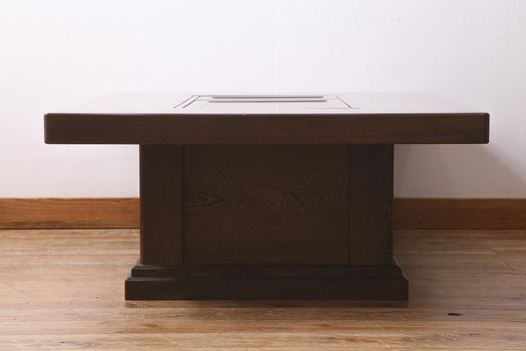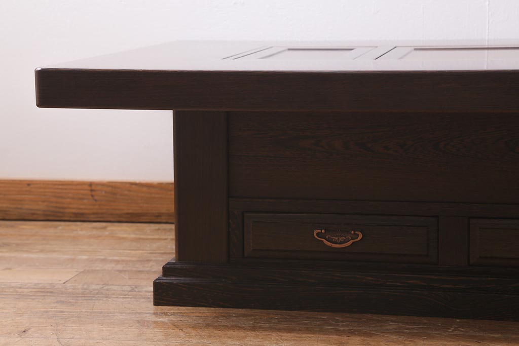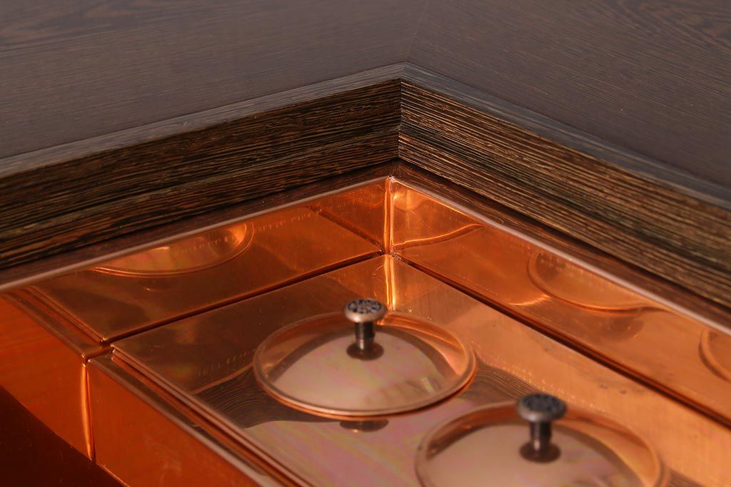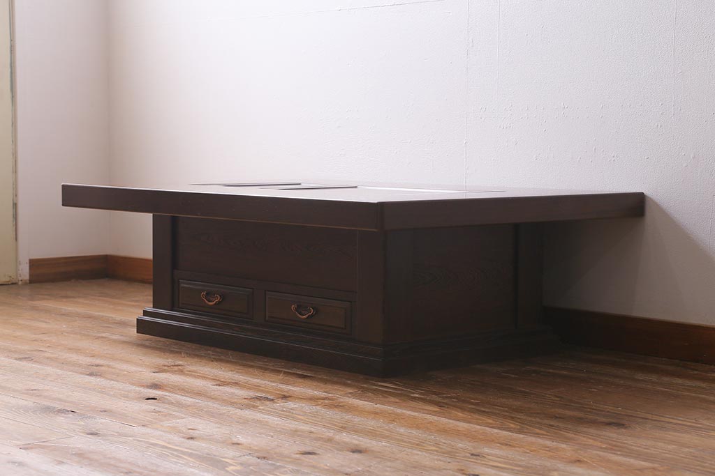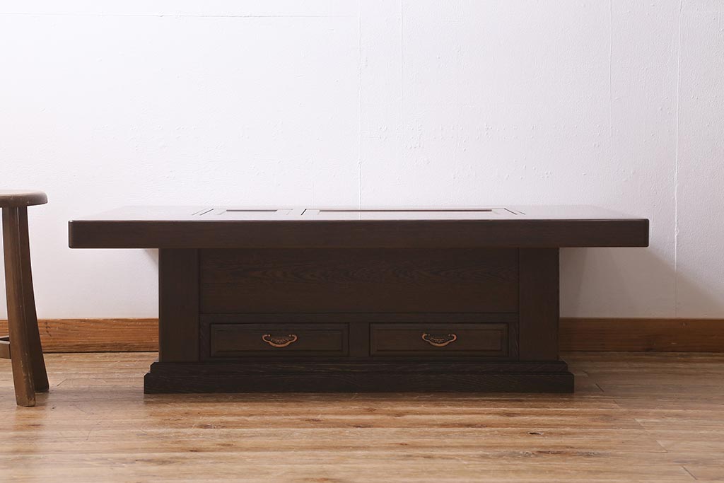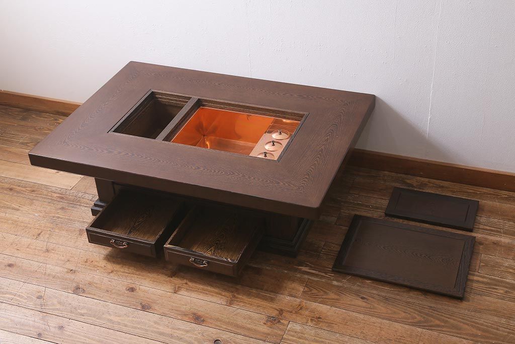 テーブル> 座卓 > 中古 最高級品 鉄刀木(タガヤサン)無垢材 内部が銅製の関西火鉢(ローテーブル、長火鉢、座卓、リビングテーブル、囲炉裏)(R-039981)