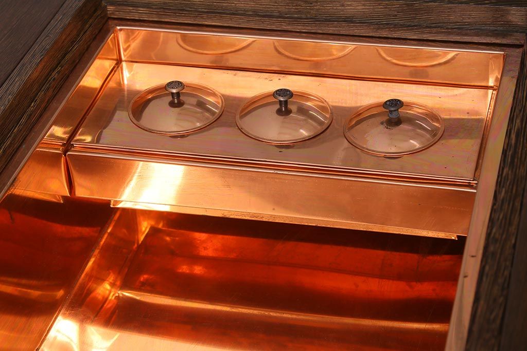 火鉢> 長火鉢 > 中古 最高級品 鉄刀木(タガヤサン)無垢材 内部が銅製の関西火鉢(ローテーブル、長火鉢、座卓、リビングテーブル、囲炉裏)(R-039981)