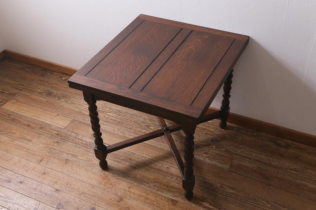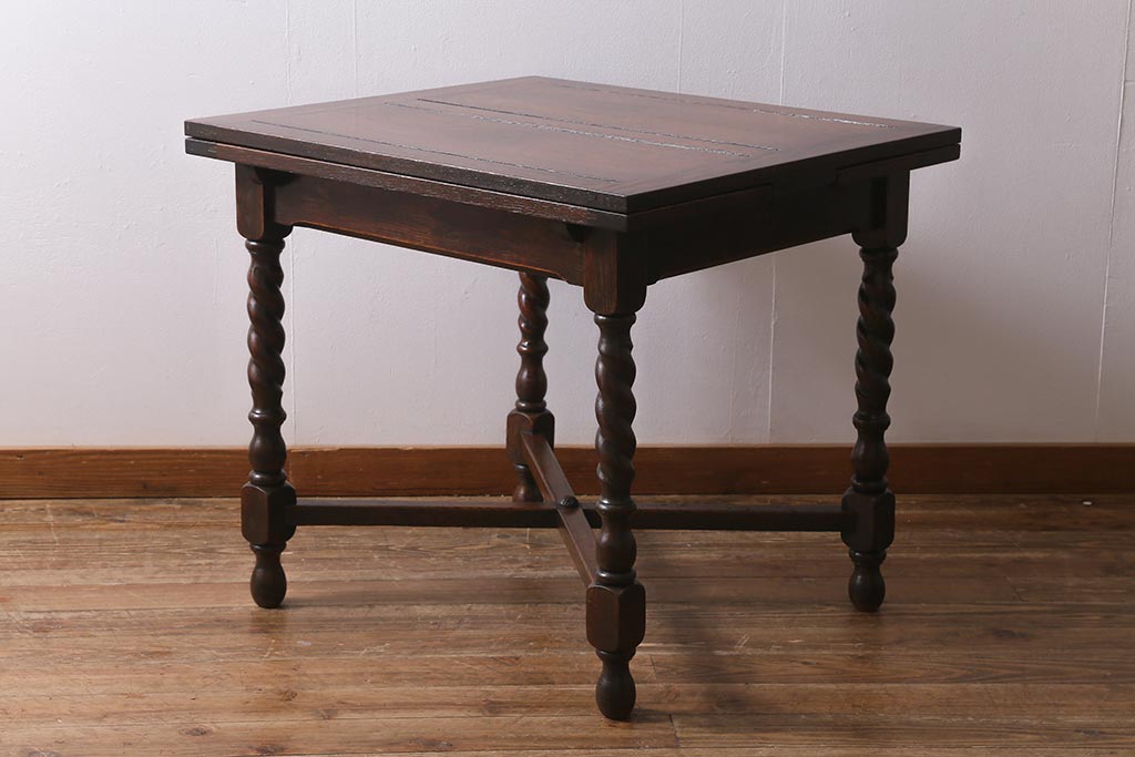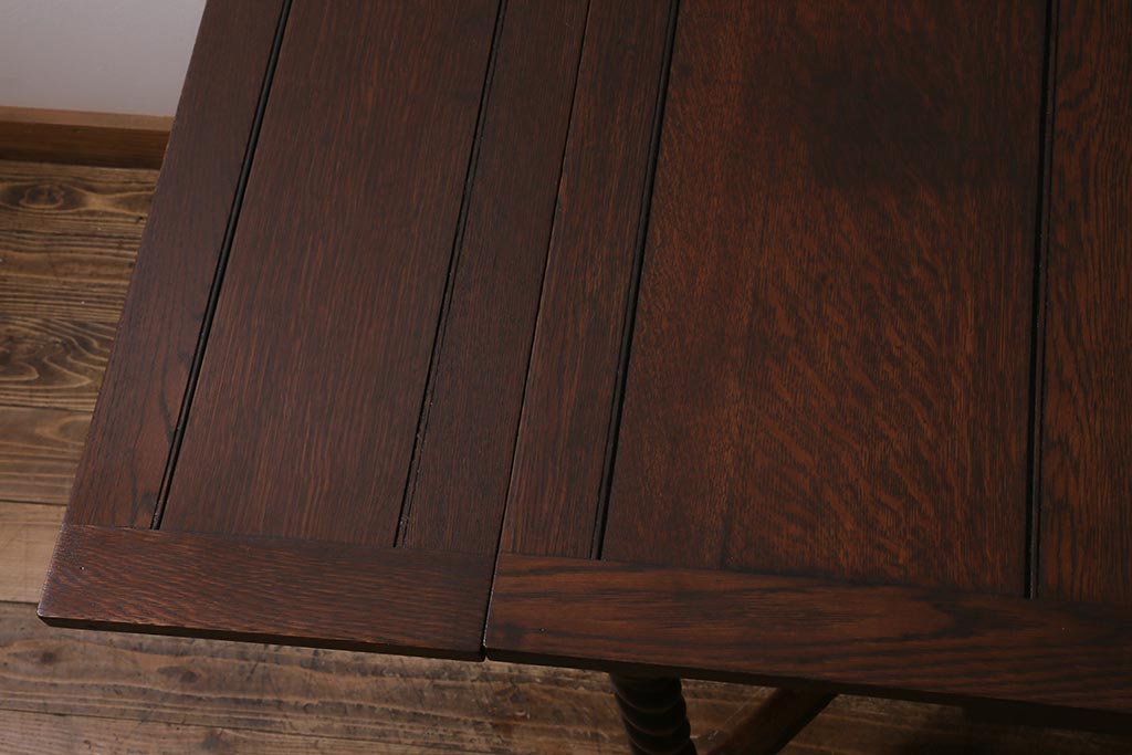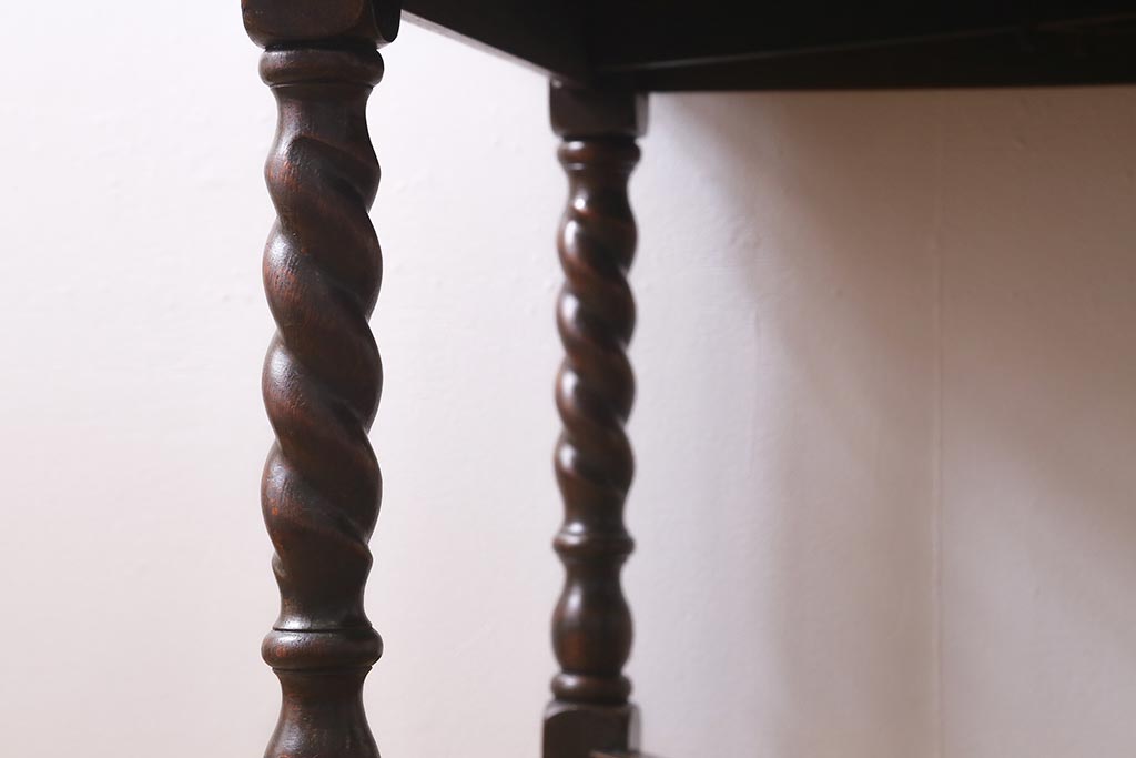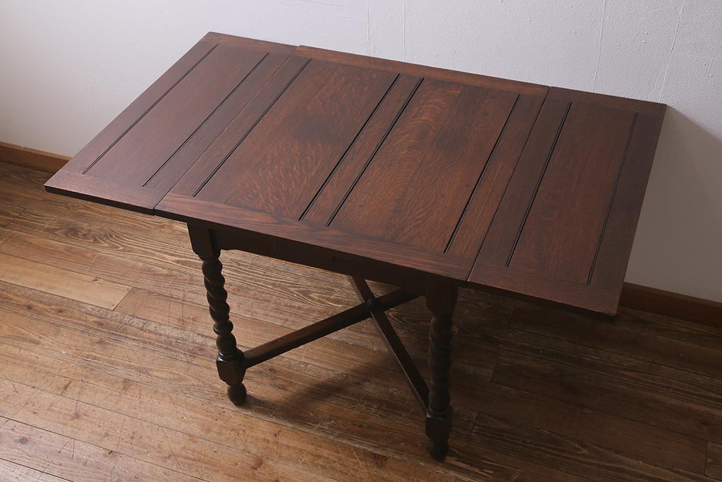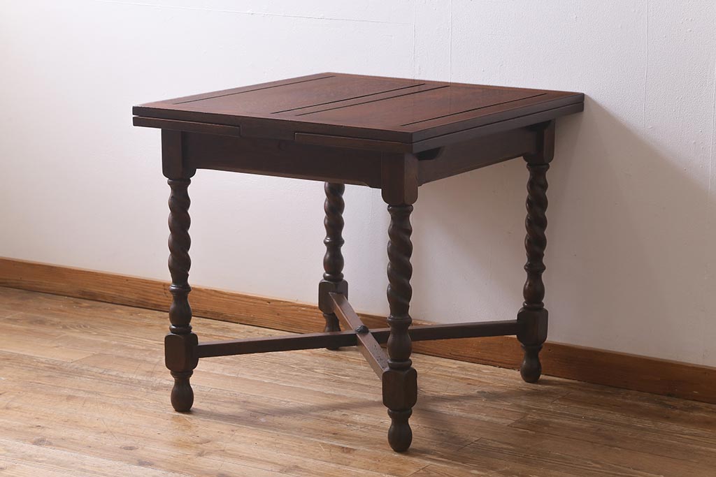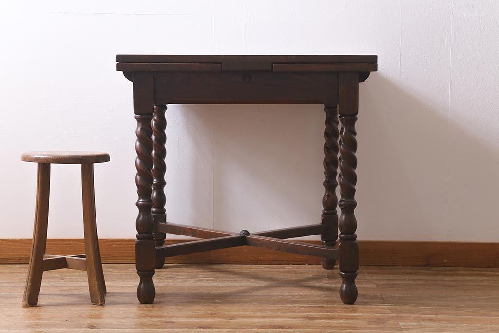 ラフジュ工房> テーブル> 2人用ダイニングテーブル > アンティーク家具 イギリスアンティーク オーク材 ツイストレッグのドローリーフテーブル(エクステンションテーブル、ダイニングテーブル)(R-040141)