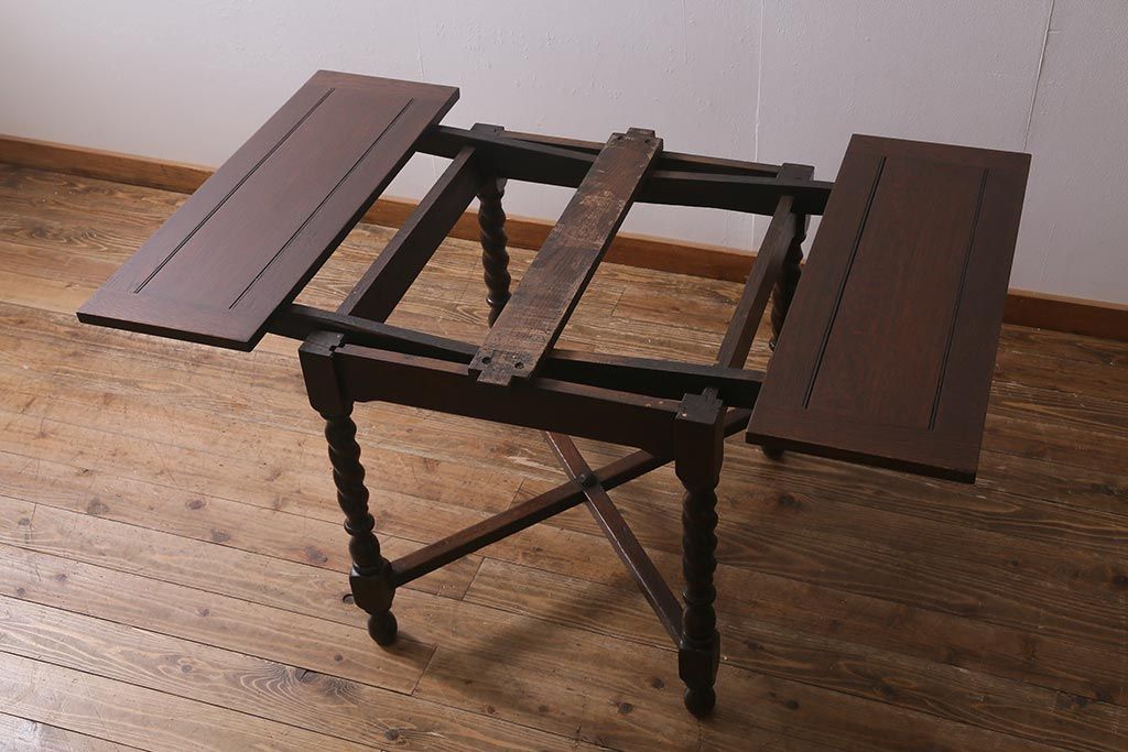 アンティーク家具 イギリスアンティーク オーク材 ツイストレッグのドローリーフテーブル(エクステンションテーブル、ダイニングテーブル)(R-040141)