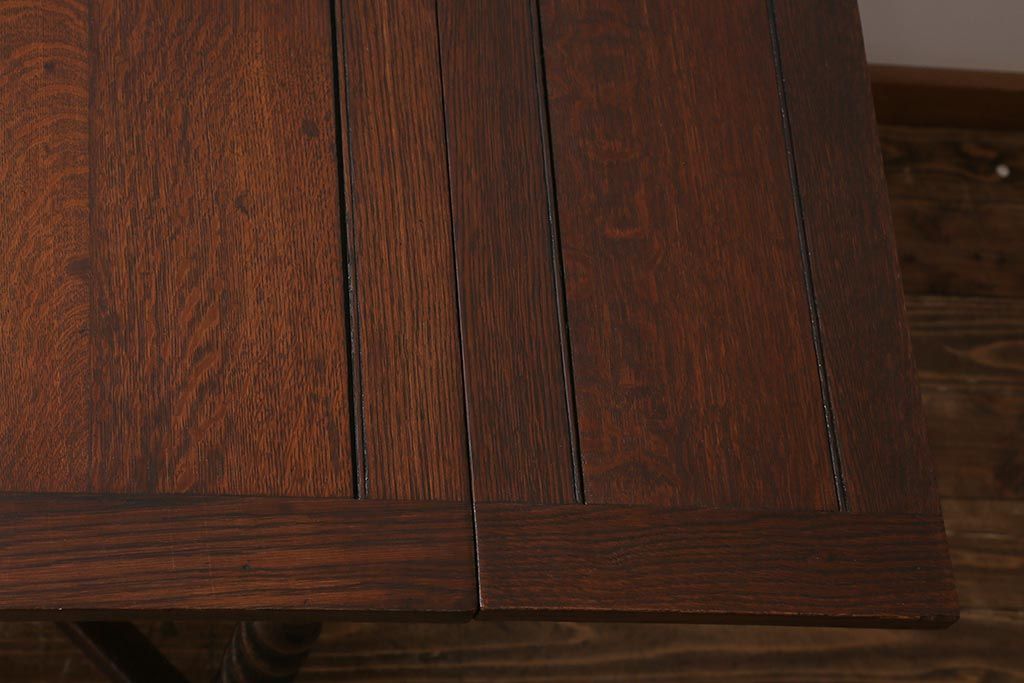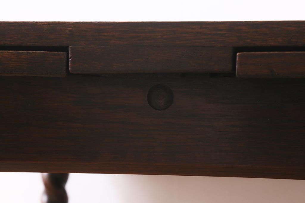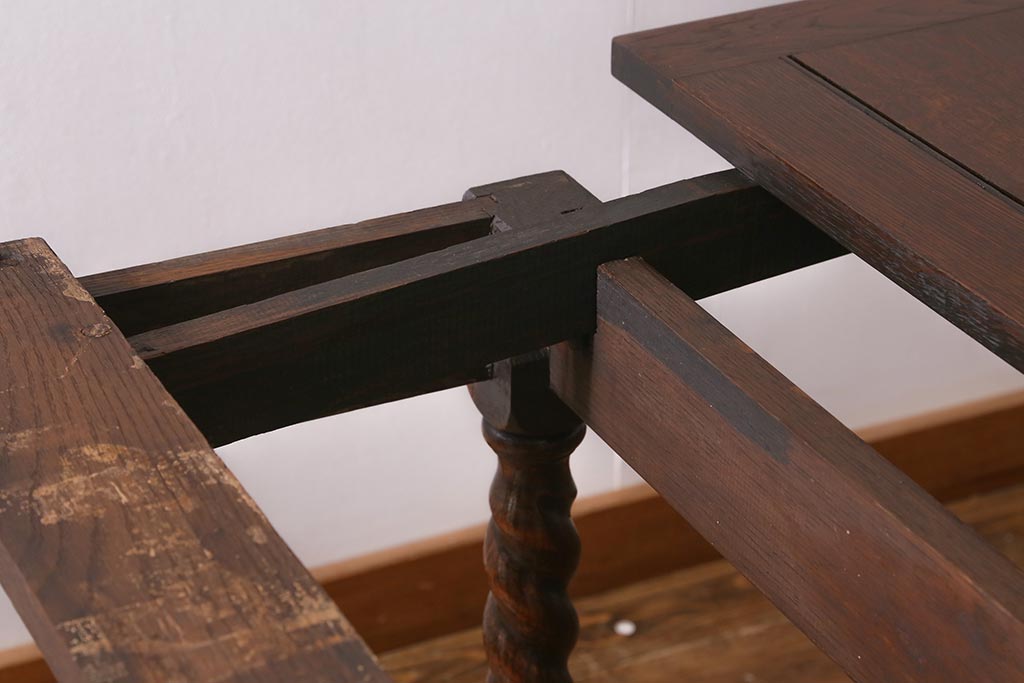 ラフジュ工房> テーブル> エクステンションテーブル > アンティーク家具 イギリスアンティーク オーク材 ツイストレッグのドローリーフテーブル(エクステンションテーブル、ダイニングテーブル)(R-040141)