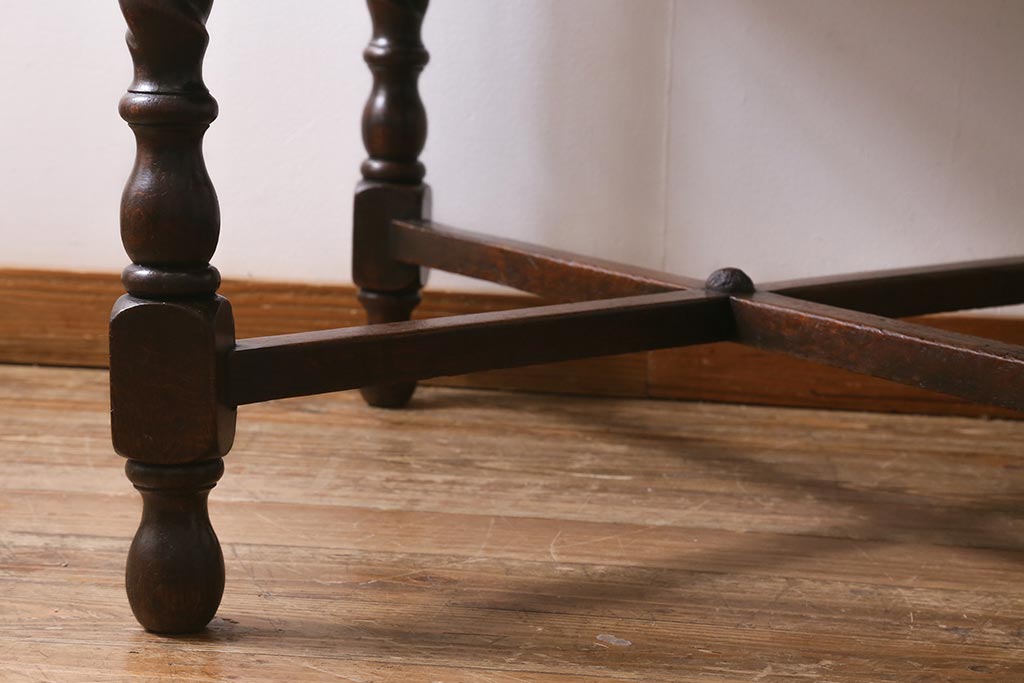 ラフジュ工房> テーブル> 4人用ダイニングテーブル > アンティーク家具 イギリスアンティーク オーク材 ツイストレッグのドローリーフテーブル(エクステンションテーブル、ダイニングテーブル)(R-040141)