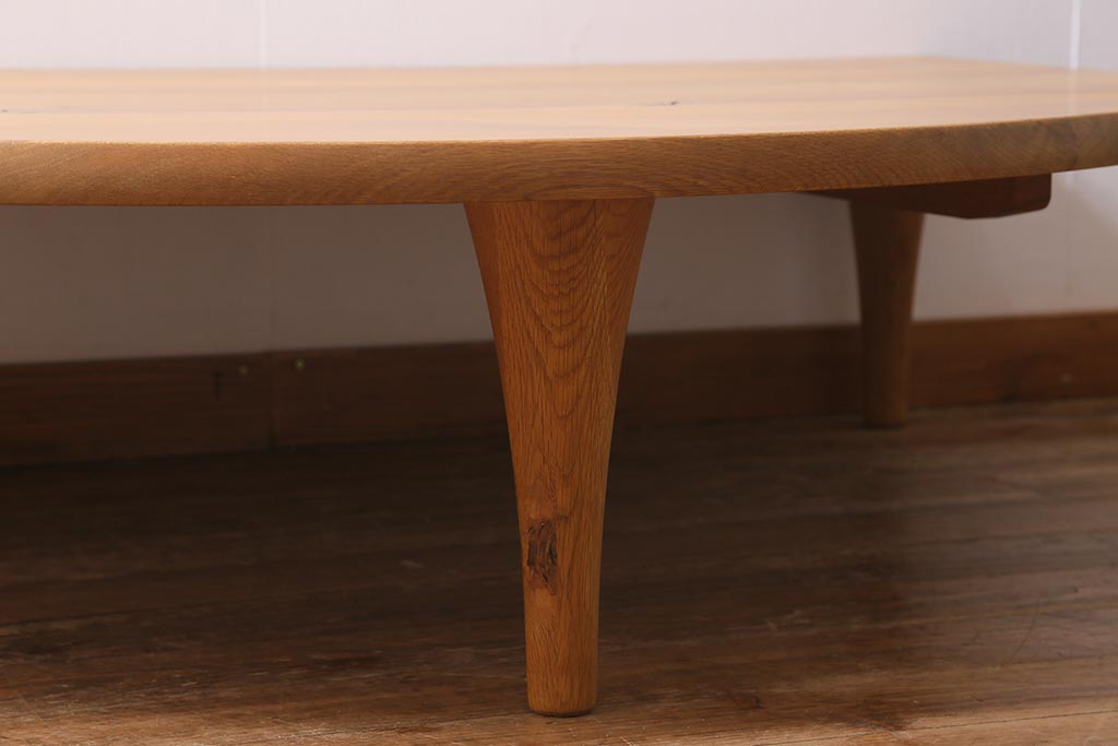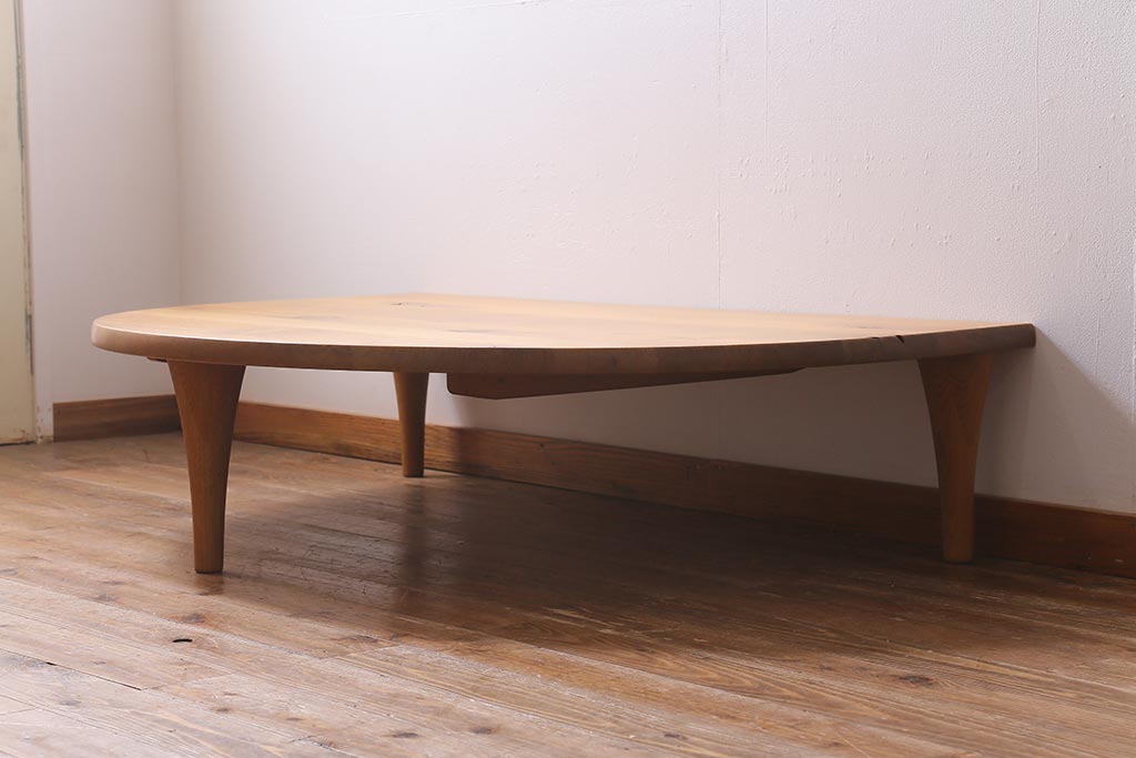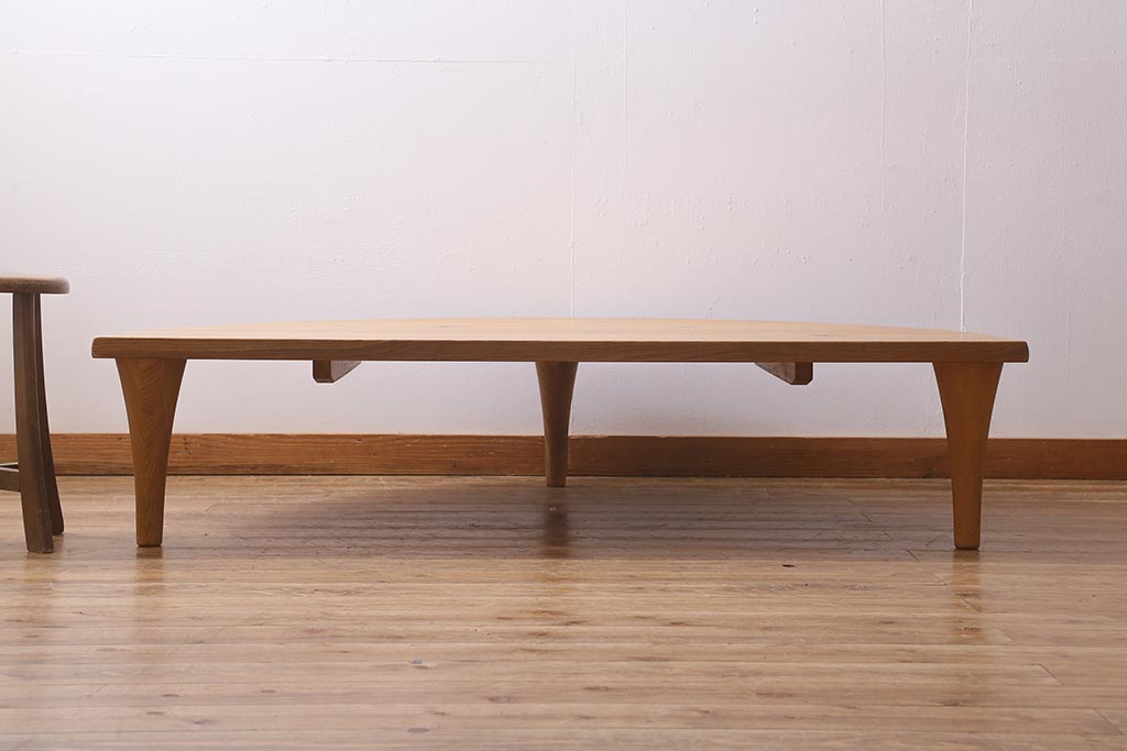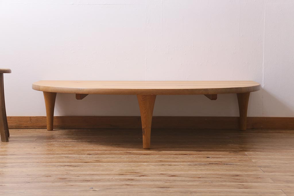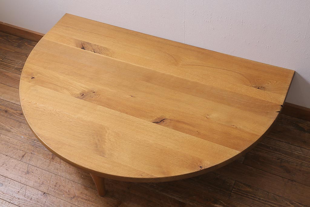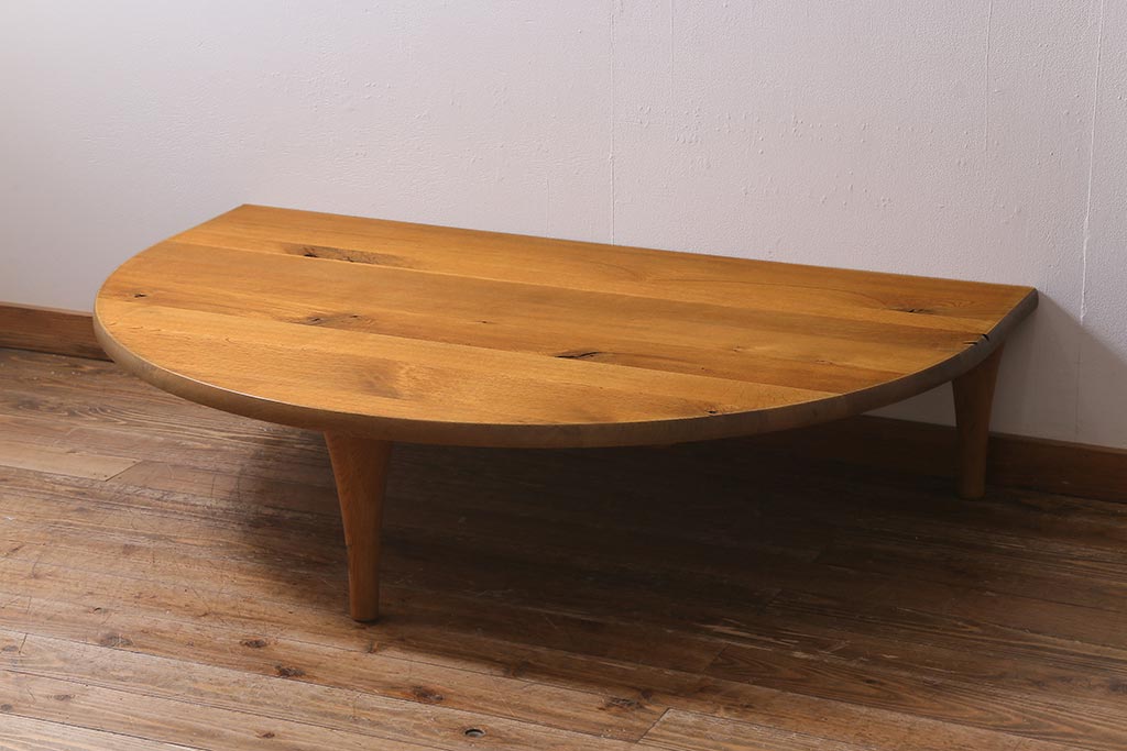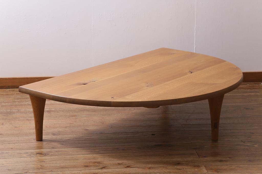 中古 飛騨産業 キツツキ 森のことば SN105RT 半円形リビングテーブル(センターテーブル、ローテーブル)(定価約15万6千円)(R-040157)