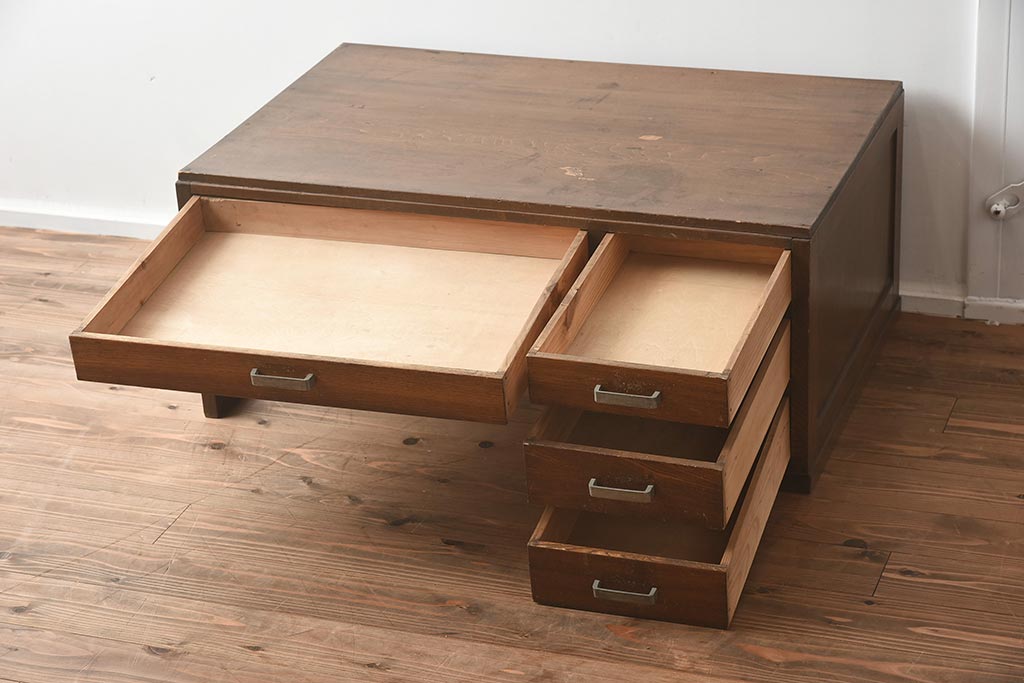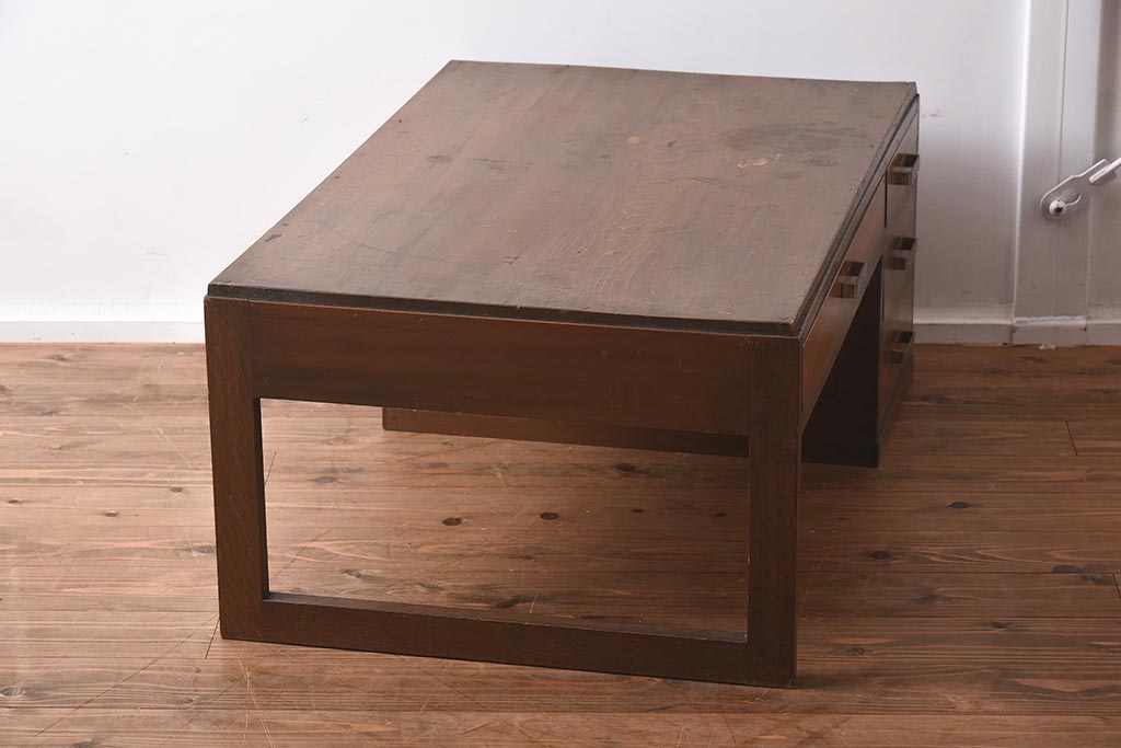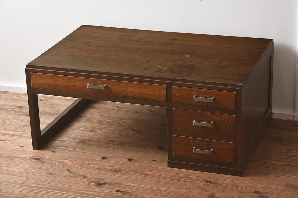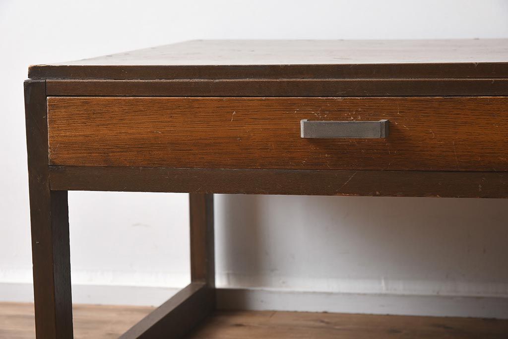 デスク> 片袖机・両袖机 > アンティーク家具 昭和中期 年月を重ねた渋みのある木肌が魅力の文机(座机、片袖机、ローテーブル)(R-040103)