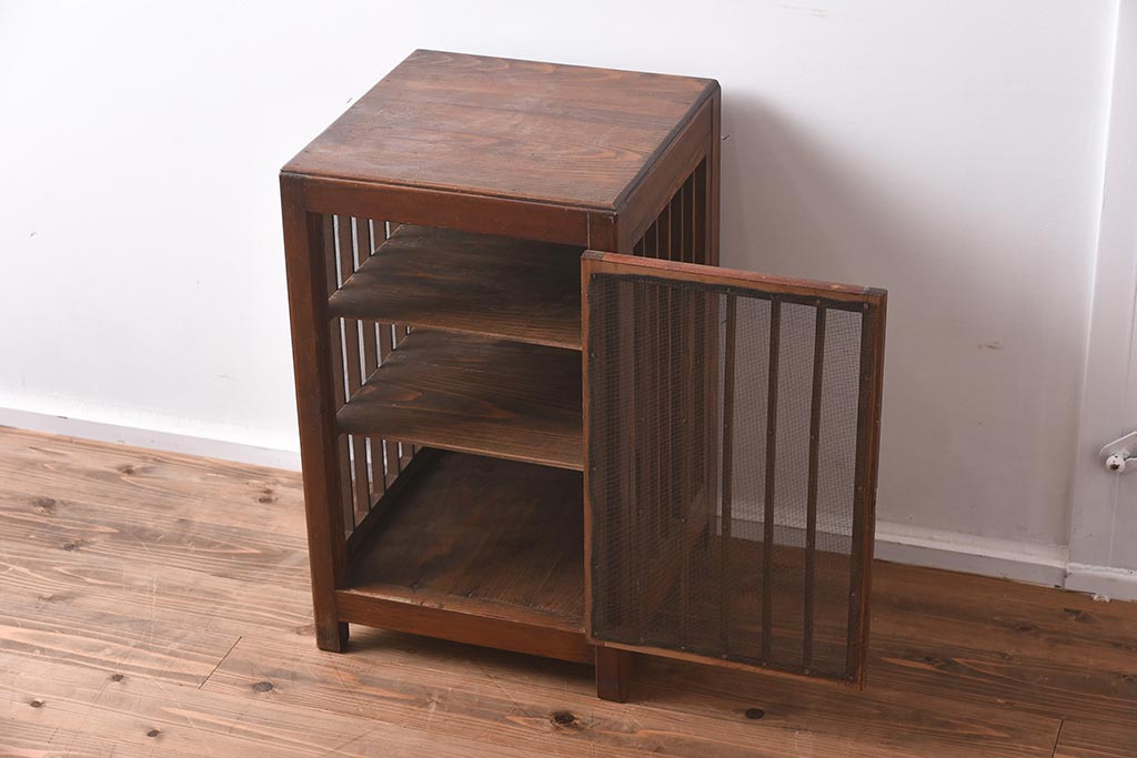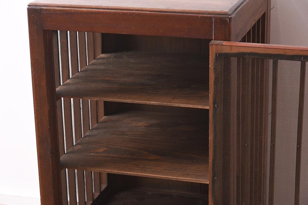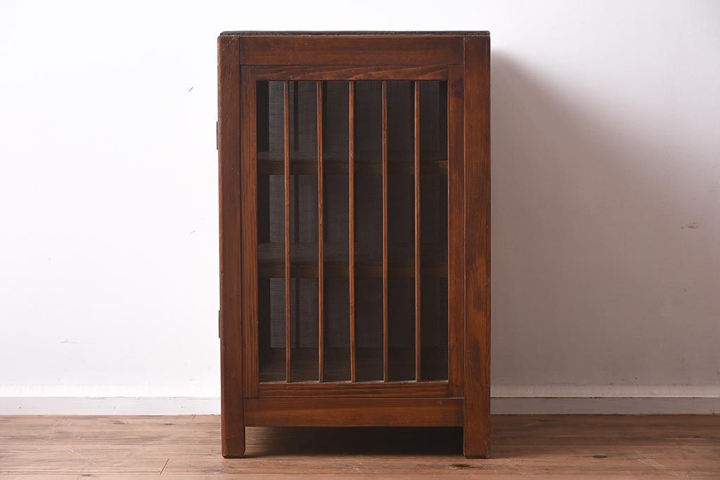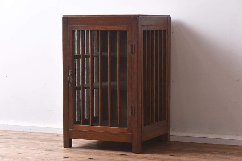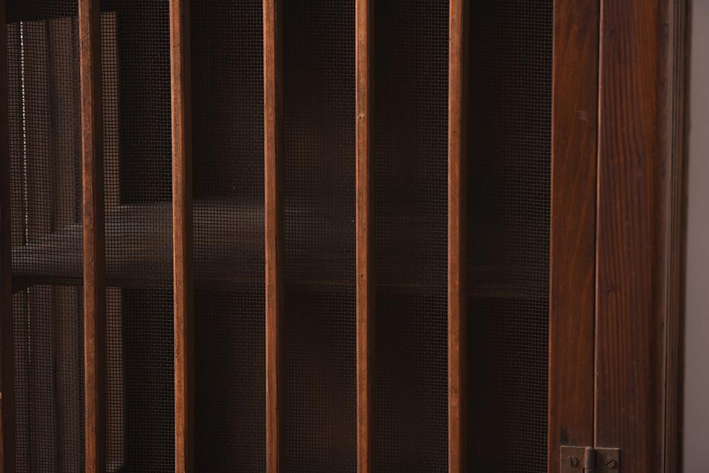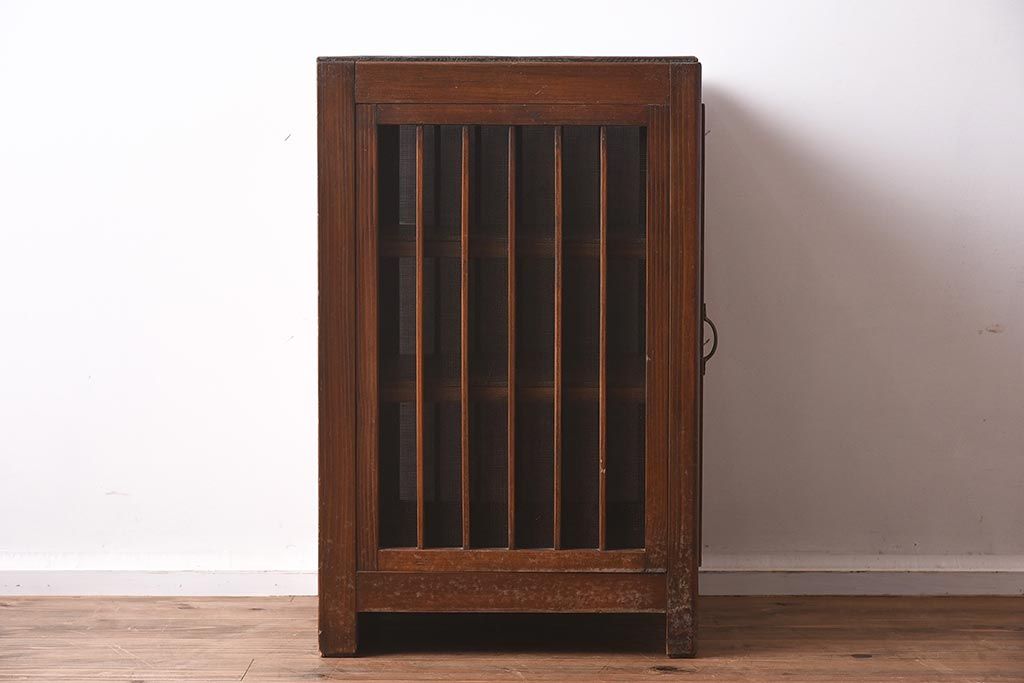 アンティーク家具 和製アンティーク 昭和初期 縦桟のすっきりしたデザインが魅力の蠅帳(はえ帳、はい帳、収納棚、戸棚、キャビネット)(R-040057)