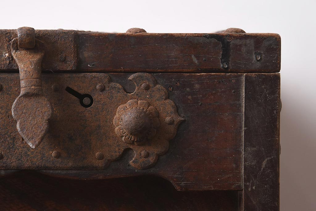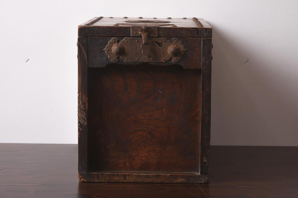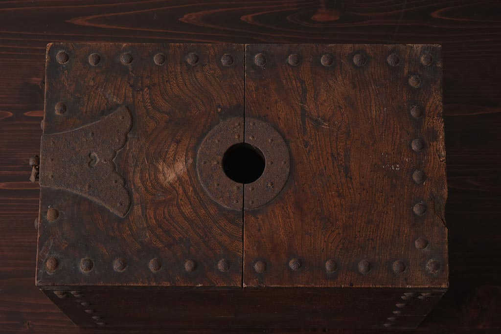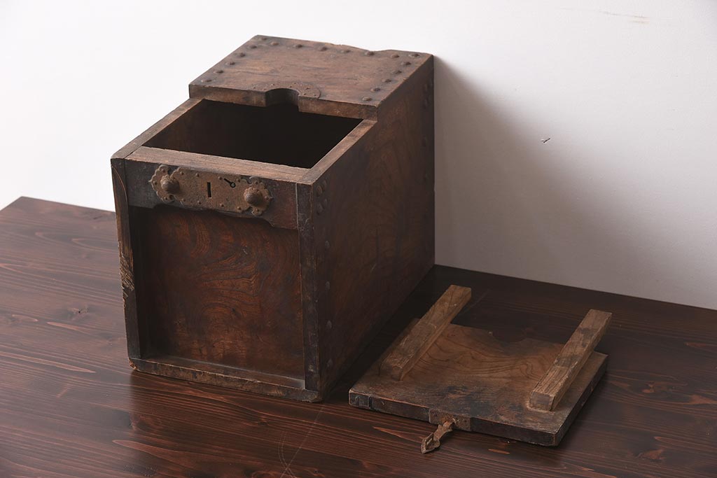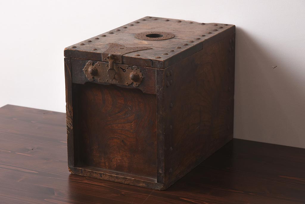 古道具・古民具> 銭箱 > アンティーク雑貨 古民具・骨董 明治期 ケヤキ材 古い趣を感じる銭箱(銭函)(R-040087)