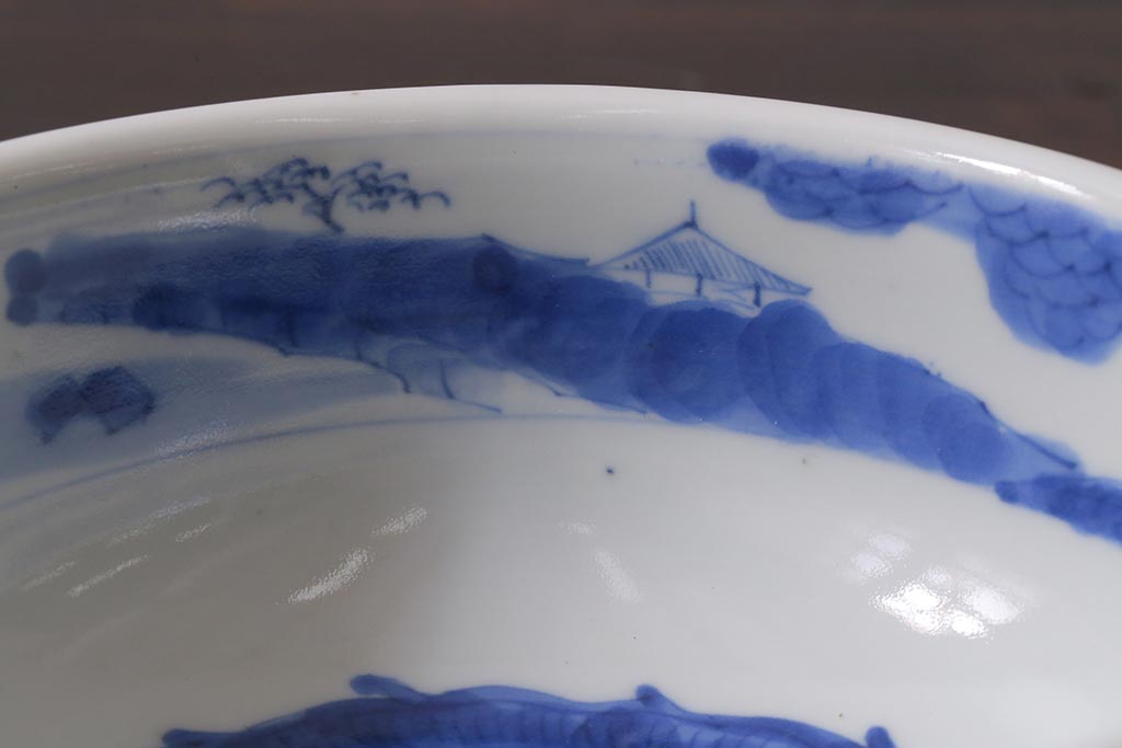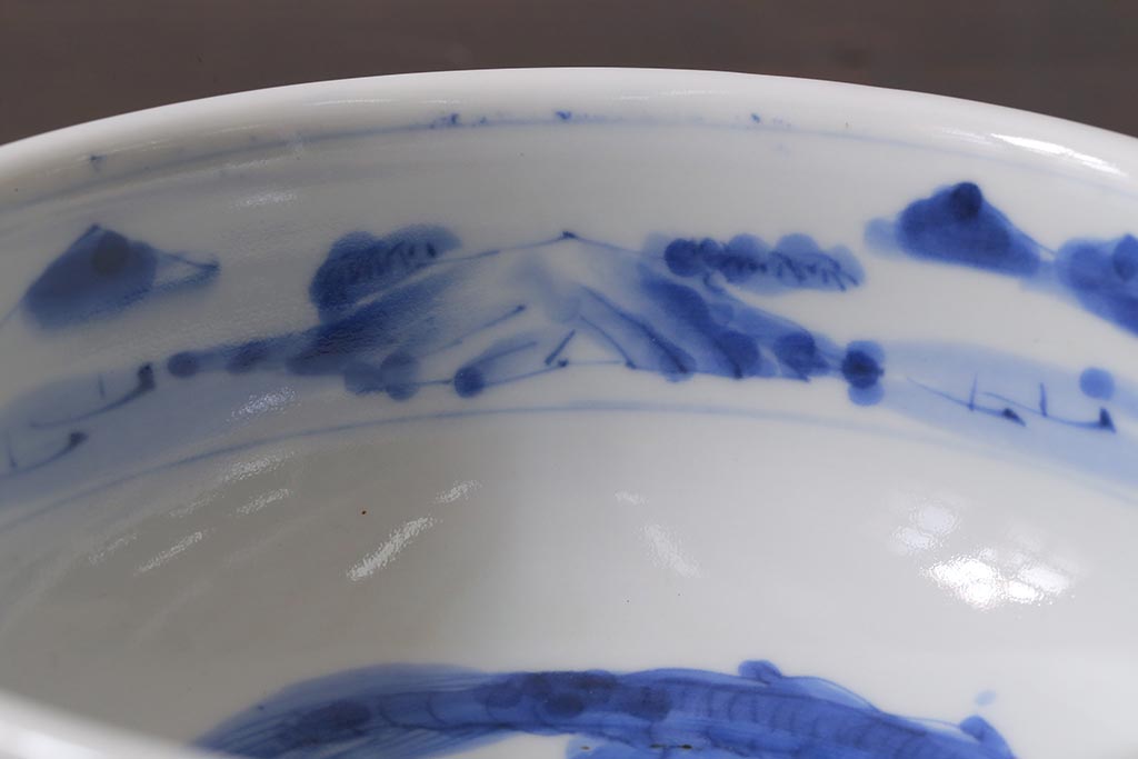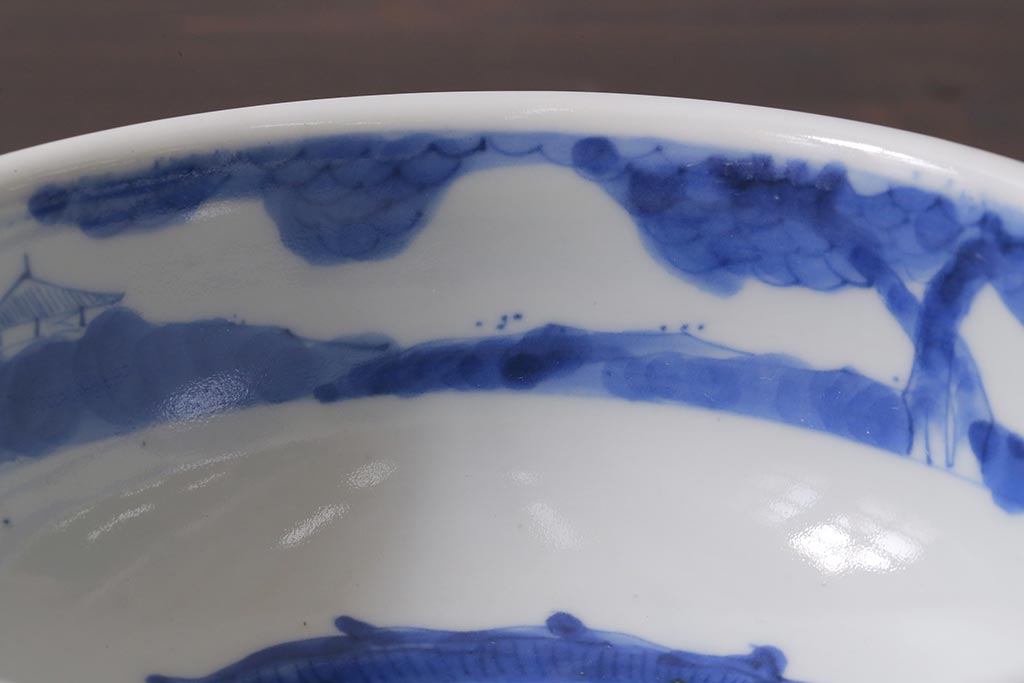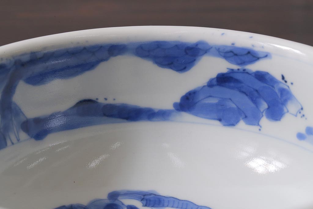 アンティーク雑貨 江戸期 古伊万里 染付 雲龍文 深鉢(深皿)(R-040047)