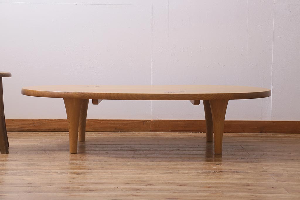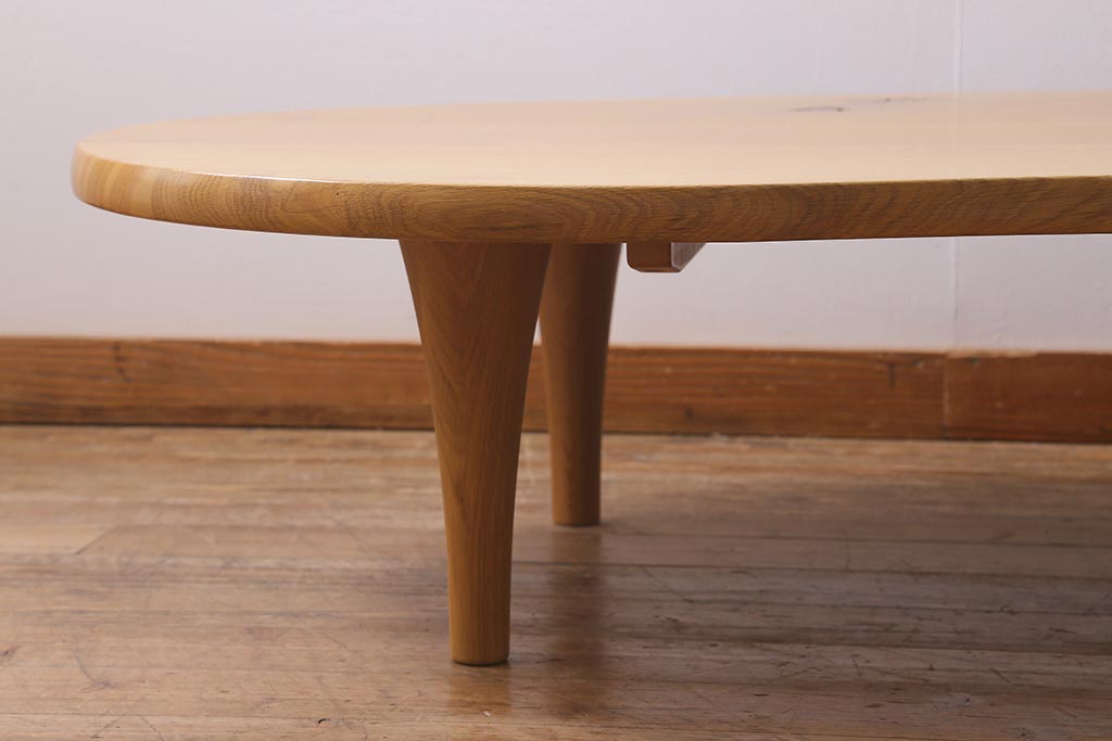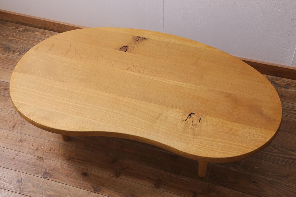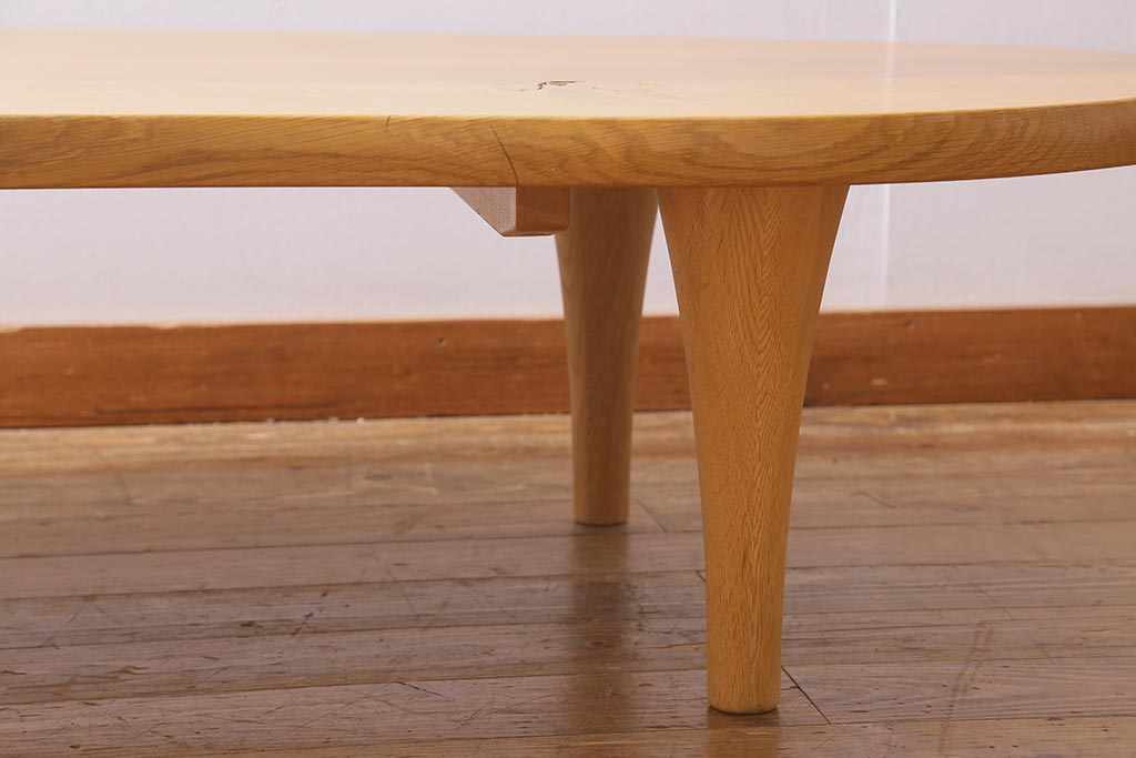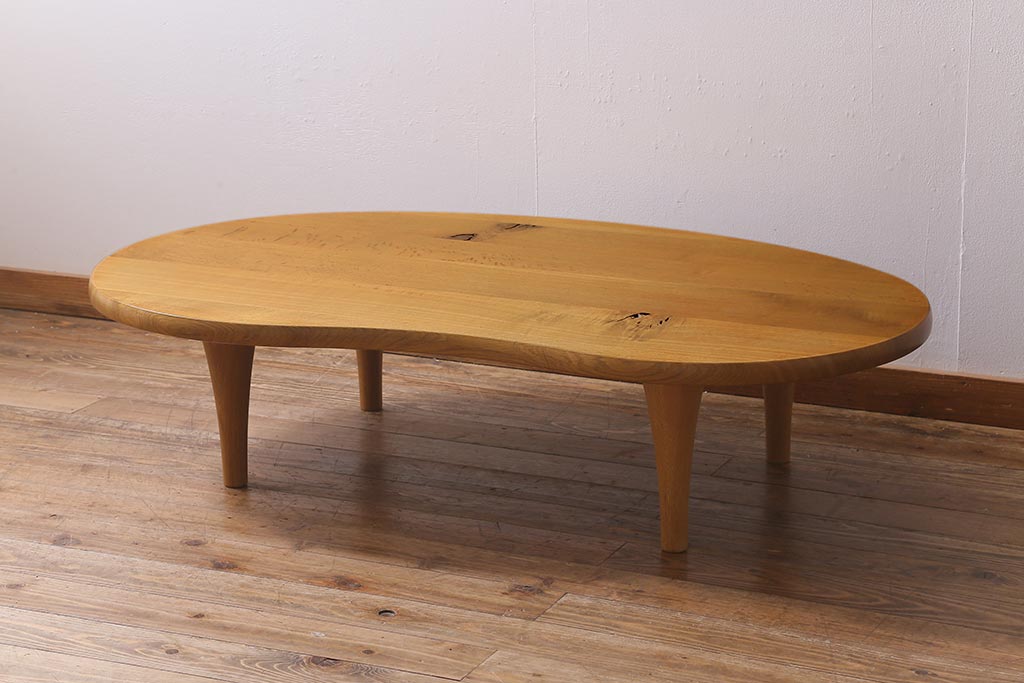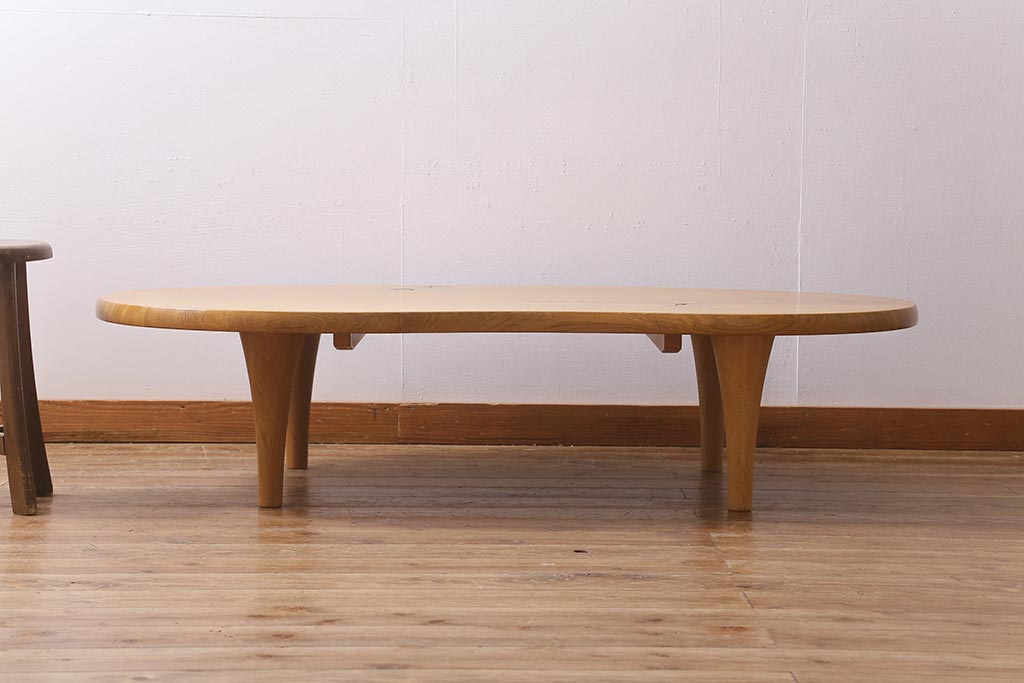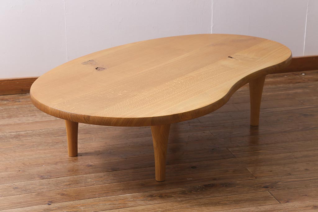 中古 飛騨産業 キツツキ 森のことば SN118T ロータイプ ビーンズ型リビングテーブル(センターテーブル、ローテーブル)(定価約15万4千円)(R-040164)