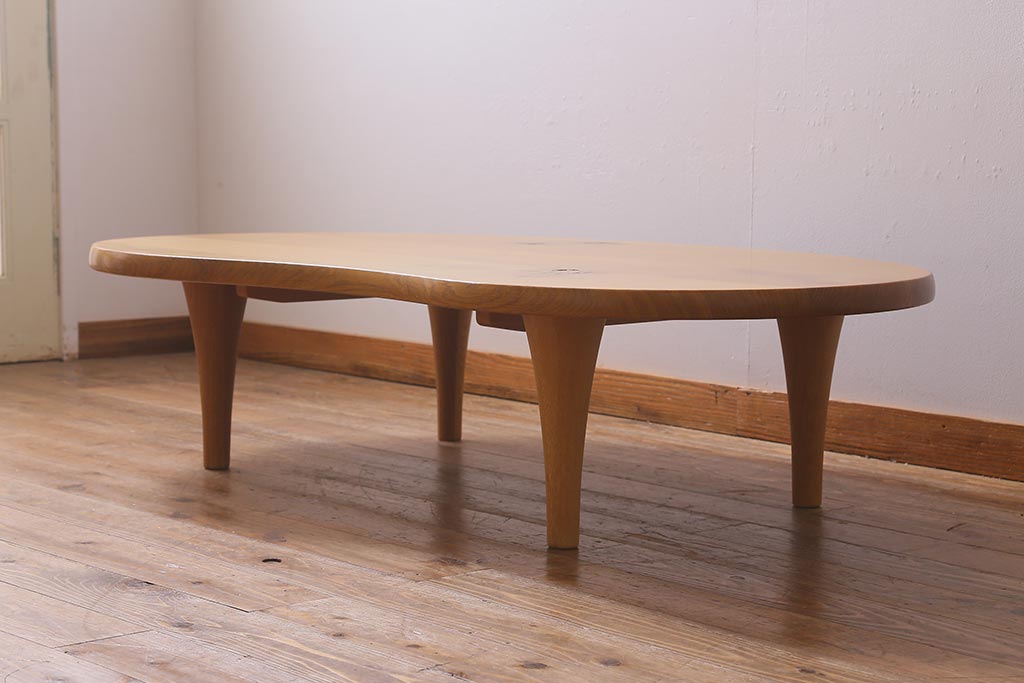 中古 飛騨産業 キツツキ 森のことば SN118T ロータイプ ビーンズ型リビングテーブル(センターテーブル、ローテーブル)(定価約15万4千円)(R-040164)です。