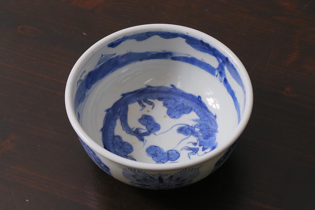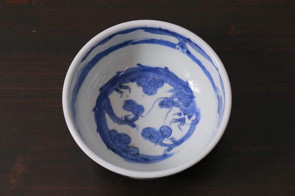 ラフジュ工房> 和食器・茶道具 > アンティーク雑貨 江戸期 古伊万里 染付 雲龍文 5寸深鉢(深皿)(R-040046)