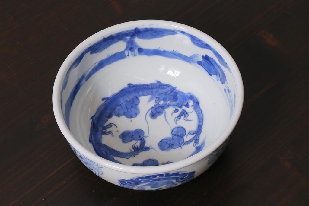 ラフジュ工房> 骨董・美術品> 骨董-陶磁器 > アンティーク雑貨 江戸期 古伊万里 染付 雲龍文 5寸深鉢(深皿)(R-040046)